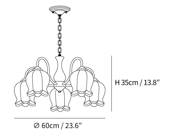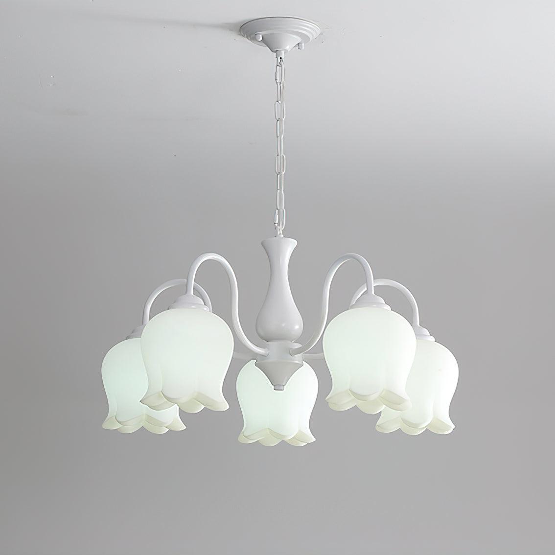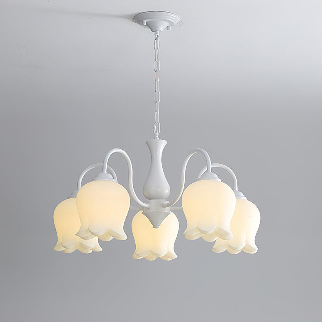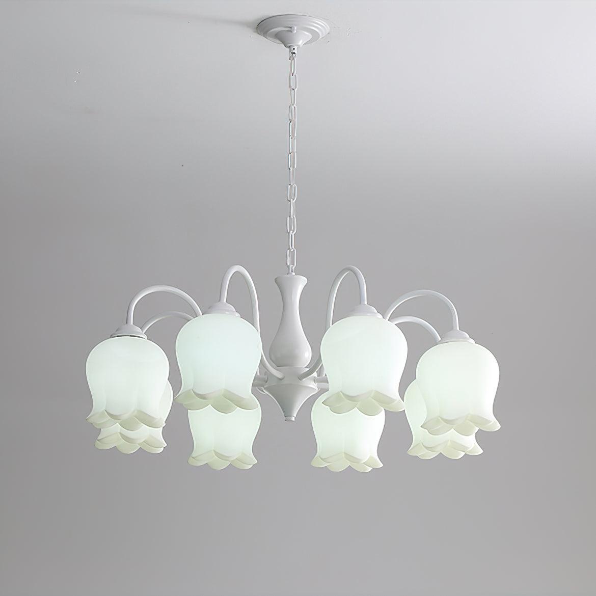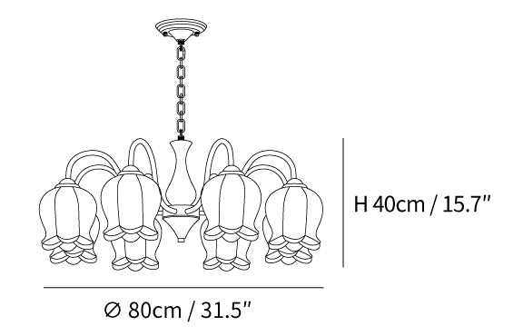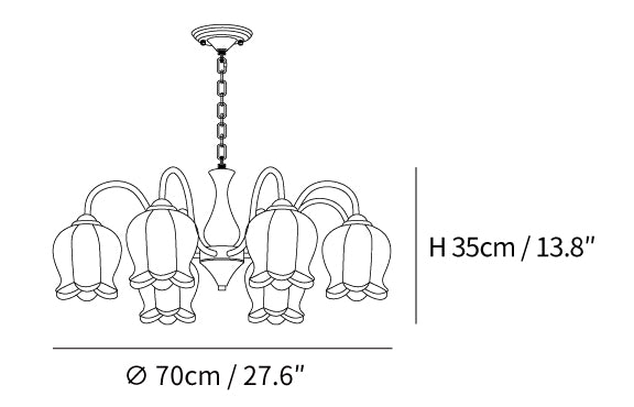 The Elegant Lilium Chandelier brings an old-world charm to any room. Its vintage-inspired French lily-shaped matte PE lampshade is crafted with exquisite garland-style detailing, making it a perfect choice for classic style lighting.