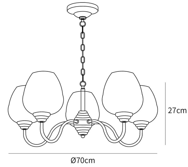 The Endon Alton Chandelier is finished in a traditional antique brass and complemented by white glass shades. The pendant can be converted into a semi flush fitting to accommodate low ceiling homes.
