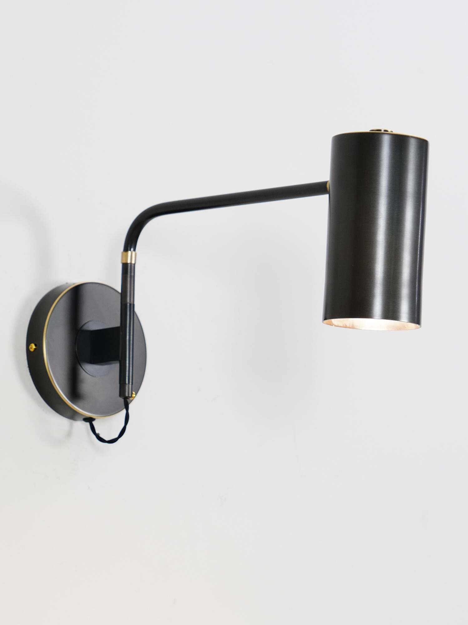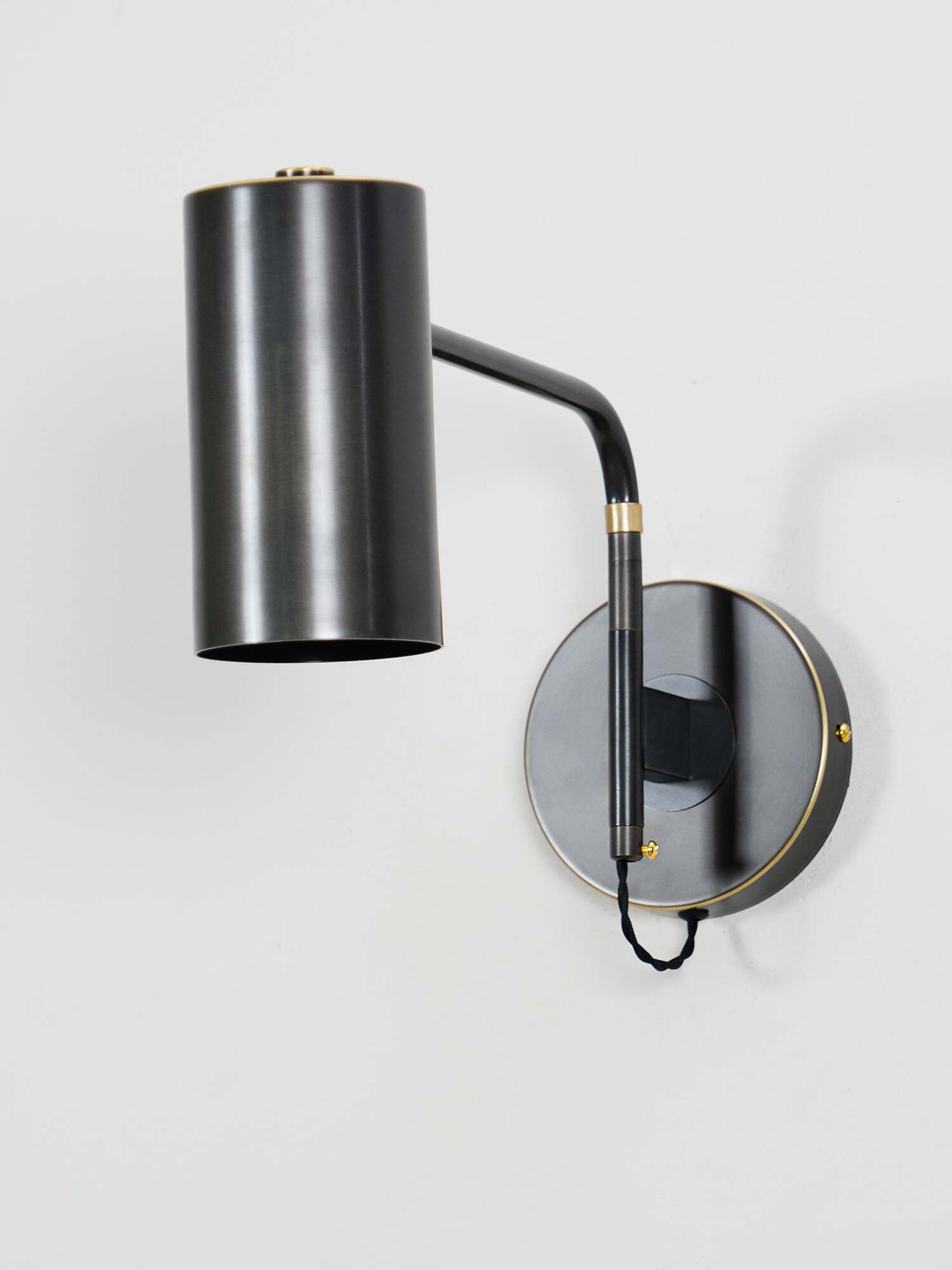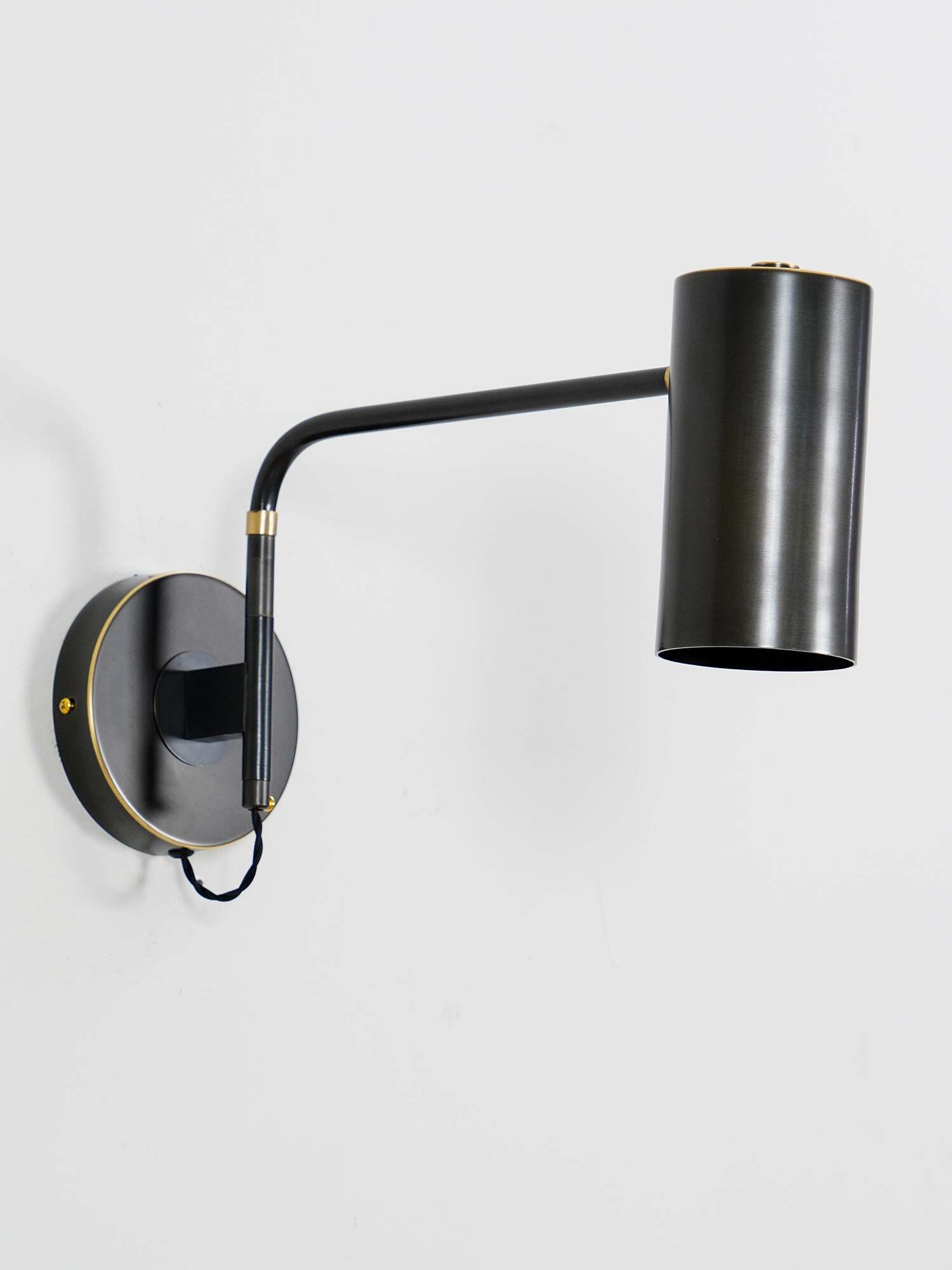 Evoking the clean lines of mid-century modern design, the Envoy Swing Sconce offers an elegant portal to the past. Ideal for task lighting, the solid brass swing arm rotates to deliver light wherever it's needed while the cylindrical shade casts a warm linear glow.