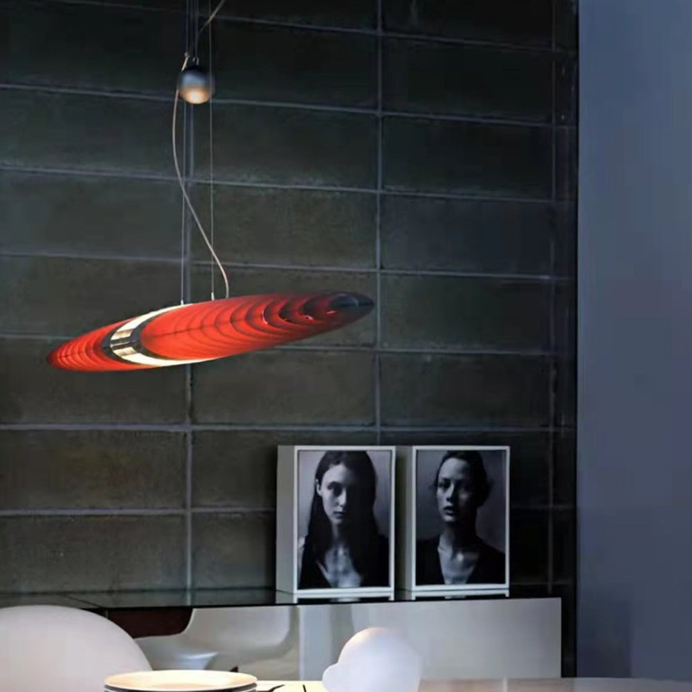 - Our pendant light is perfectly shaped, adopting the sleek and stylish shape of a surfboard. This modern design choice adds coastal charm to any room. The shape of a surfboard symbolizes adventure, relaxation, and the spirit of riding the waves of life. Hang it in your bedroom, living room, dining room, or even your favorite bar to add wanderlust and modern flair to your surroundings.