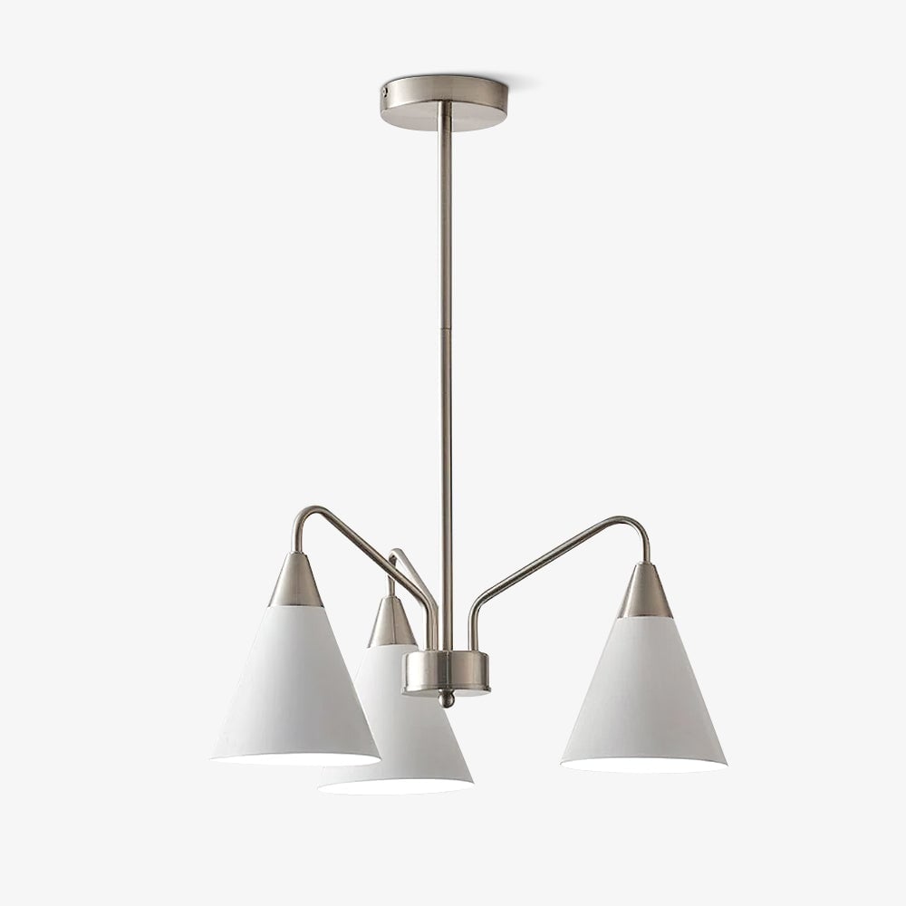 Fashion Cono Chandelier took a design classic and reinterpreted it into a fresh lighting fixture with a strong attention to detail. This exquisite pendant light features asymmetric structure with white lampshade and chrome plated details.this chandelier's cone shades get a glowing review in any space.