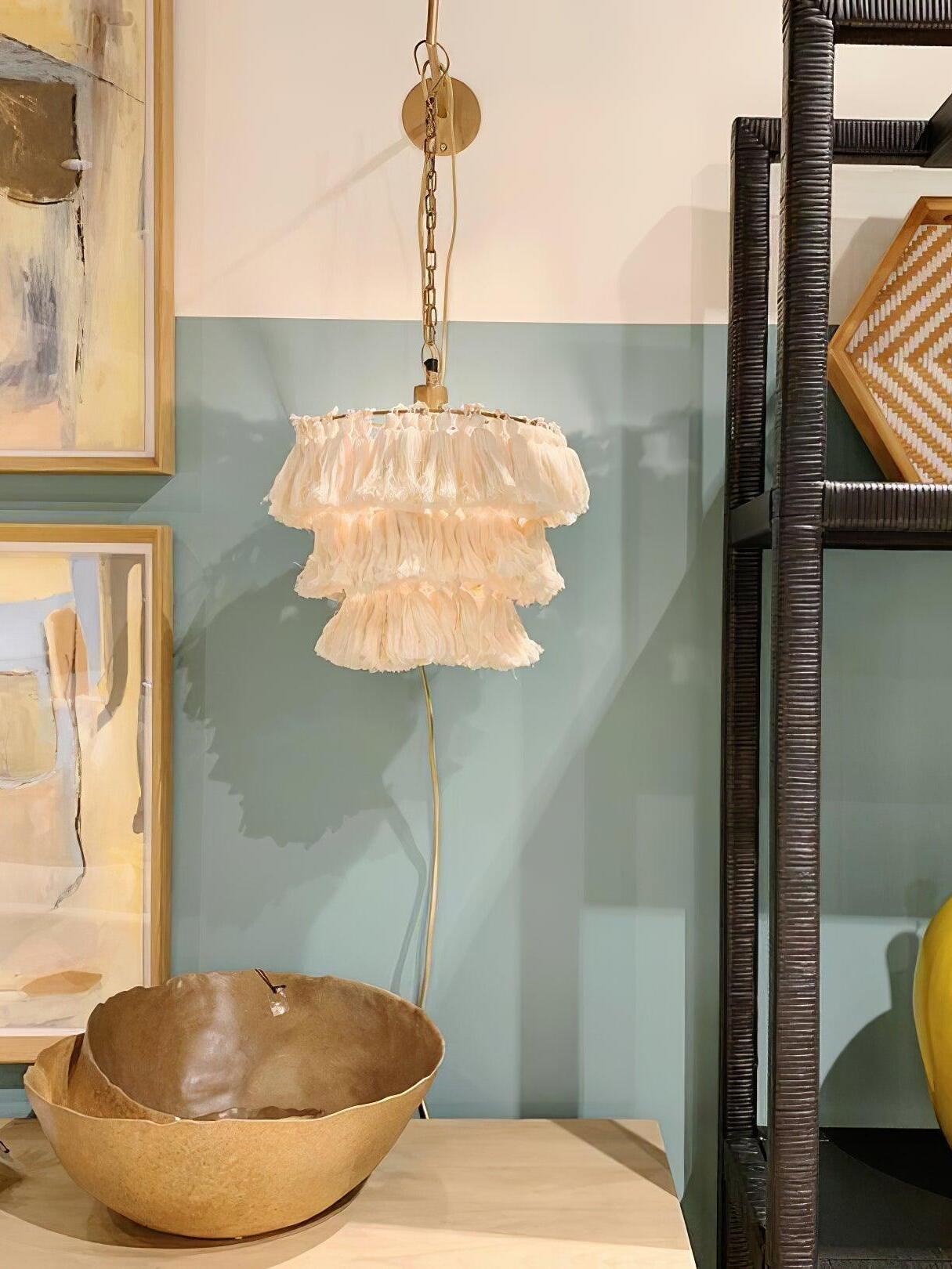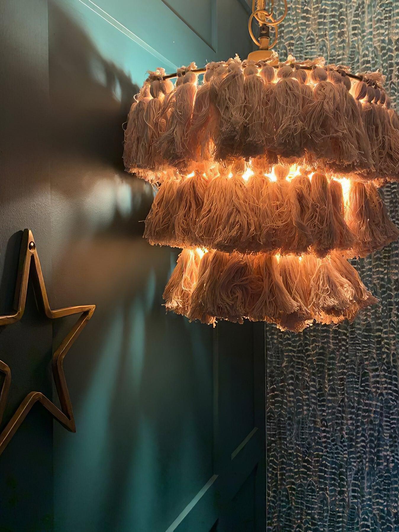 This tasseled chandelier draws the eye with its textured charm and balanced blend of bohemian and traditional styling, filling your space with warm light.