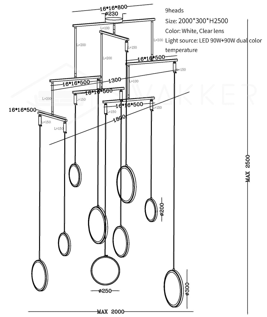 9head size: L 200cm x W 30cm x H 250cm / L 78.7″ x W 11.8″ x H 98.4″