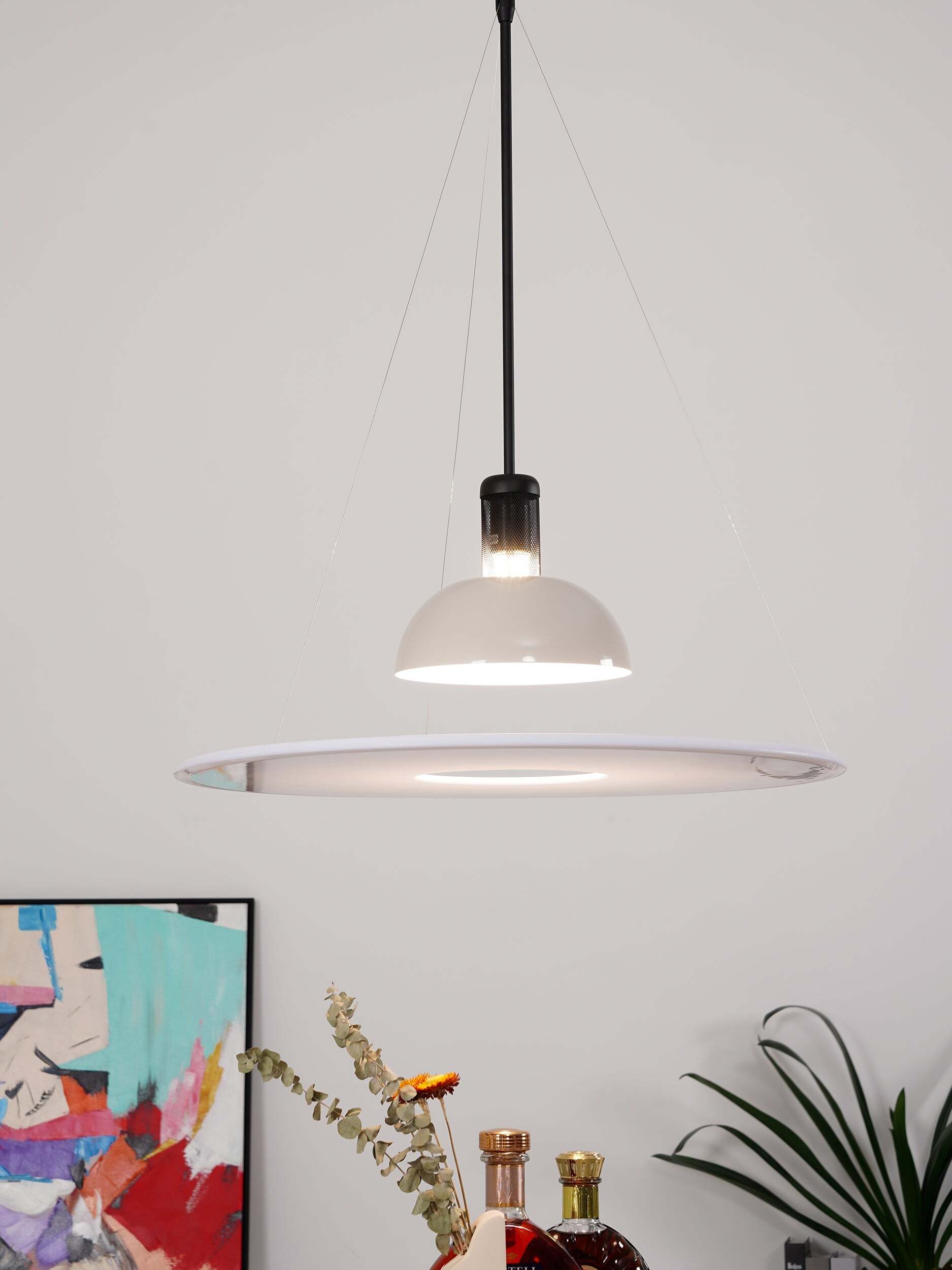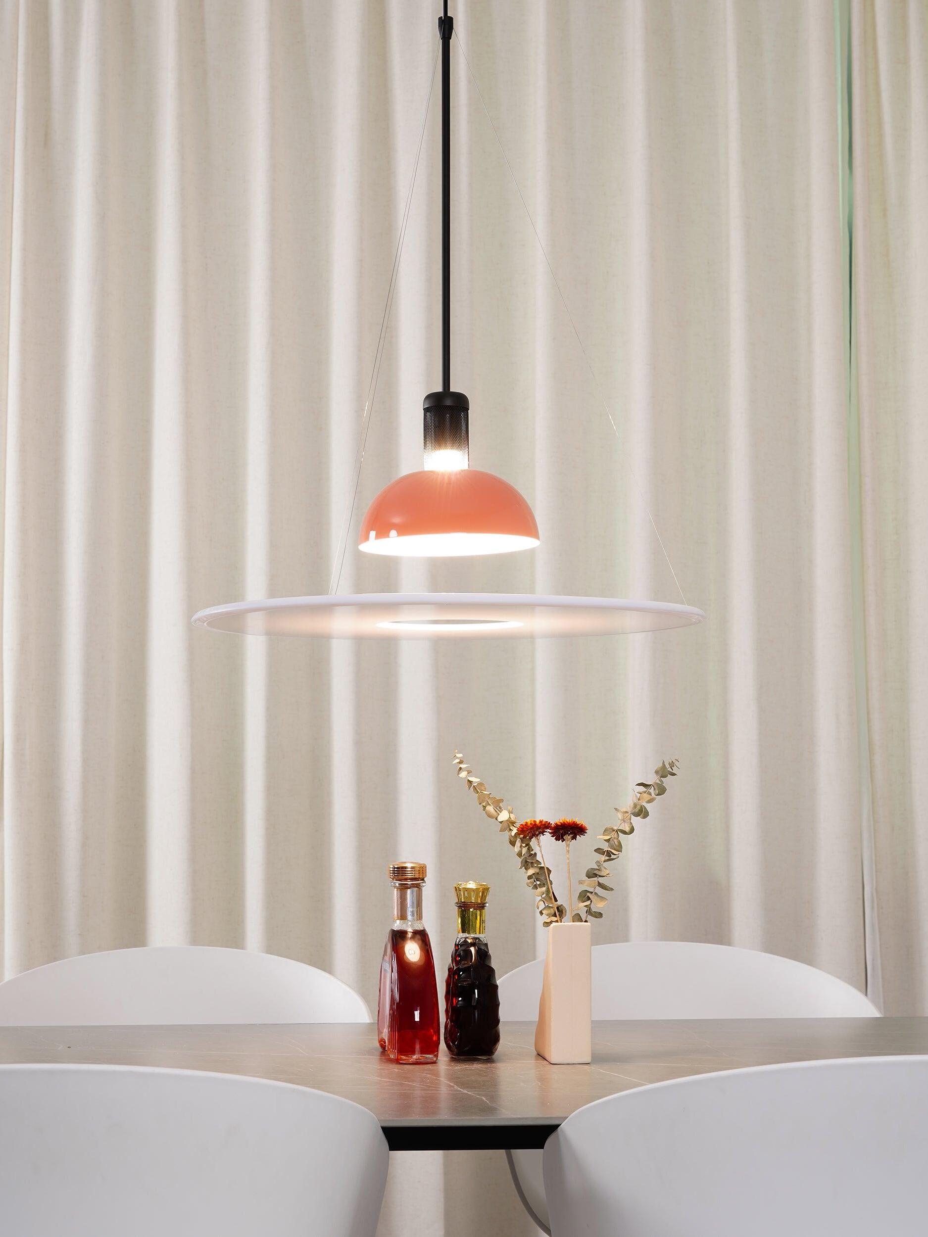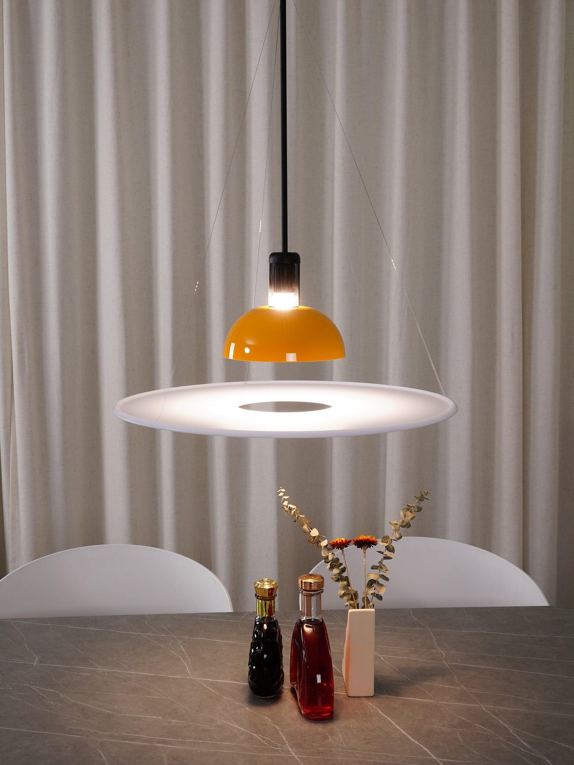 The Whimsical Frisbi Flying Saucer Pendant Light introduces a playful and futuristic design to any space. With its unconventional shape and captivating charm, it adds a touch of whimsy and wonder. Perfect for contemporary interiors or creative spaces, this luminaire casts a mesmerizing glow that transcends ordinary lighting. Embrace the unconventional and let this pendant light take your décor to new heights of imagination and enchantment.