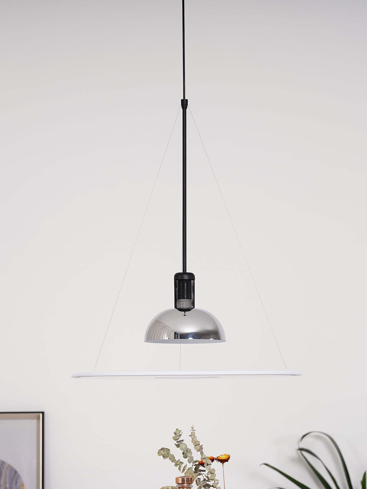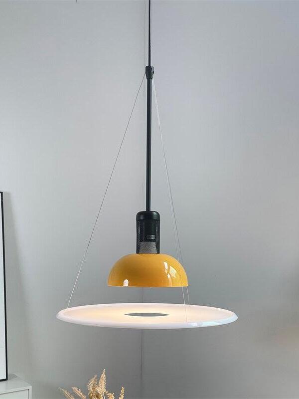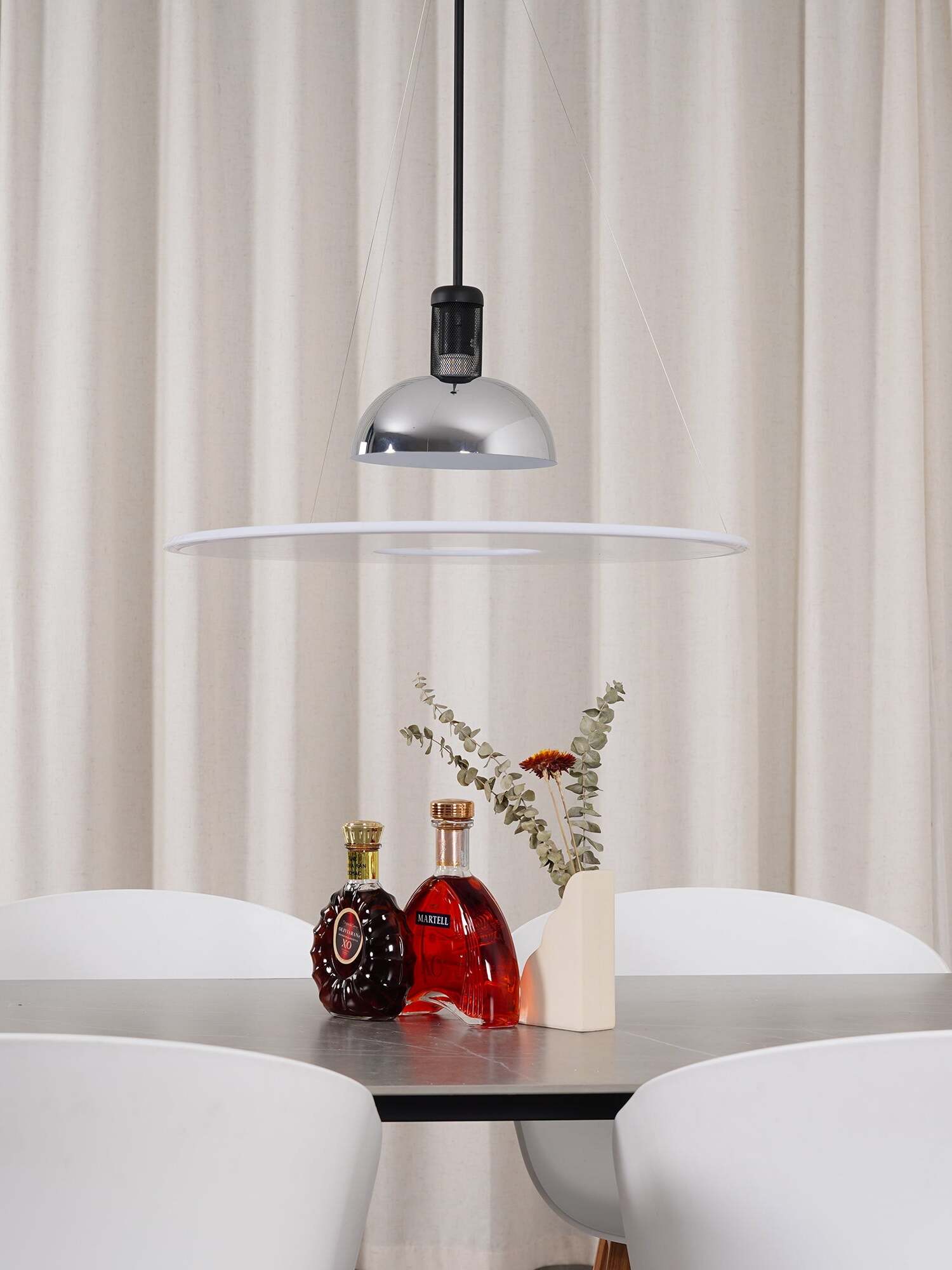 The Whimsical Frisbi Flying Saucer Pendant Light introduces a playful and futuristic design to any space. With its unconventional shape and captivating charm, it adds a touch of whimsy and wonder. Perfect for contemporary interiors or creative spaces, this luminaire casts a mesmerizing glow that transcends ordinary lighting. Embrace the unconventional and let this pendant light take your décor to new heights of imagination and enchantment.