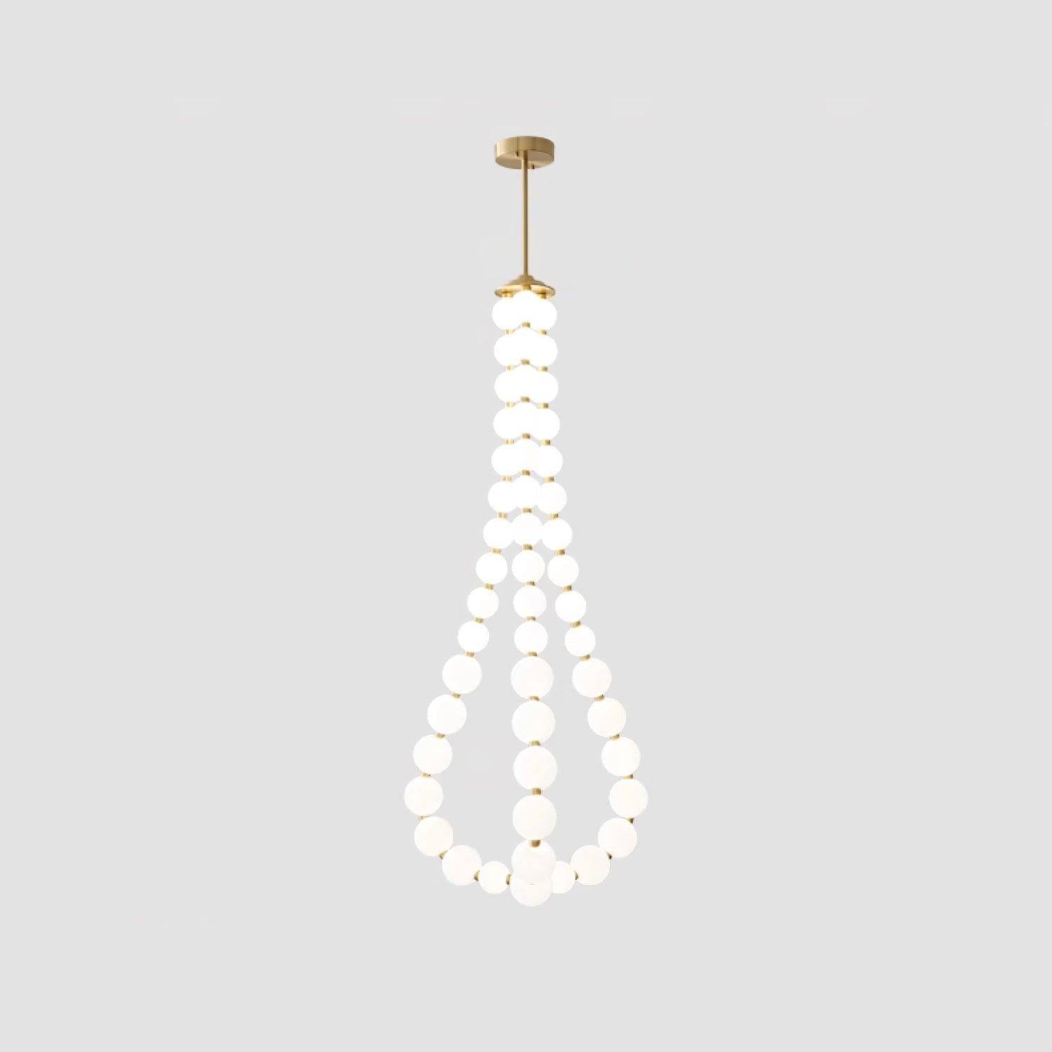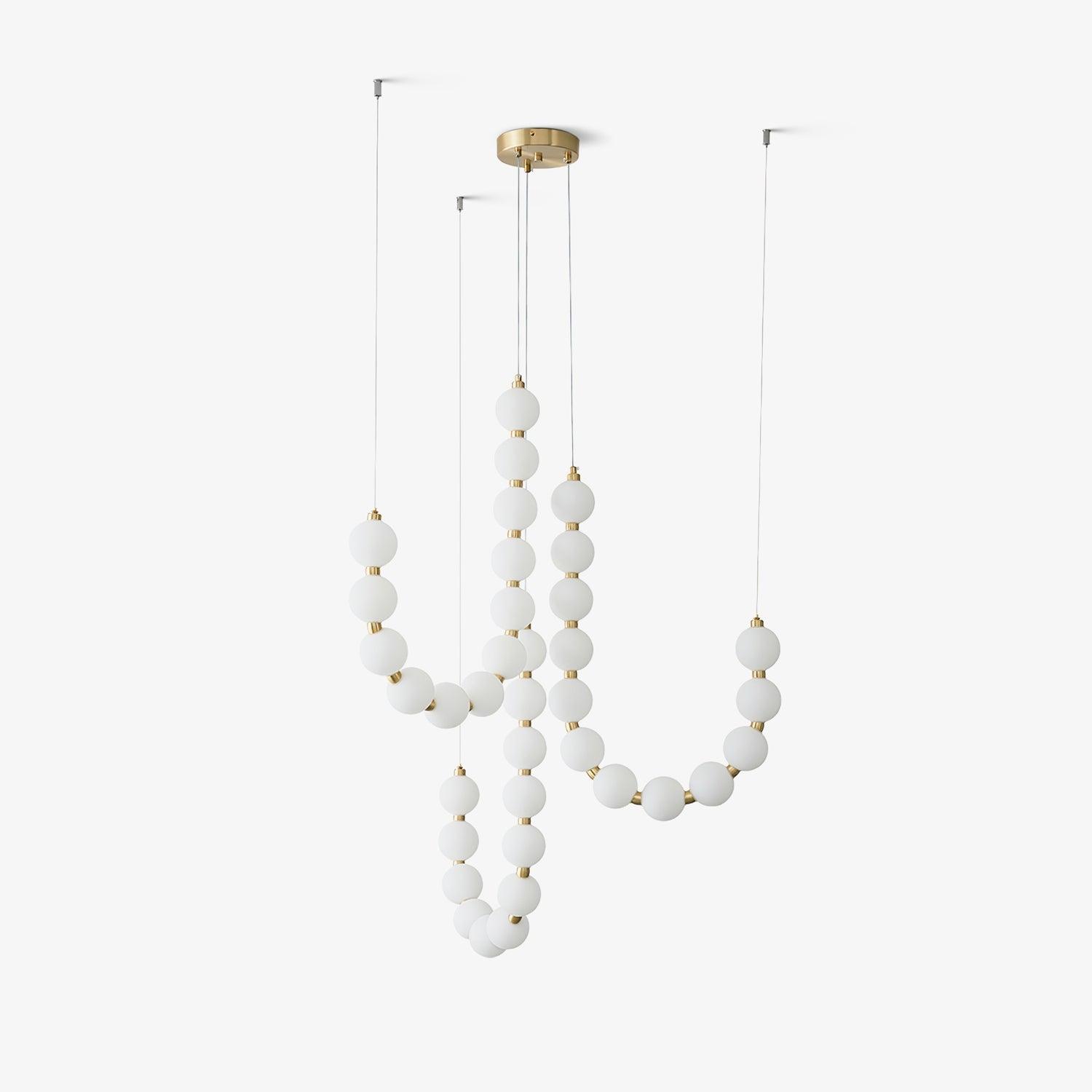 This stylish Glass Pearl Necklace Chandelier illuminates any space with a brass-constructed base and white glass orbs. Its unique design will draw admiration and attention, merging a distinctive style with universal and timeless appeal. Its unique lighting forms will highlight the interior of your home, creating a warm, cozy atmosphere for gatherings and quality time with family.