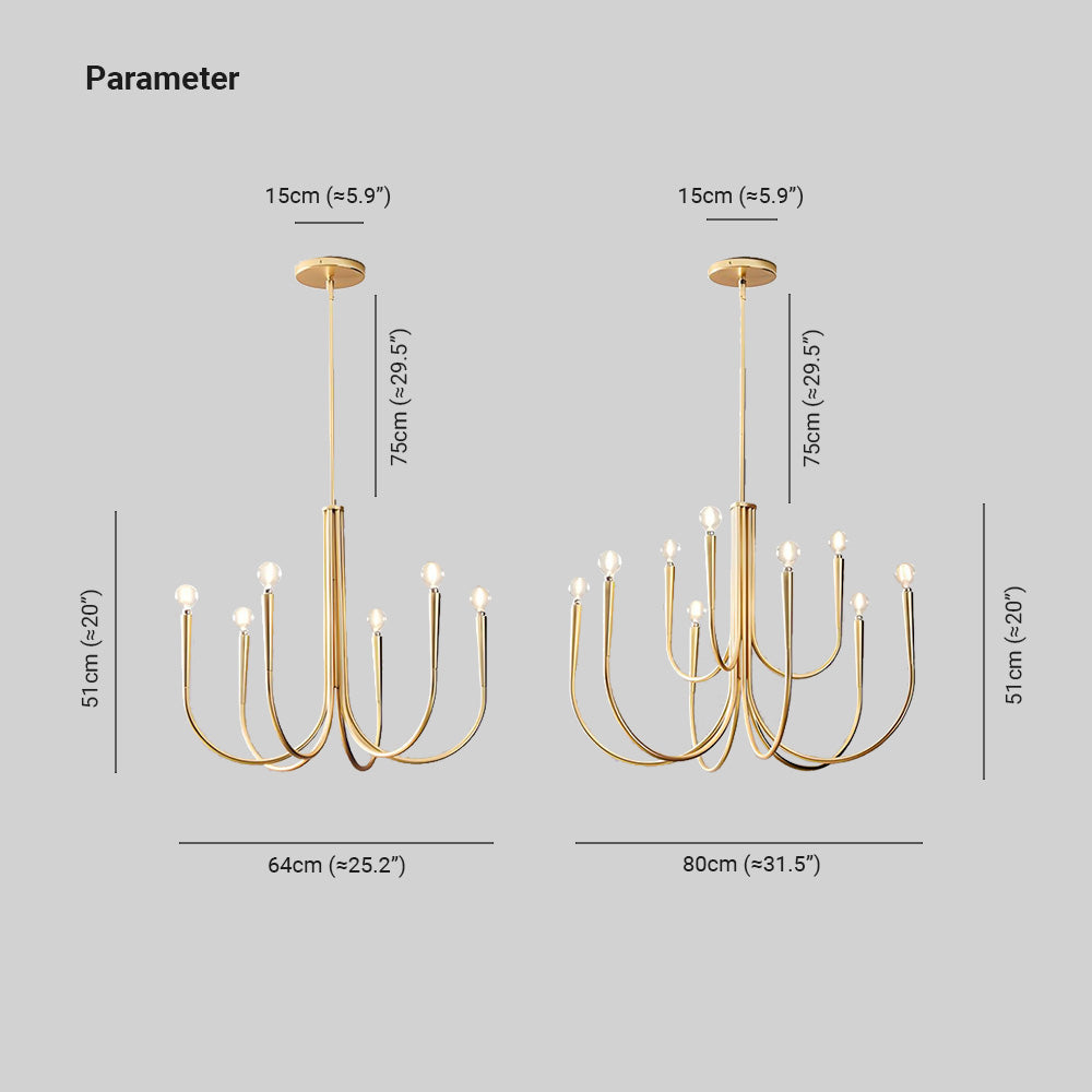 - Fabricated from high-quality metal and glass, this chandelier ensures durability and longevity. The use of metal provides a sturdy structure, while the glass elements lend a touch of elegance and help beautifully diffuse the light.