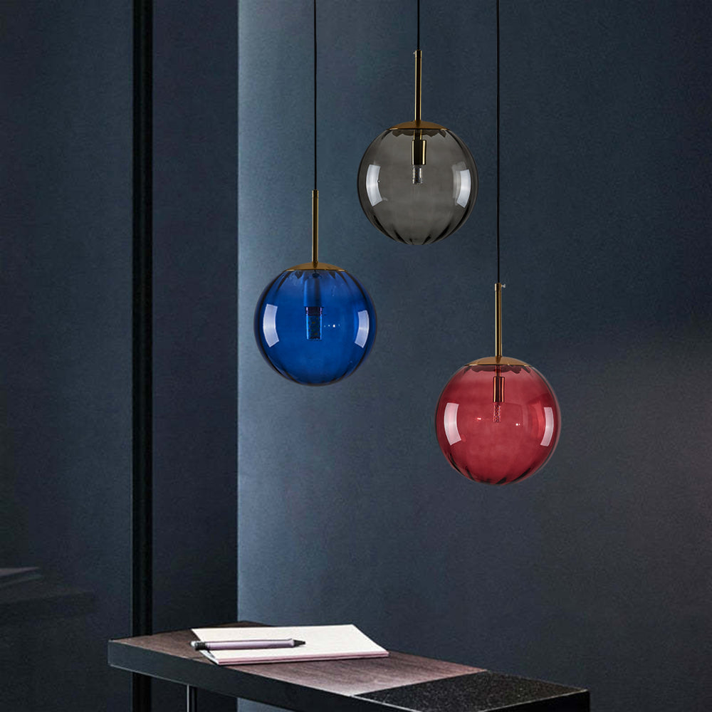 - The color palette of this pendant light is a testament to thoughtful curation. With four exquisite shades to choose from – graceful gray, serene blue, bold red, and rich coffee – you're provided with the freedom to select the hue that resonates best with your interior vision. The bubble shape of the glass not only lends an air of modernity to the design but also ensures a smooth and visually pleasing silhouette that effortlessly catches the light.