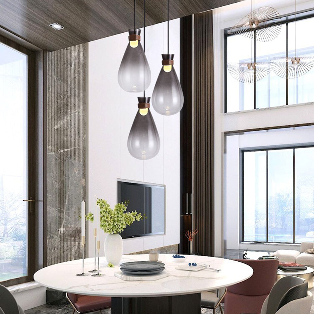 Hailie Minimalist Teardrop Shaped Glass Pendant Light, Smoke Gray/White