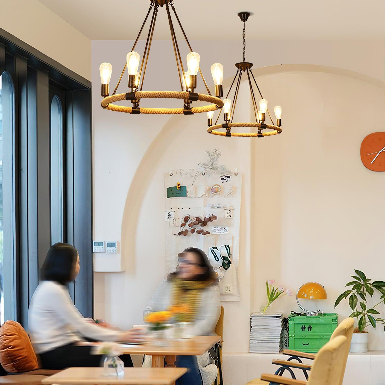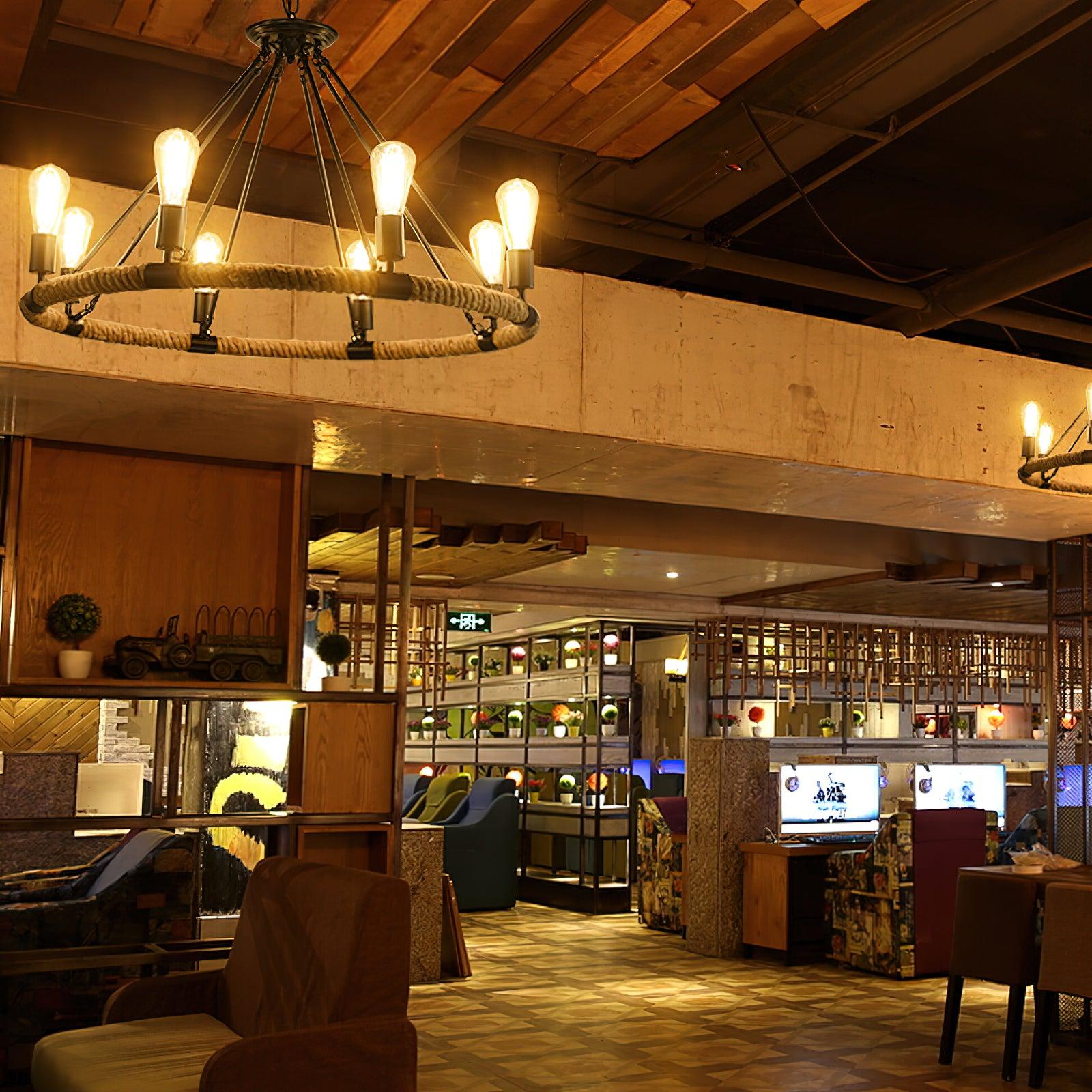 Upgrade your space with our twine industrial large round chandelier. Made from quality hardware and twine, this retro-style light fixture will add a unique and eco-friendly feel to any room. With its creative shape and frosted finish, it's perfect for those who appreciate individuality and industrial chic style. Order now and enhance your decorating style!
