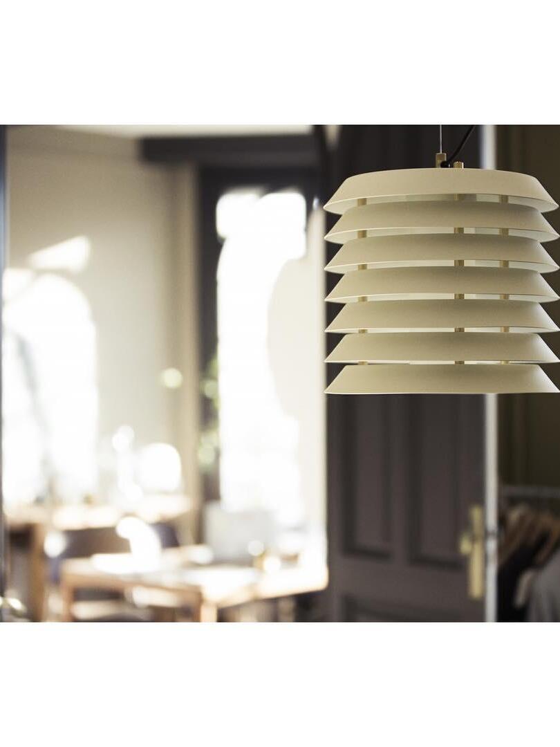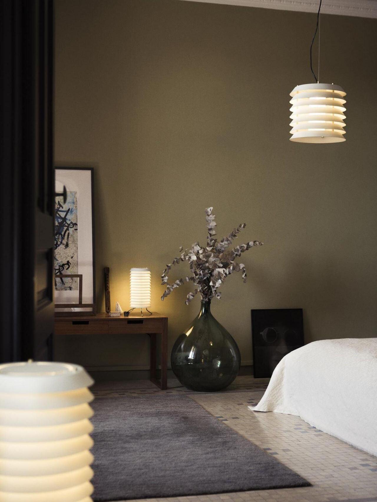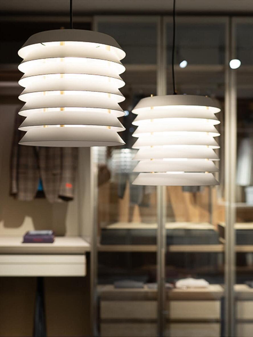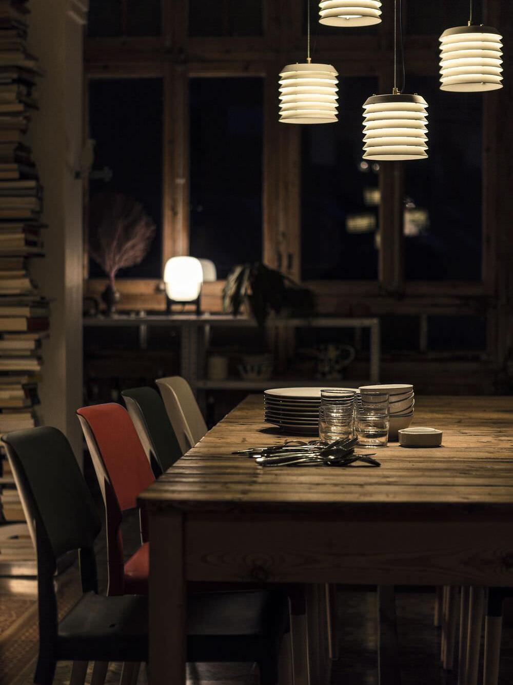 In der Sprache des finnischen Funktionalismus vermittelte die Maija-Serie das Gefühl baltischen Lichts von innen nach außen, mit einer anmutigen, langlebigen Struktur, die an die kindlichen Waben der frechen Honigbiene Maya erinnert, der Heldin der Geschichten und Cartoons, die ursprünglich ihren Namen inspirierten. Ein undurchsichtiger Körper mit einer in übereinanderliegende Platten zersplitterten Eisenstruktur filtert und lenkt sein fröhliches inneres Licht.