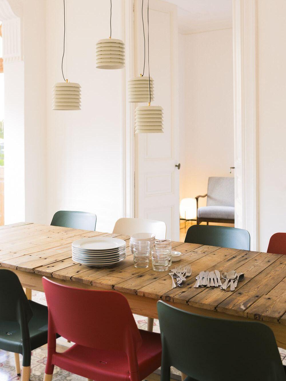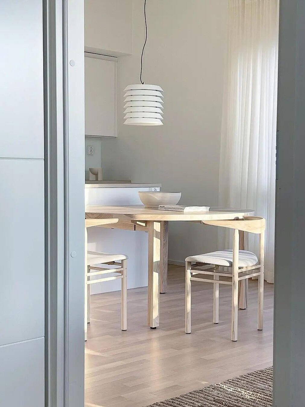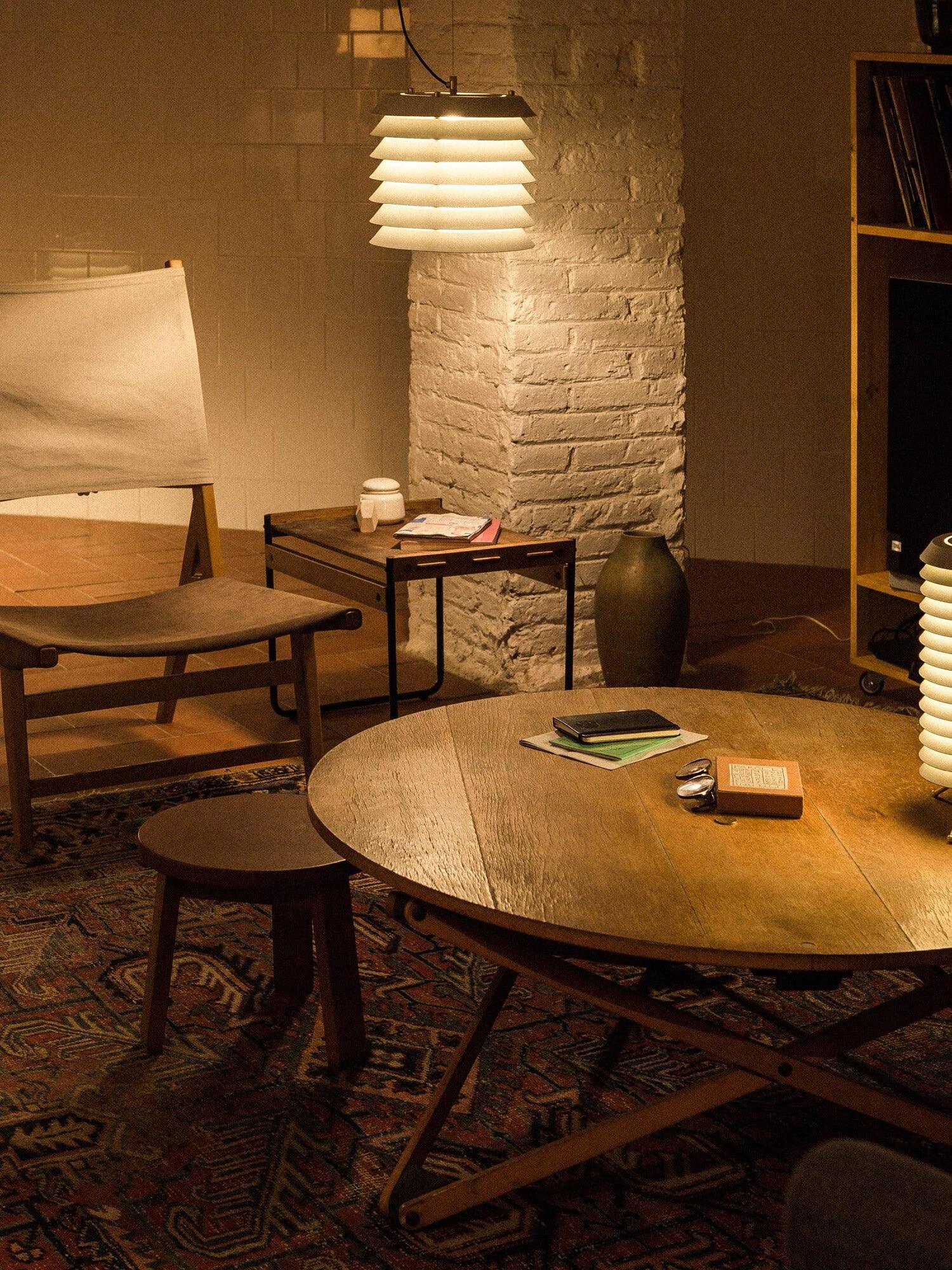 In der Sprache des finnischen Funktionalismus vermittelte die Maija-Serie das Gefühl baltischen Lichts von innen nach außen, mit einer anmutigen, langlebigen Struktur, die an die kindlichen Waben der frechen Honigbiene Maya erinnert, der Heldin der Geschichten und Cartoons, die ursprünglich ihren Namen inspirierten. Ein undurchsichtiger Körper mit einer in übereinanderliegende Platten zersplitterten Eisenstruktur filtert und lenkt sein fröhliches inneres Licht.