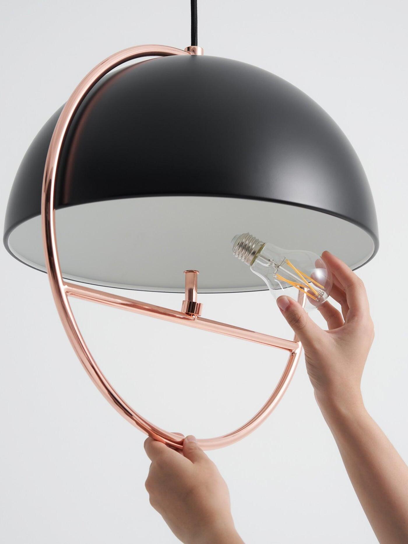 Mit ihrem schlanken und stromlinienförmigen Design präsentiert diese Pendelleuchte eine harmonische Mischung aus Metallhandwerk und minimalistischer Ästhetik. Die elegante Huan Sleek Pendelleuchte aus Metall strahlt Raffinesse und Modernität aus und ist damit ein faszinierender Mittelpunkt in jeder modernen Umgebung. Das glänzende Metallfinish verleiht einen Hauch von Opulenz, reflektiert das Licht wunderschön und schafft eine bezaubernde Atmosphäre. Ob über einem schicken Essbereich aufgehängt oder eine trendige Lounge beleuchtet, diese Pendelleuchte steigert mühelos den Stilfaktor jedes Raums. Ihr vielseitiges Design macht sie perfekt für Wohn- und Geschäftsräume wie gehobene Restaurants, Boutique-Hotels oder gehobene Boutiquen. Lassen Sie sich von der Faszination der eleganten Huan Sleek Pendelleuchte aus Metall verführen und lassen Sie ihre markante Präsenz Ihren Raum mit moderner Eleganz erhellen.