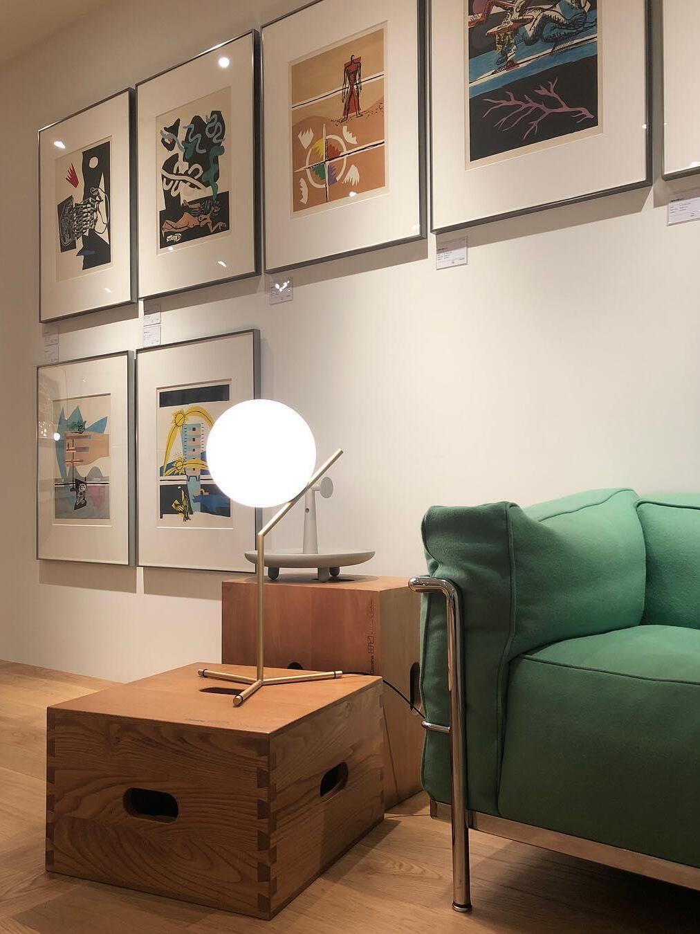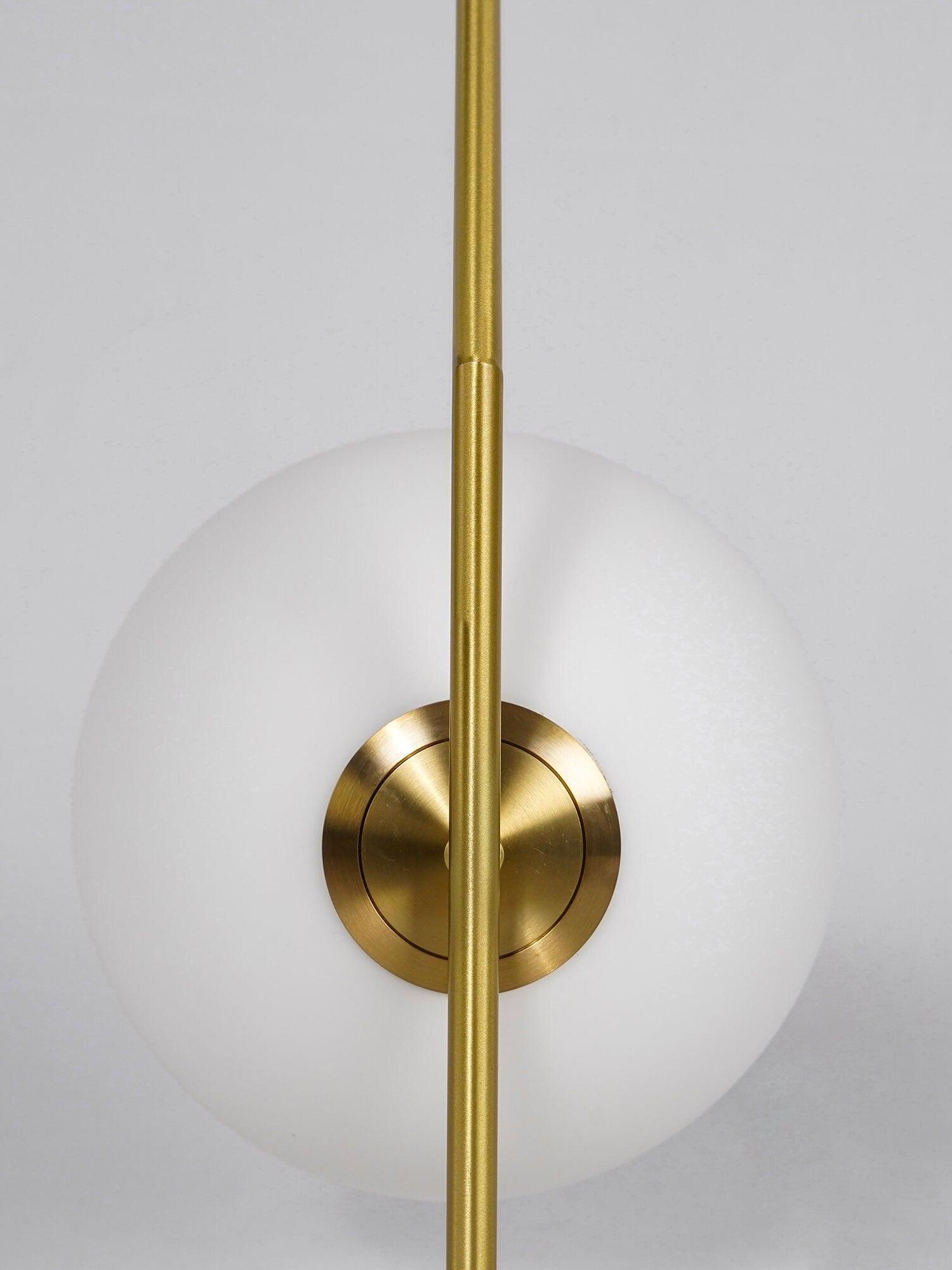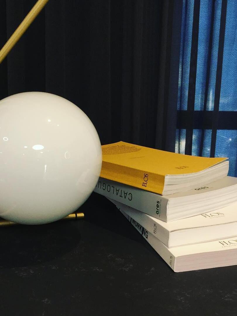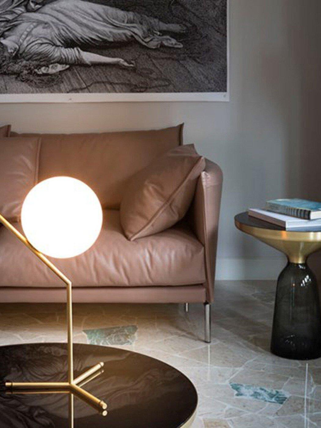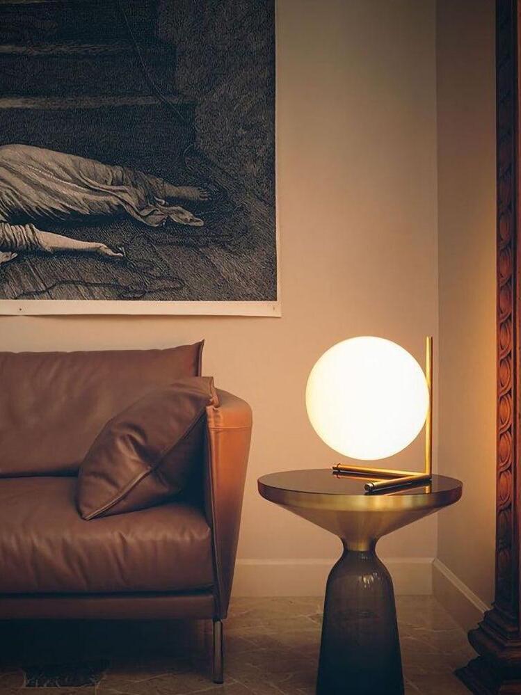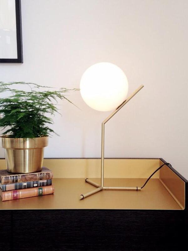 IC Lights Table by renowned designer consists of a brass base that twists and bends at an angle. From there, a blown-glass white orb delicately balances. The table lamp, which casts diffused light, can be adjusted by a dimmer on the power chord. IC Lights T is now available in a brand-new Brass finish that adds dimension to the stunning collection of deceptively simple designs.