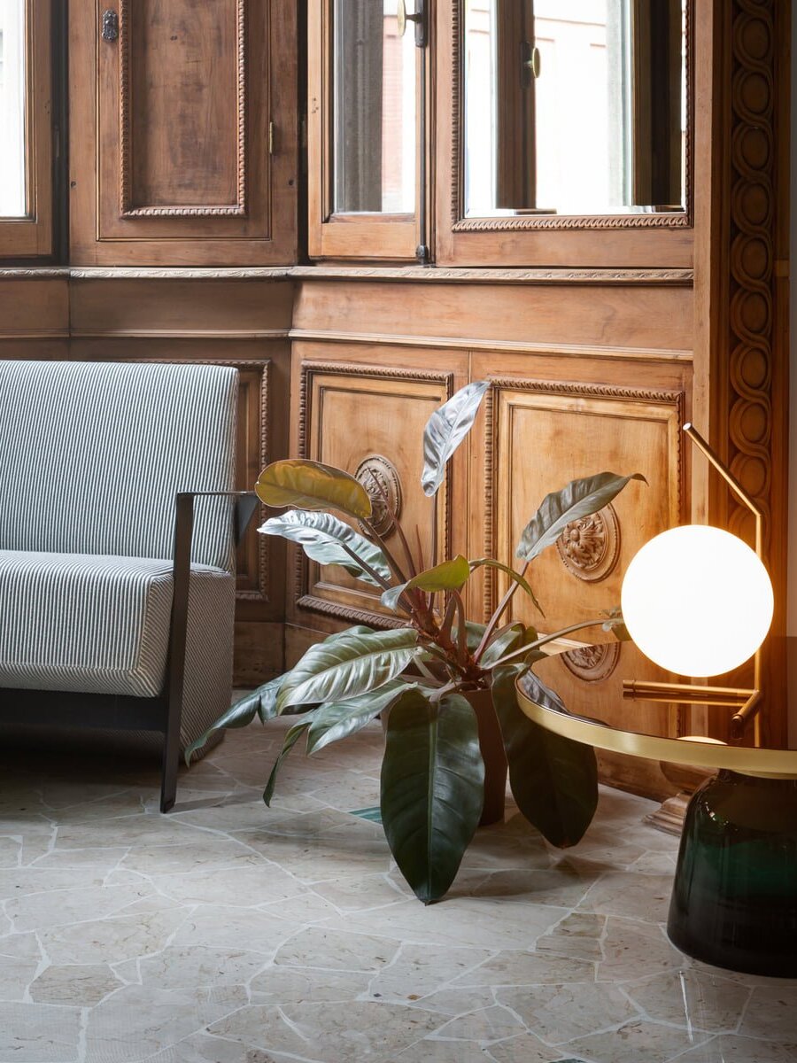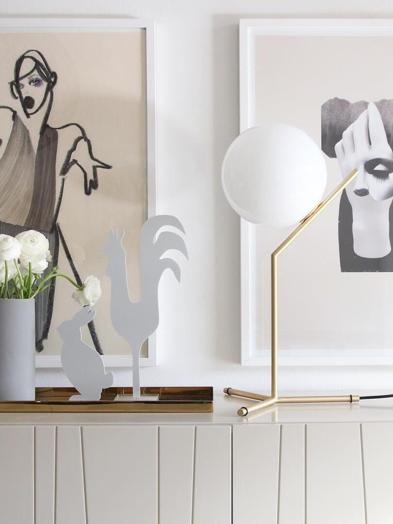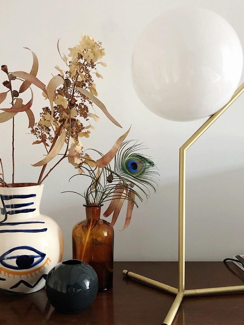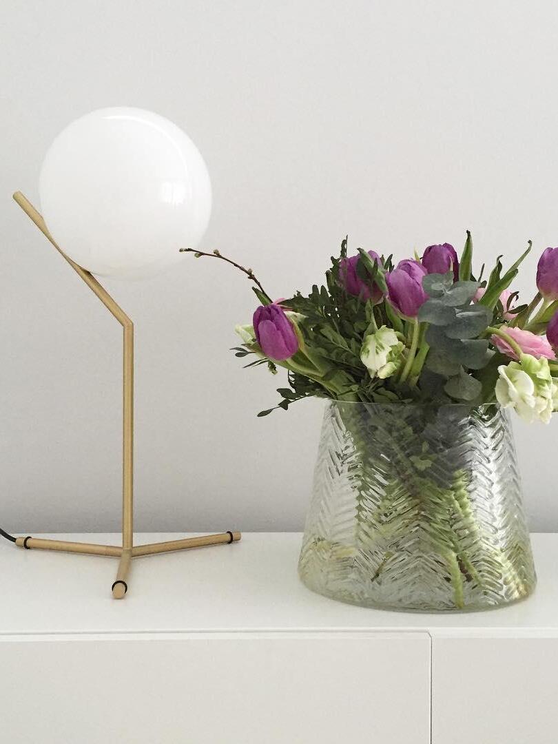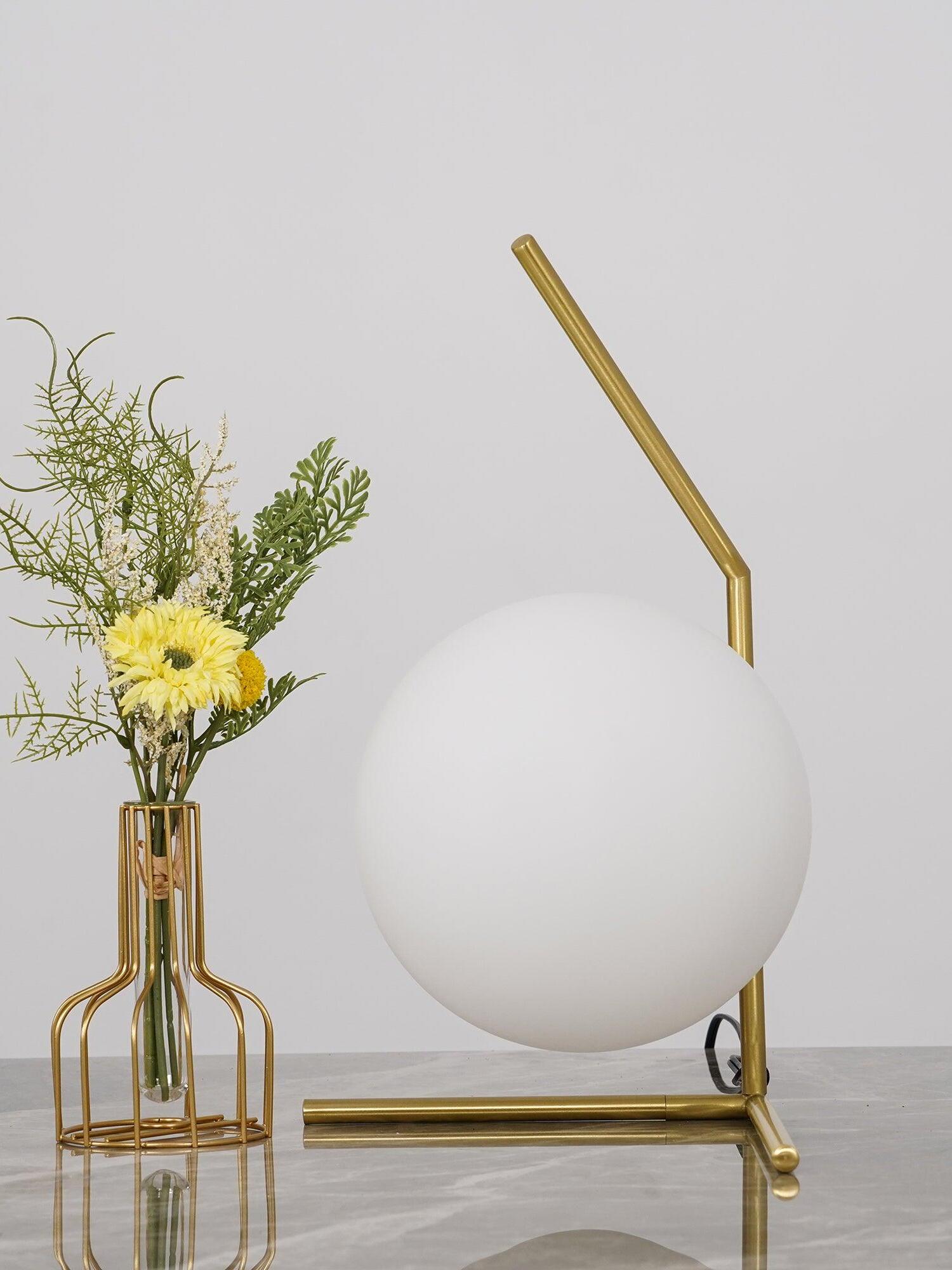IC Lights Table by renowned designer consists of a brass base that twists and bends at an angle. From there, a blown-glass white orb delicately balances. The table lamp, which casts diffused light, can be adjusted by a dimmer on the power chord. IC Lights T is now available in a brand-new Brass finish that adds dimension to the stunning collection of deceptively simple designs.
