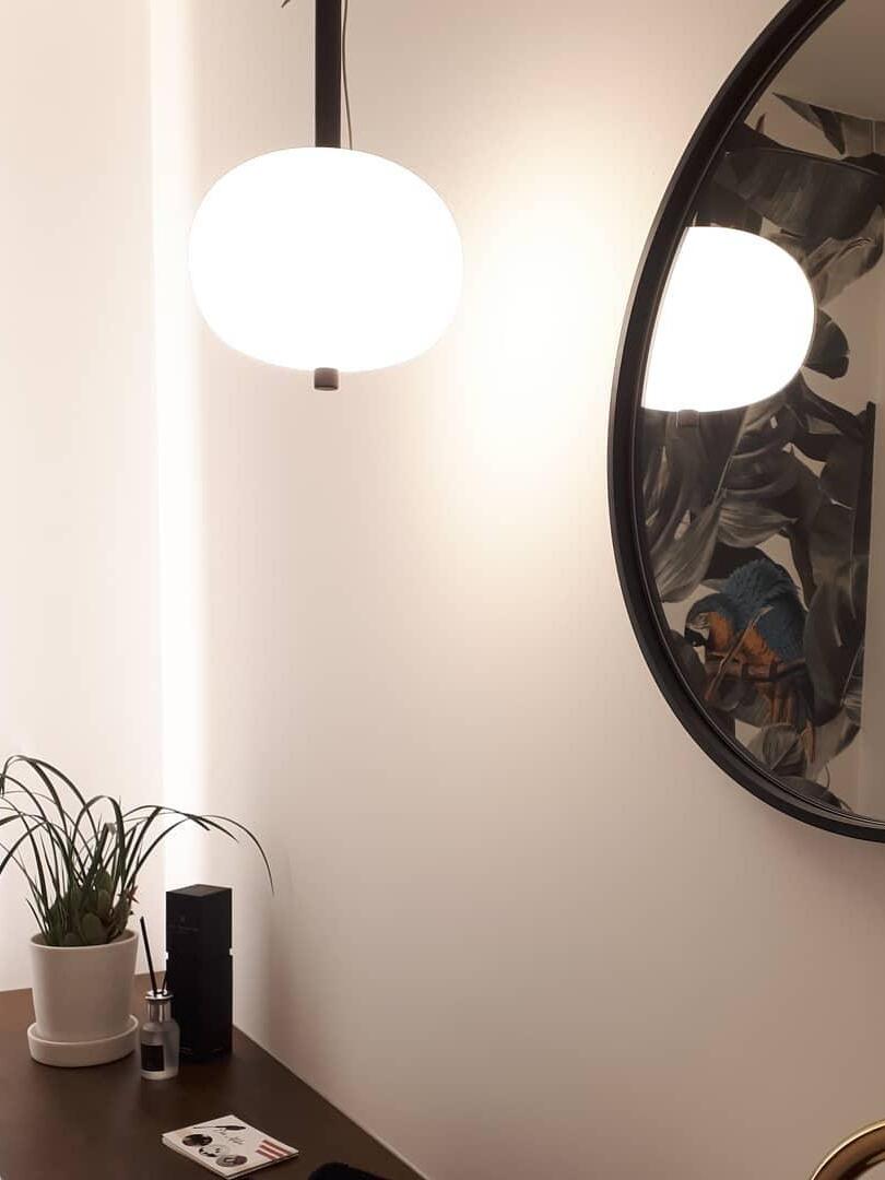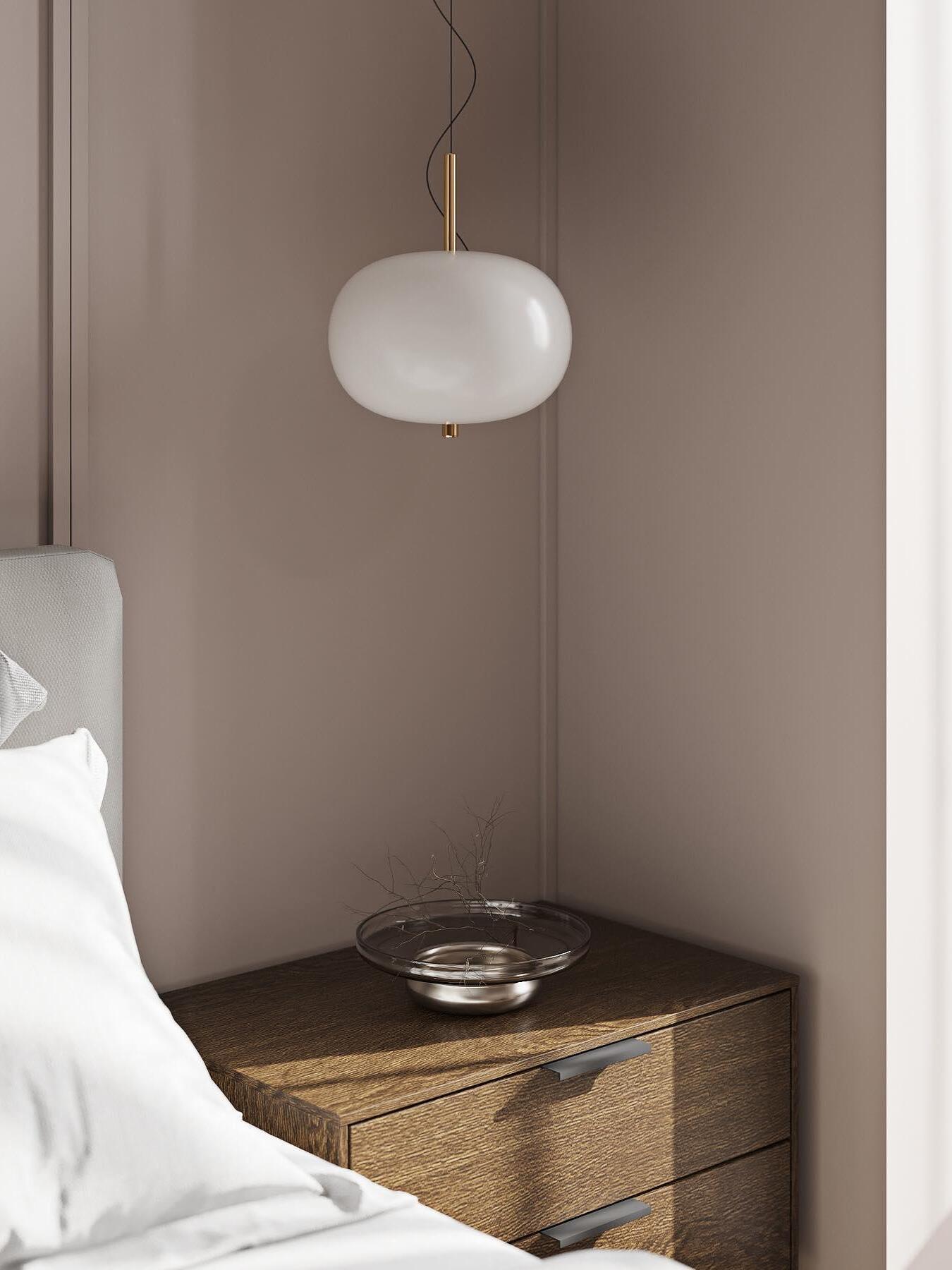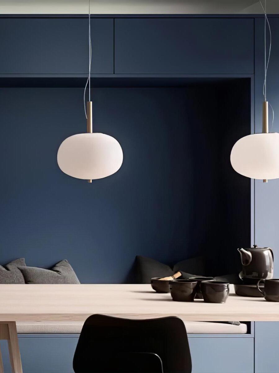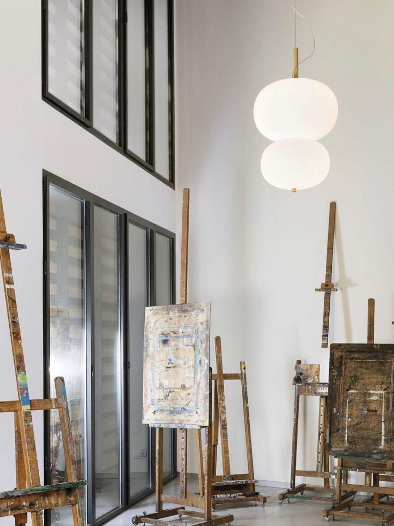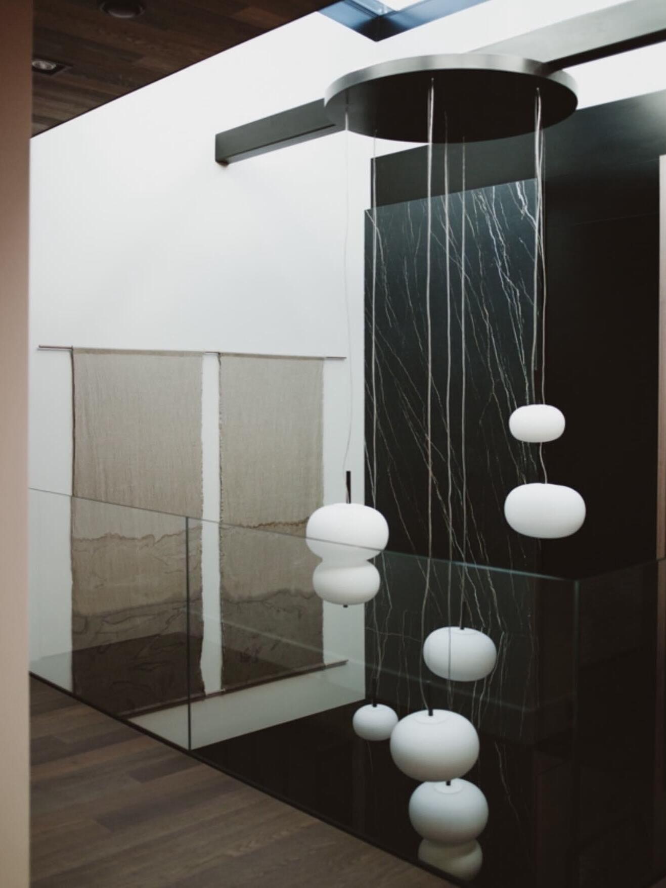 Ilargi lamp takes shape in a subtle and minimalist piece where a wooden wand sits between traditionally hand-blown glass spheres.Its warm, timeless design provides soft, pleasant light that adapts to professional and domestic settings, creating comfortable, natural spaces.
