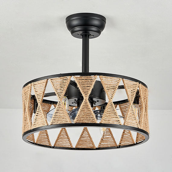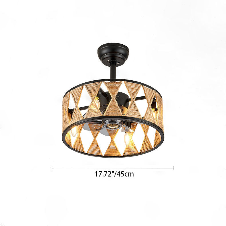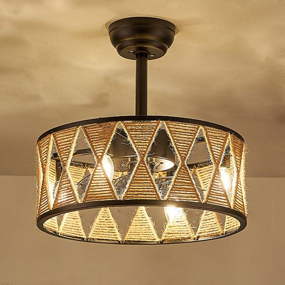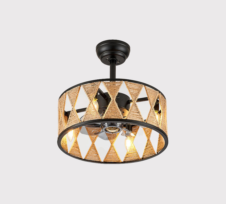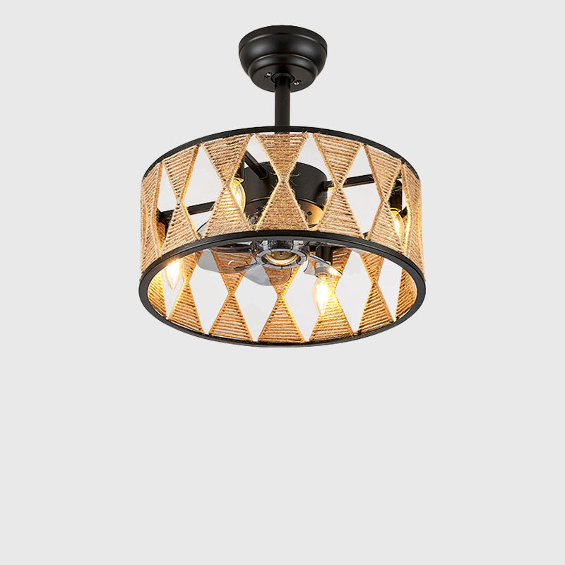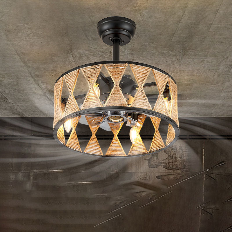 Industrial Creative Hemp Rope Cylinder 4-Light Downrods Ceiling Fan Light