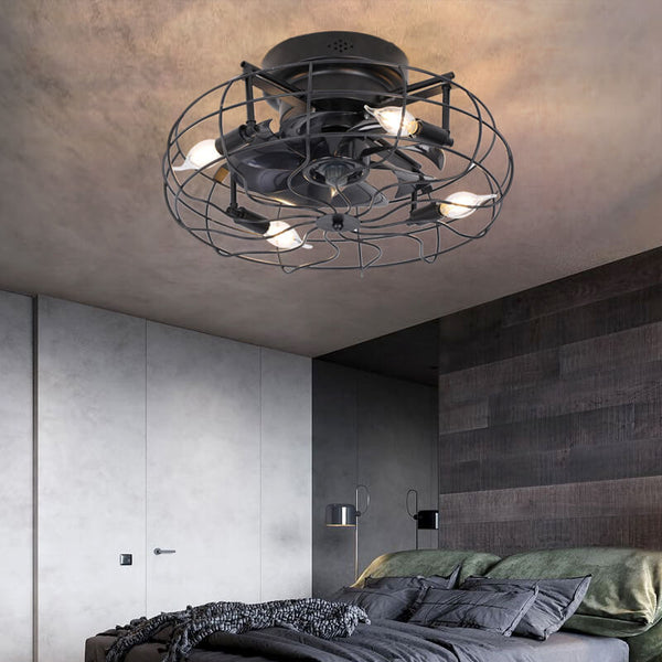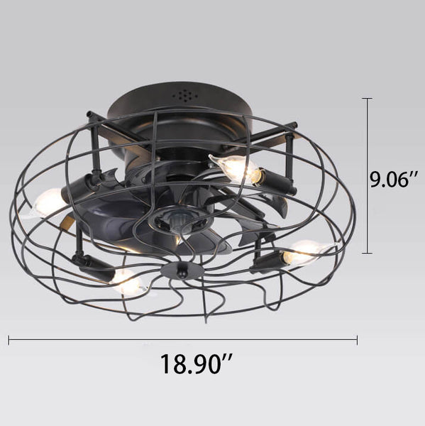 Industrial Retro Tungsten Light Bulb 4-Light Flush Mount Ceiling Fan Light