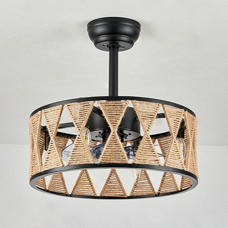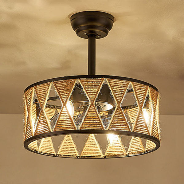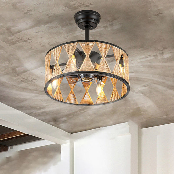 Industrial Round Twisted Rope Iron 4-Light Downrods Ceiling Fan Light