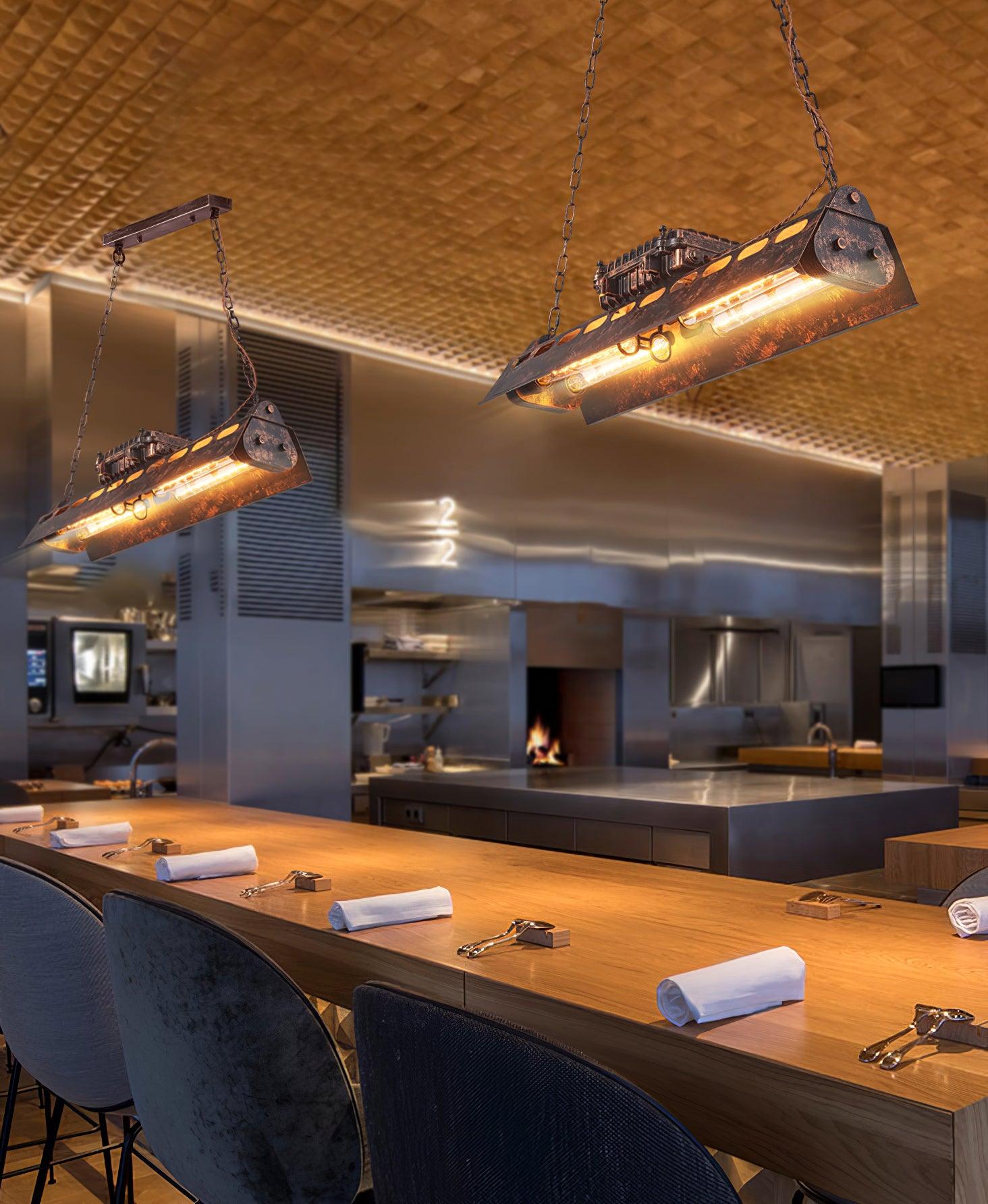 Bringing a sense of sophistication to your home with this pendant light, effortlessly brings vintage elements with industrial styling! Boasting a rectangular metal frame in the rust finish with hollow-out details and a unique box, this chic pendant light introduces an industrial appeal and vintage glamour to your decor. Several Edison bulbs (not included) are underneath the metal frame for bright light, creating a peaceful and pleasing ambiance.