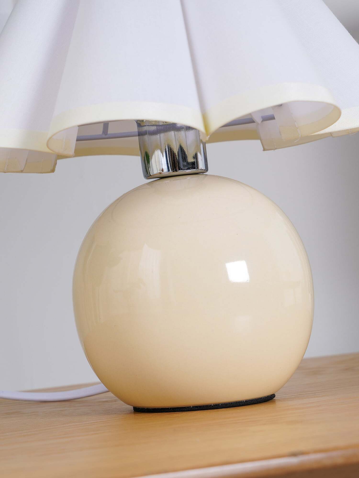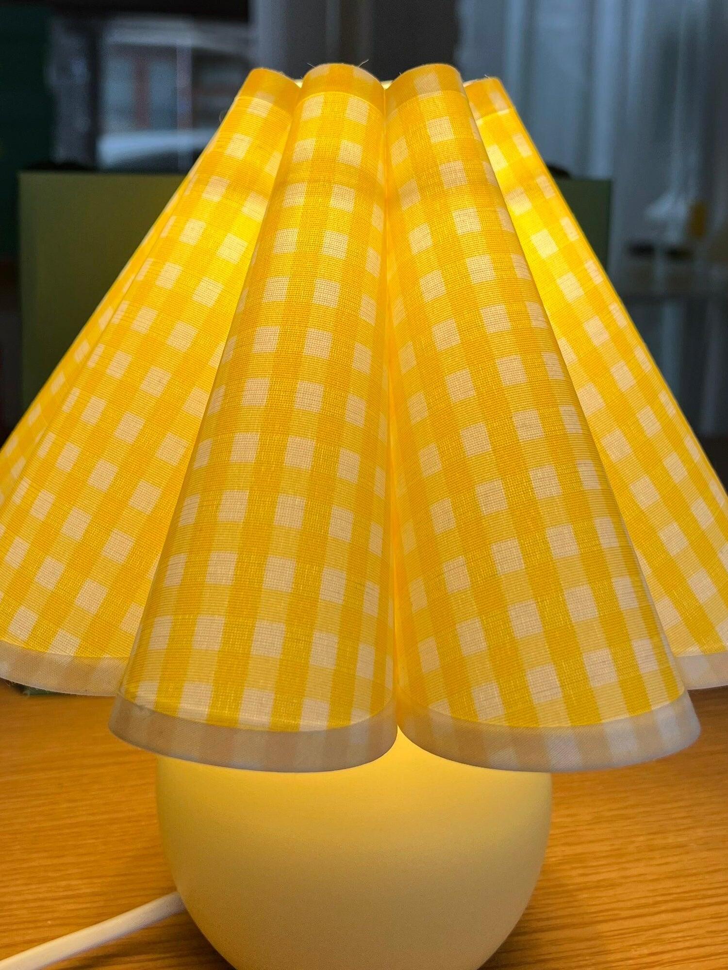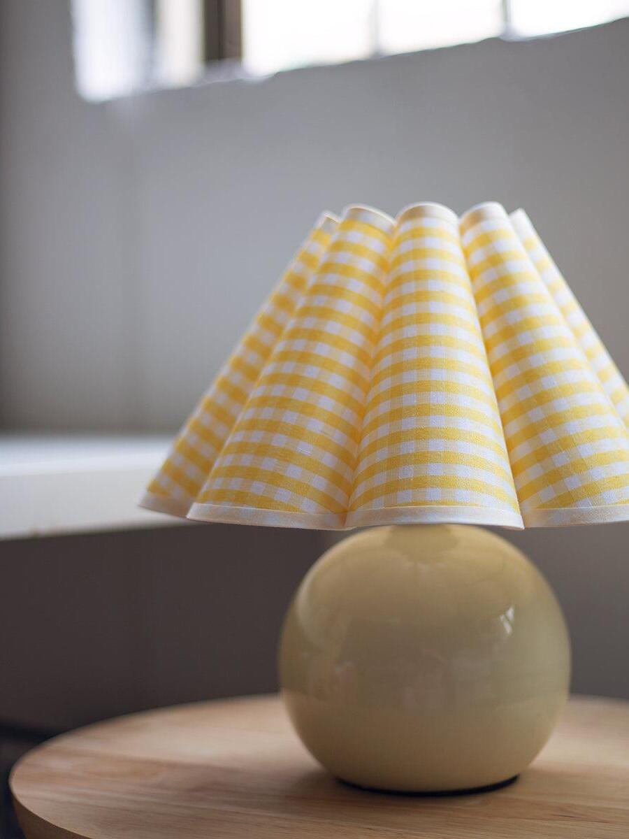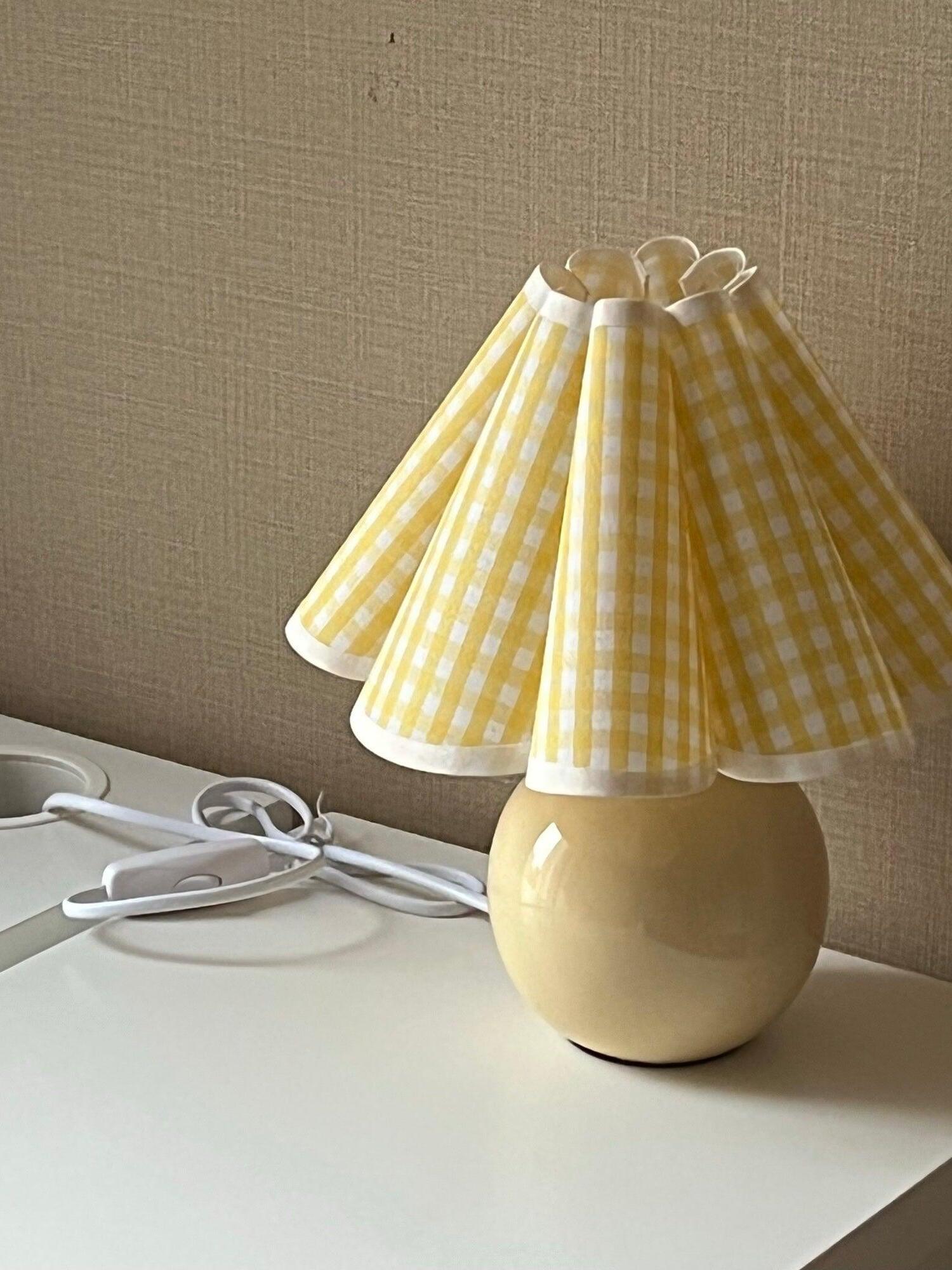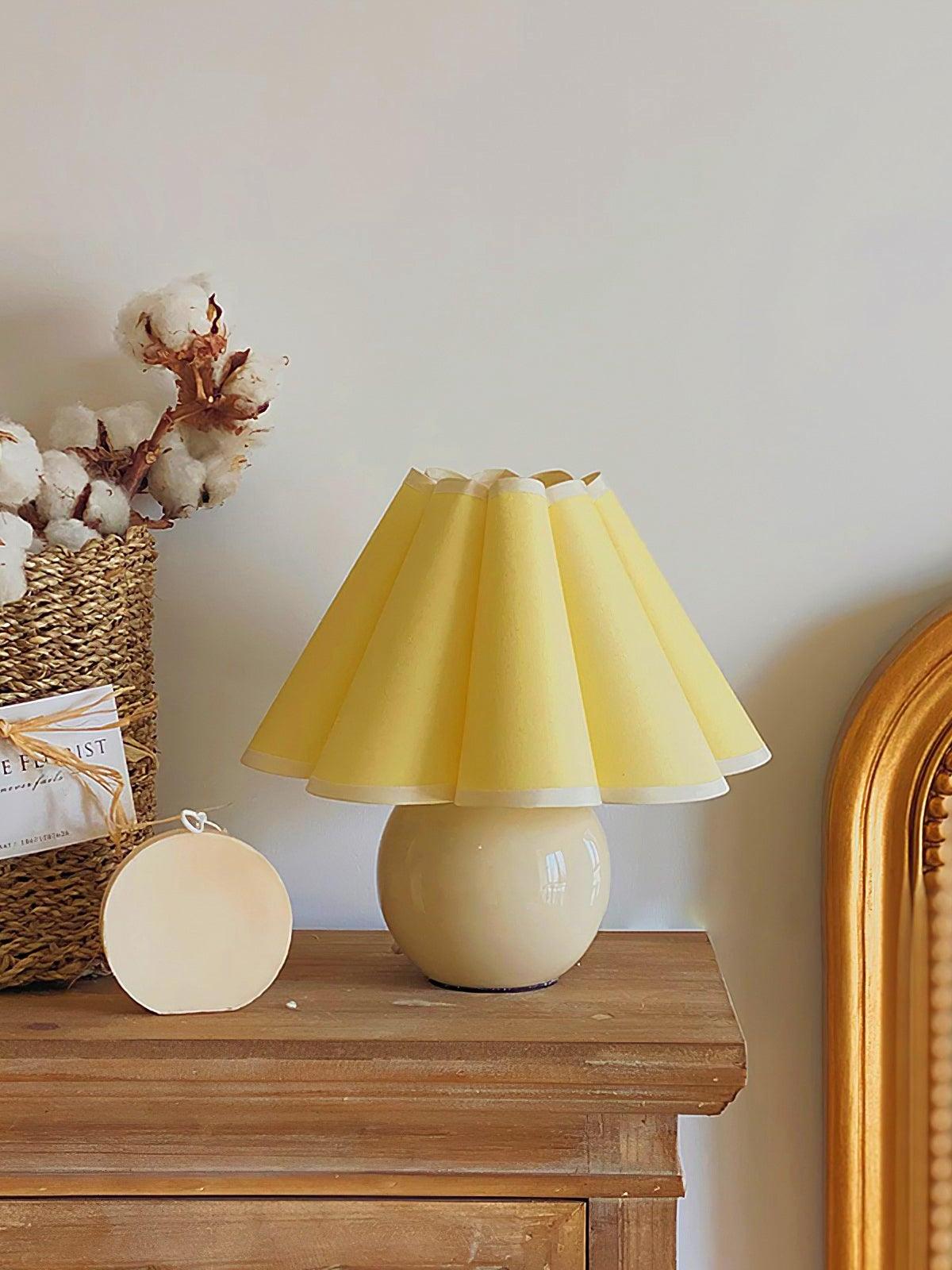Kicsi '(pronounced "Kitchi", meaning 'mini' in Hungarian). Our white Kicsi Pleated Table Lamp features a vintage style linen pleated shade, and white ceramic body. This mushroom pleated hardback shade in creme has a traditional look. The fold over trim adds a soft touch to the pleated shade.