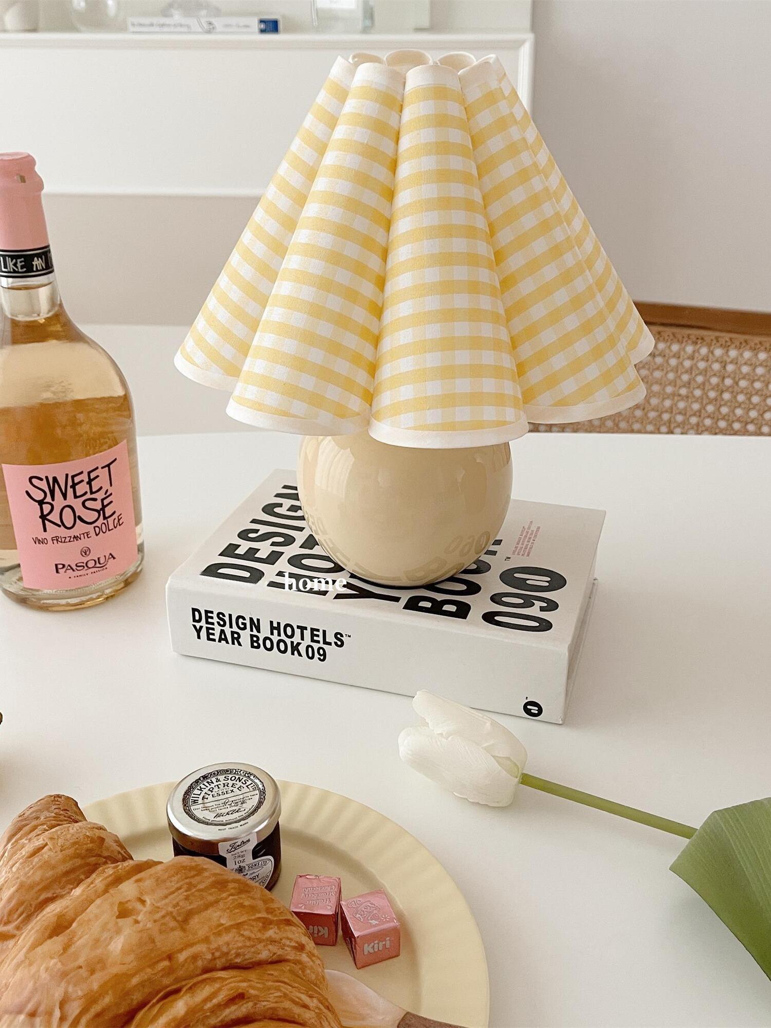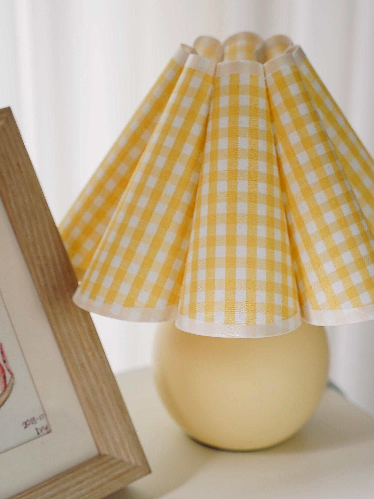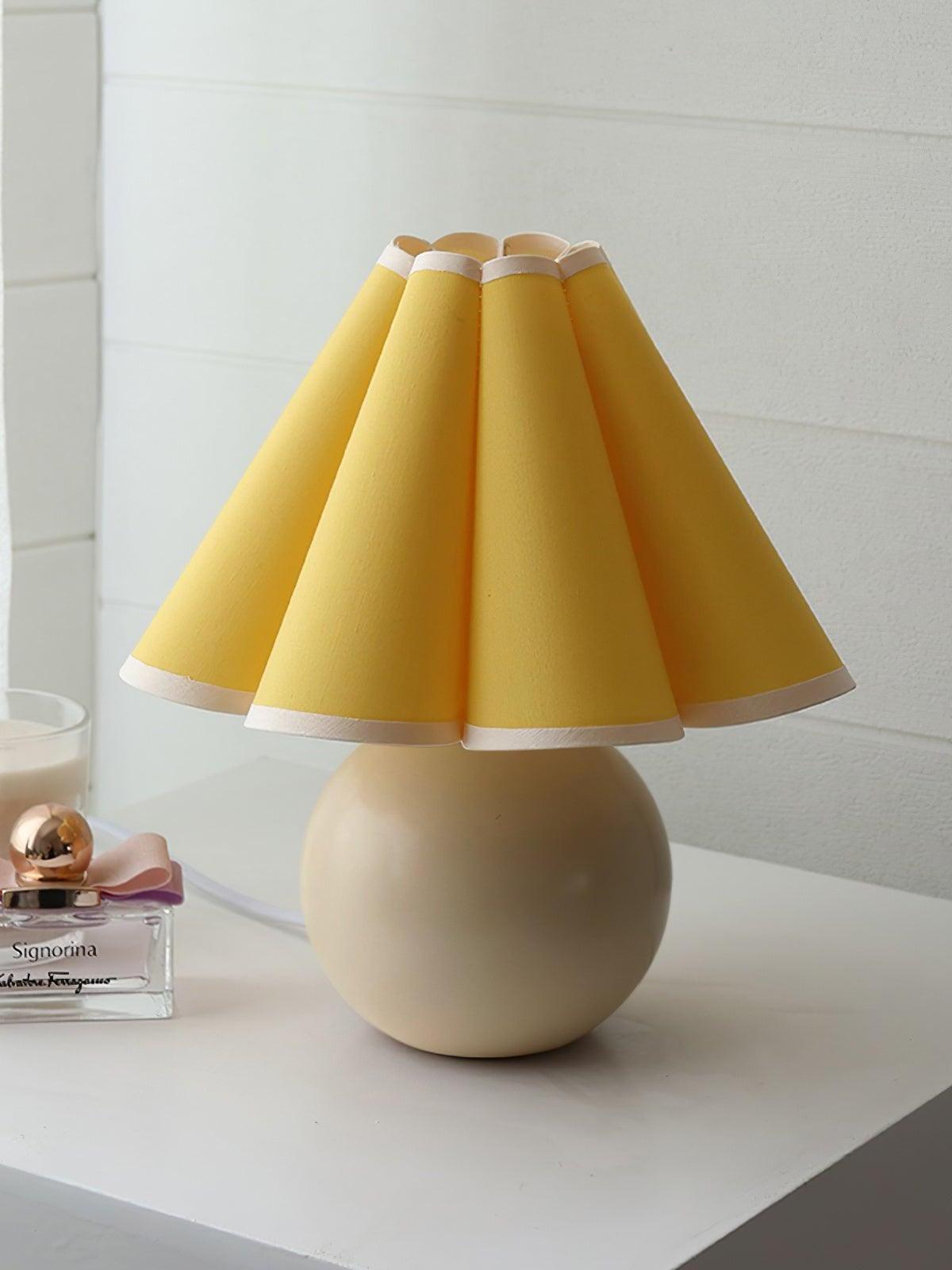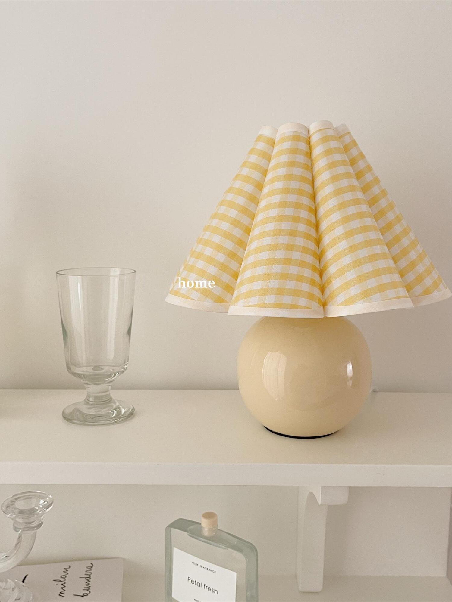 Kicsi '(pronounced "Kitchi", meaning 'mini' in Hungarian). Our white Kicsi Pleated Table Lamp features a vintage style linen pleated shade, and white ceramic body. This mushroom pleated hardback shade in creme has a traditional look. The fold over trim adds a soft touch to the pleated shade.