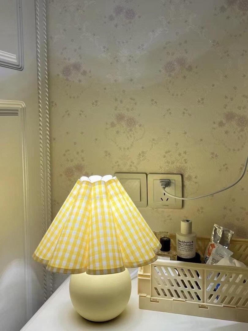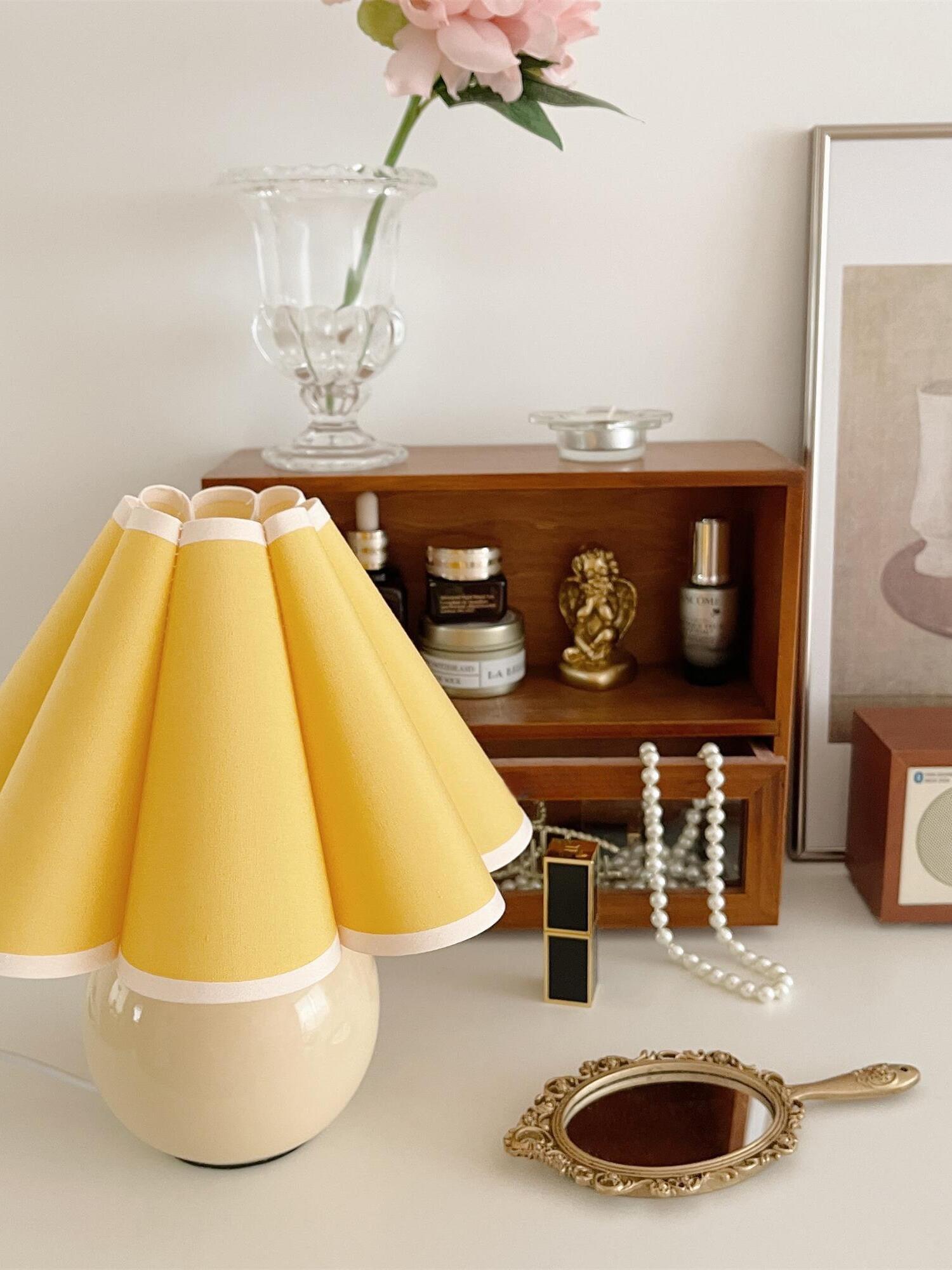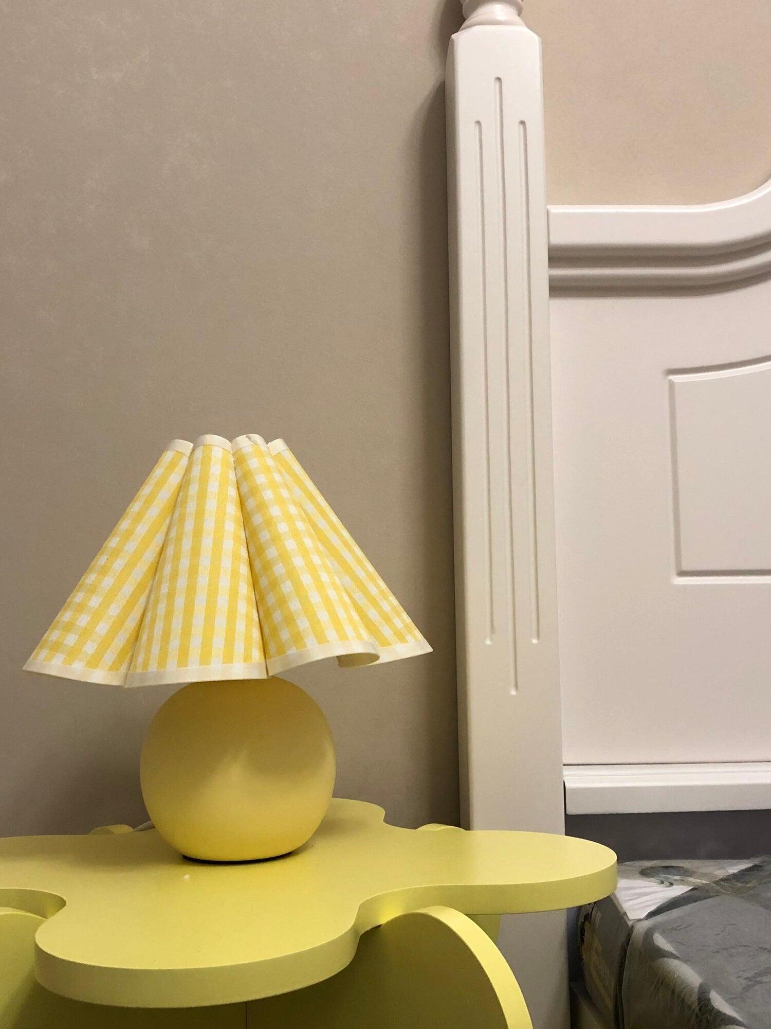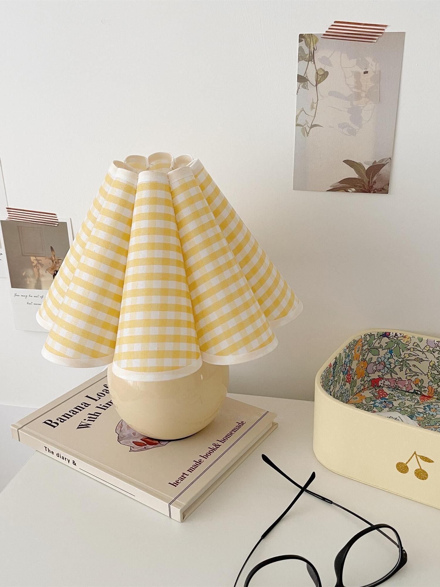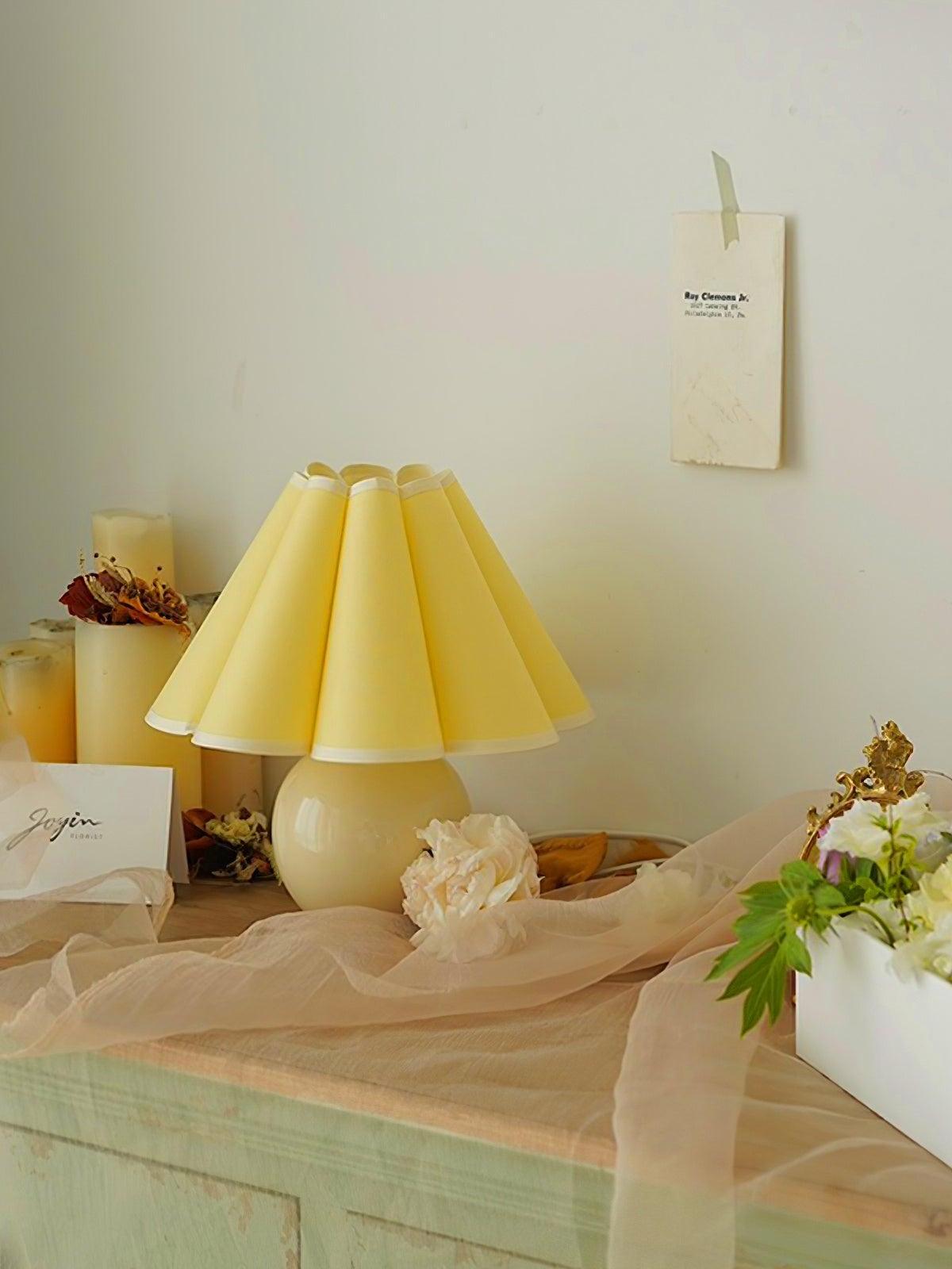 Kicsi '(pronounced "Kitchi", meaning 'mini' in Hungarian). Our white Kicsi Pleated Table Lamp features a vintage style linen pleated shade, and white ceramic body. This mushroom pleated hardback shade in creme has a traditional look. The fold over trim adds a soft touch to the pleated shade.