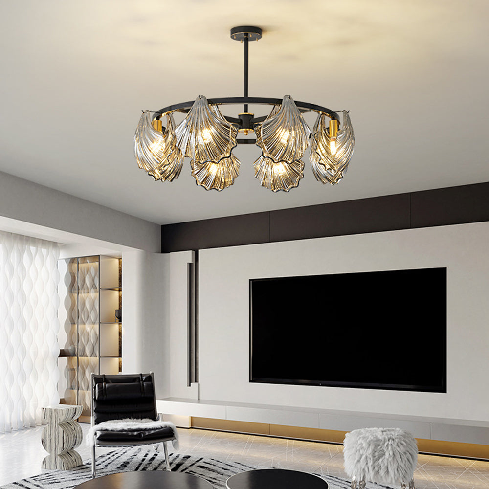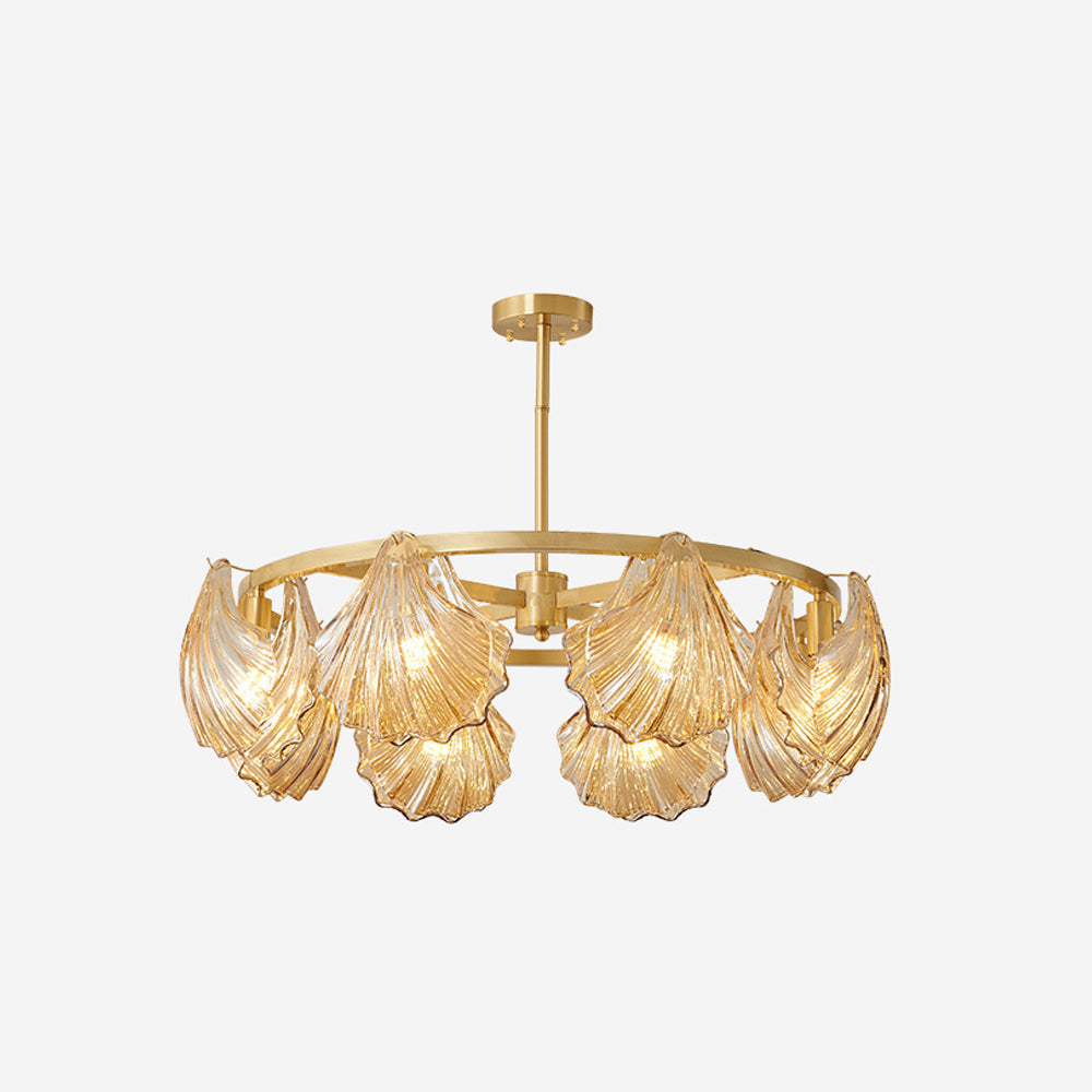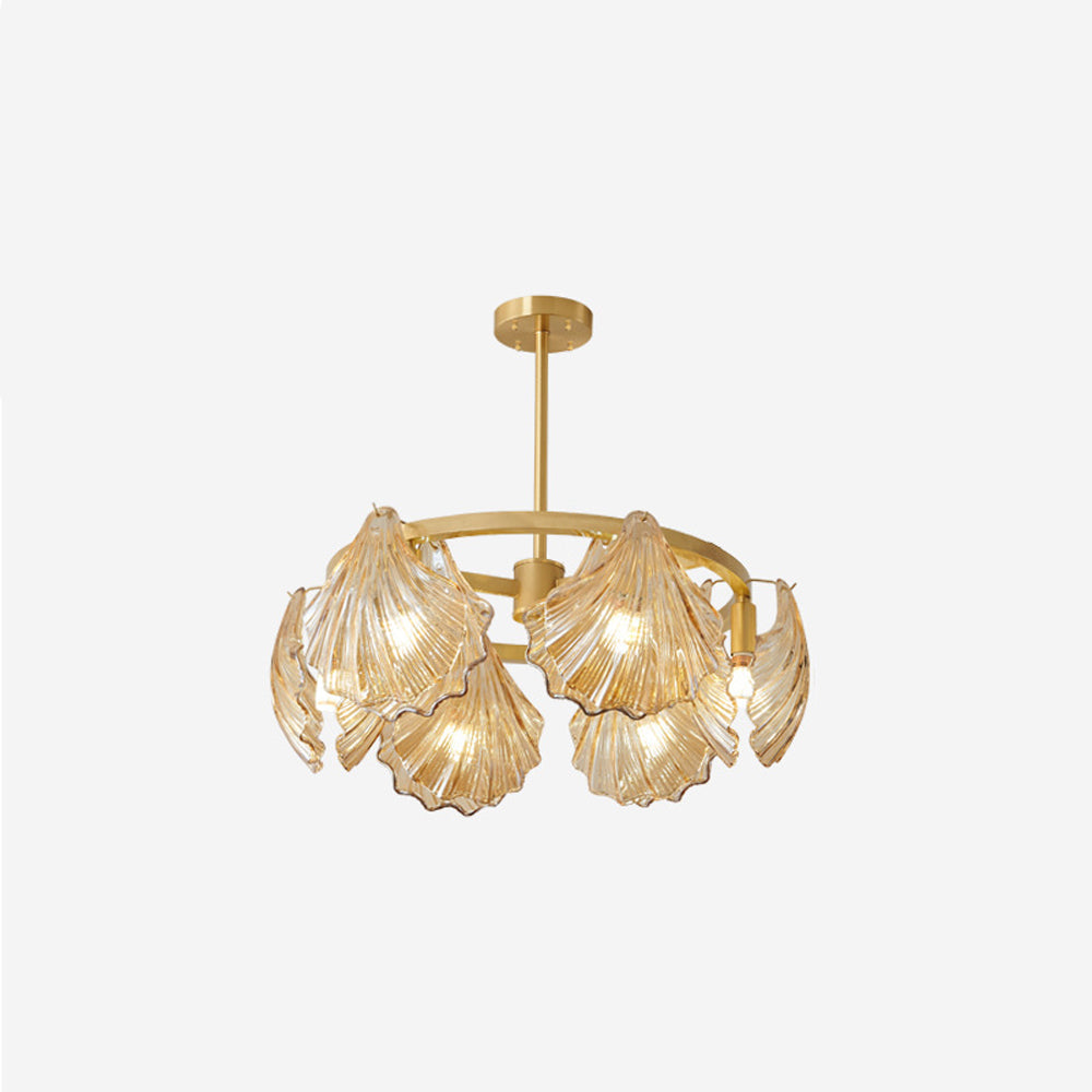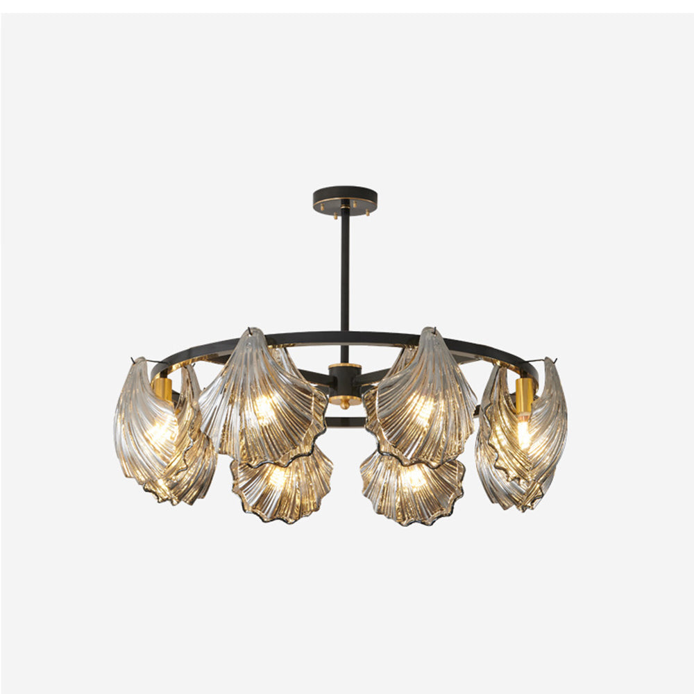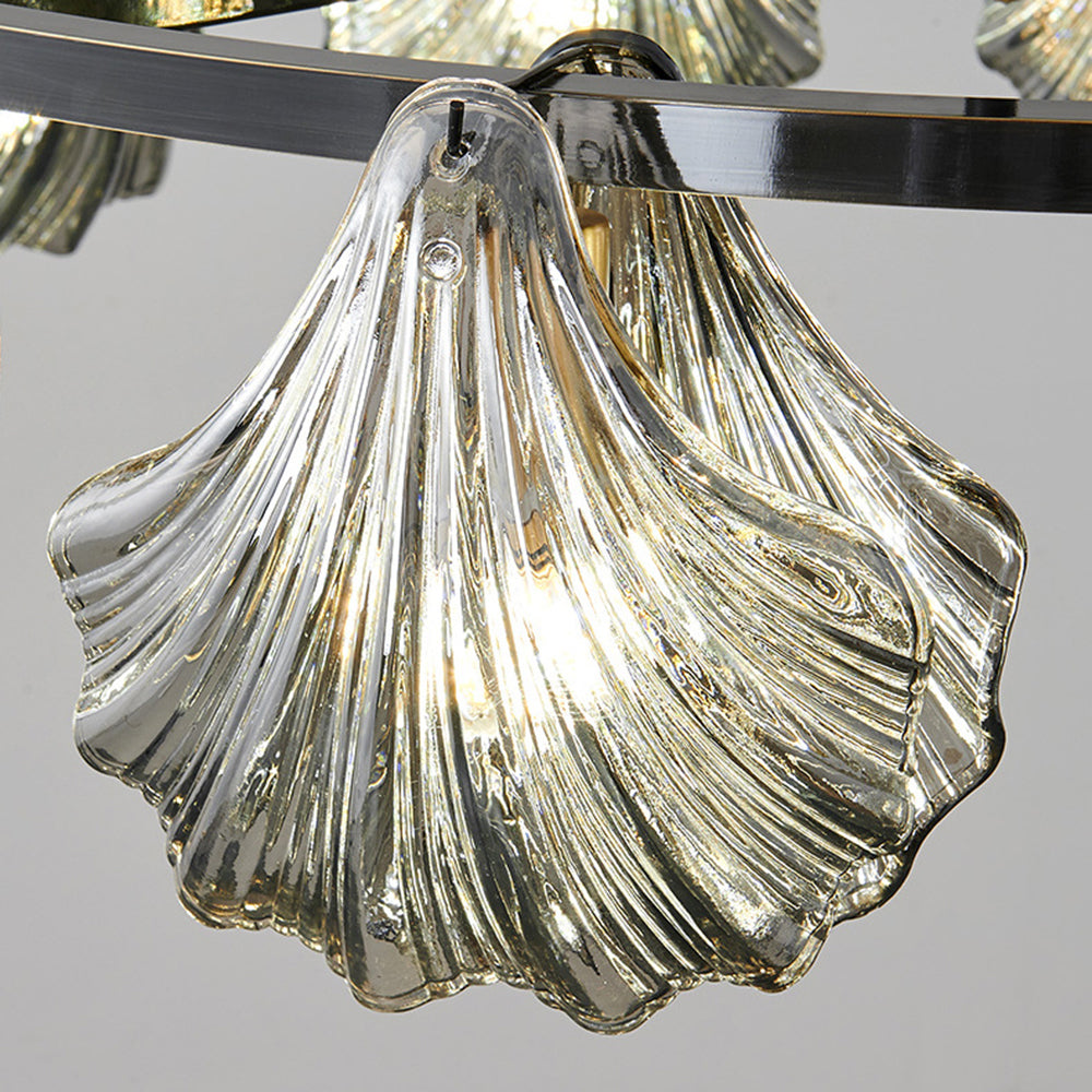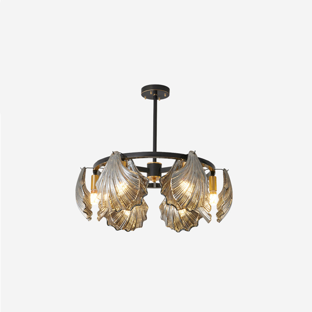 The pendant light features a Round frame design, with a shell-shaped lamp body. The multiple light design adds a sense of artistry and creates a unique visual effect, enhancing the artistic ambiance of the space.