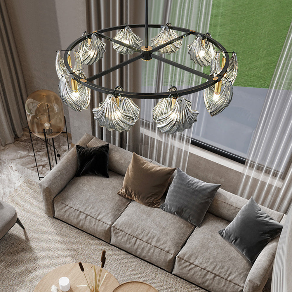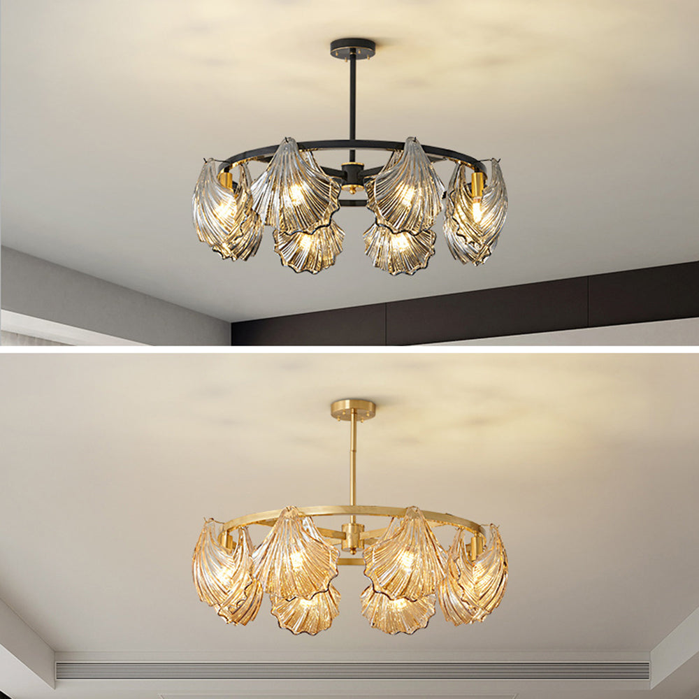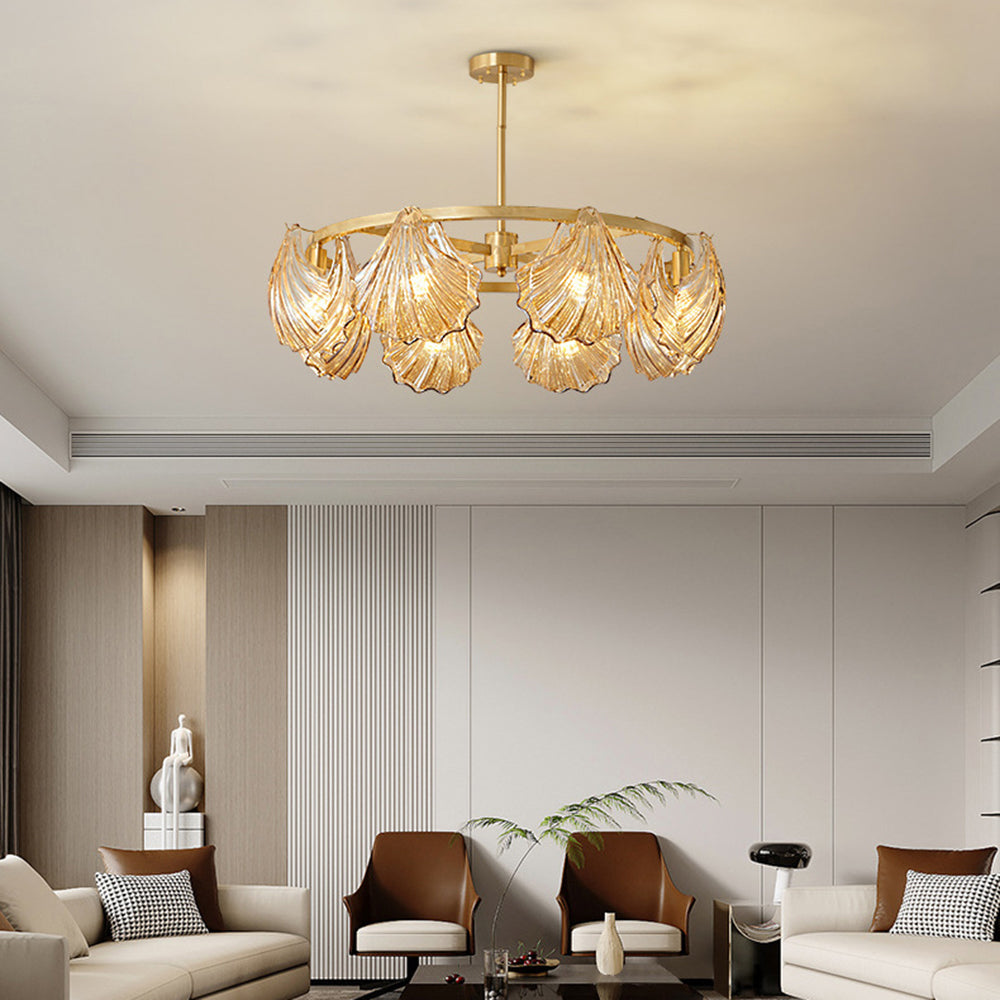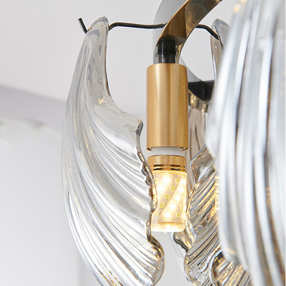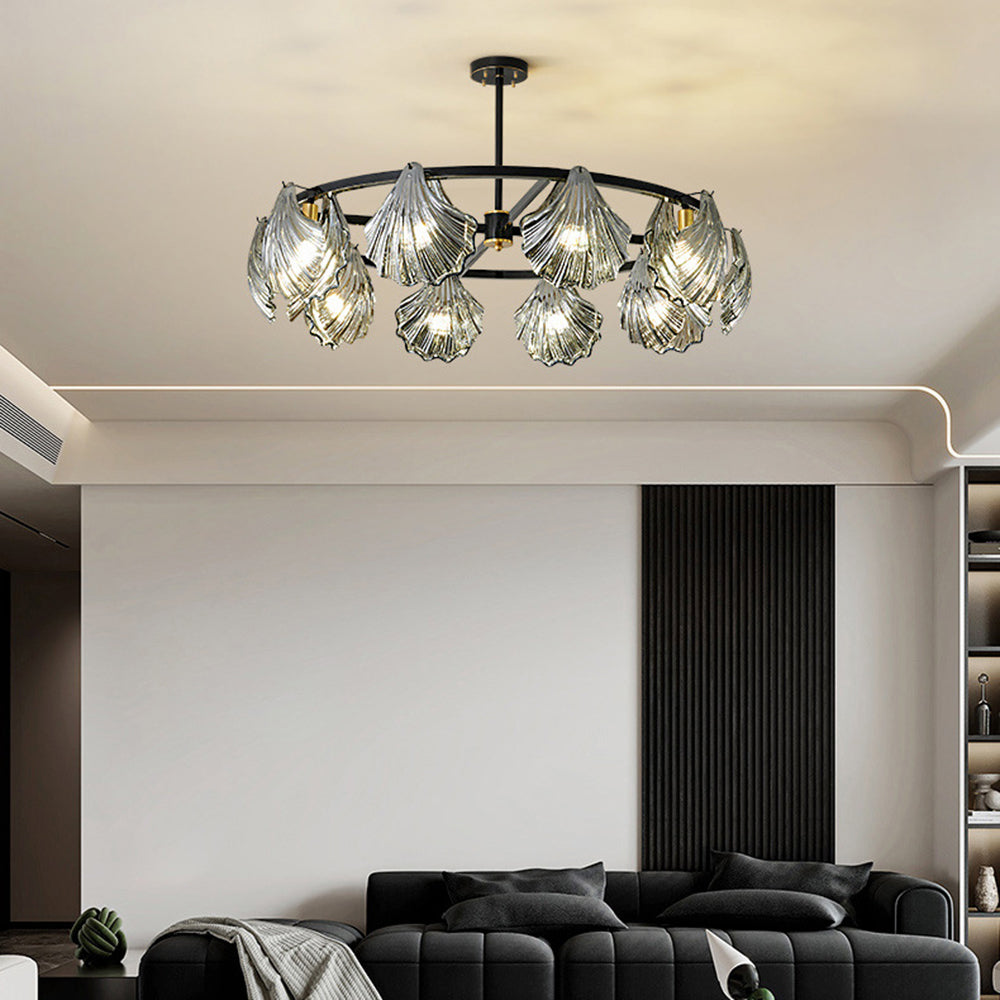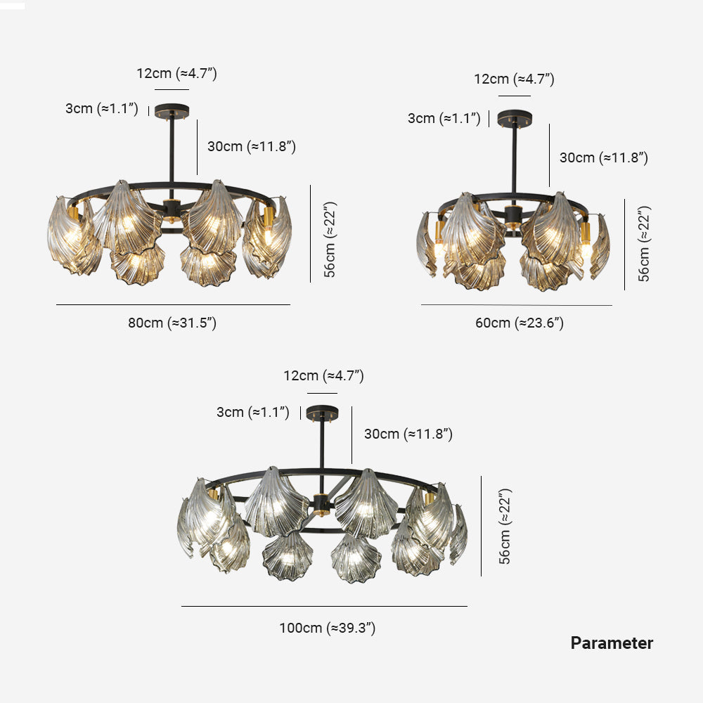The pendant light features a Round frame design, with a shell-shaped lamp body. The multiple light design adds a sense of artistry and creates a unique visual effect, enhancing the artistic ambiance of the space.