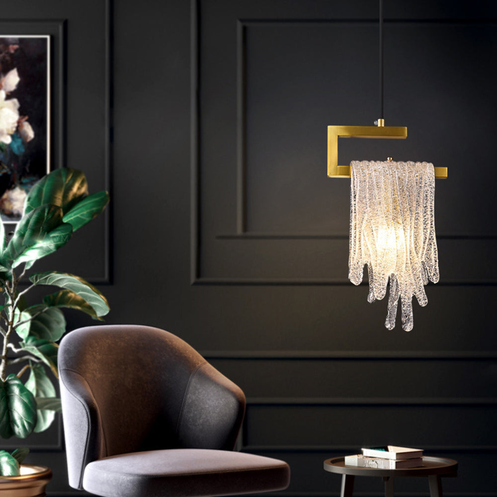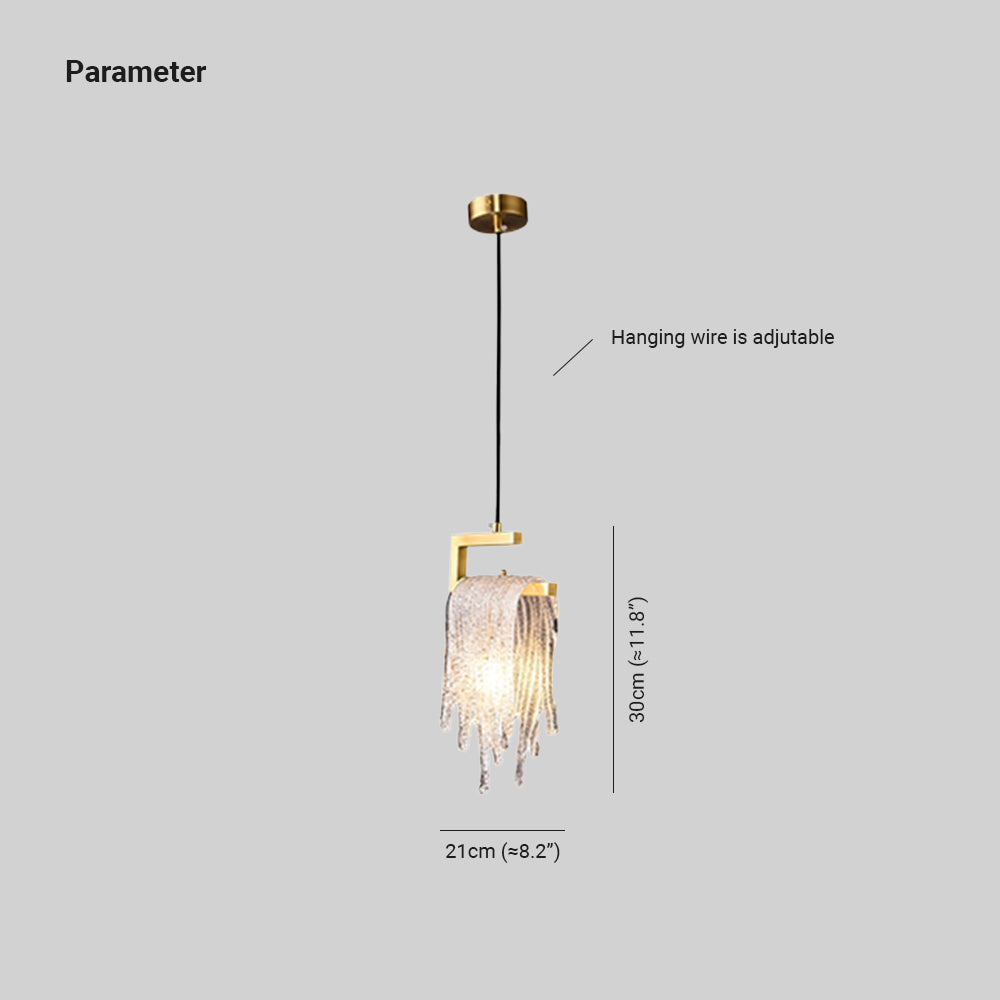 - The innovative design of Kristy Pendant Light, which resembles liquid jelly. Its transparent crystal glass shade takes on an attractive jelly-like shape, creating a visual spectacle both artistic and whimsical. This unique shape adds playfulness to the room and raises the atmosphere to a whole new level. Install it and let your room come alive with its exciting jelly-like silhouette.