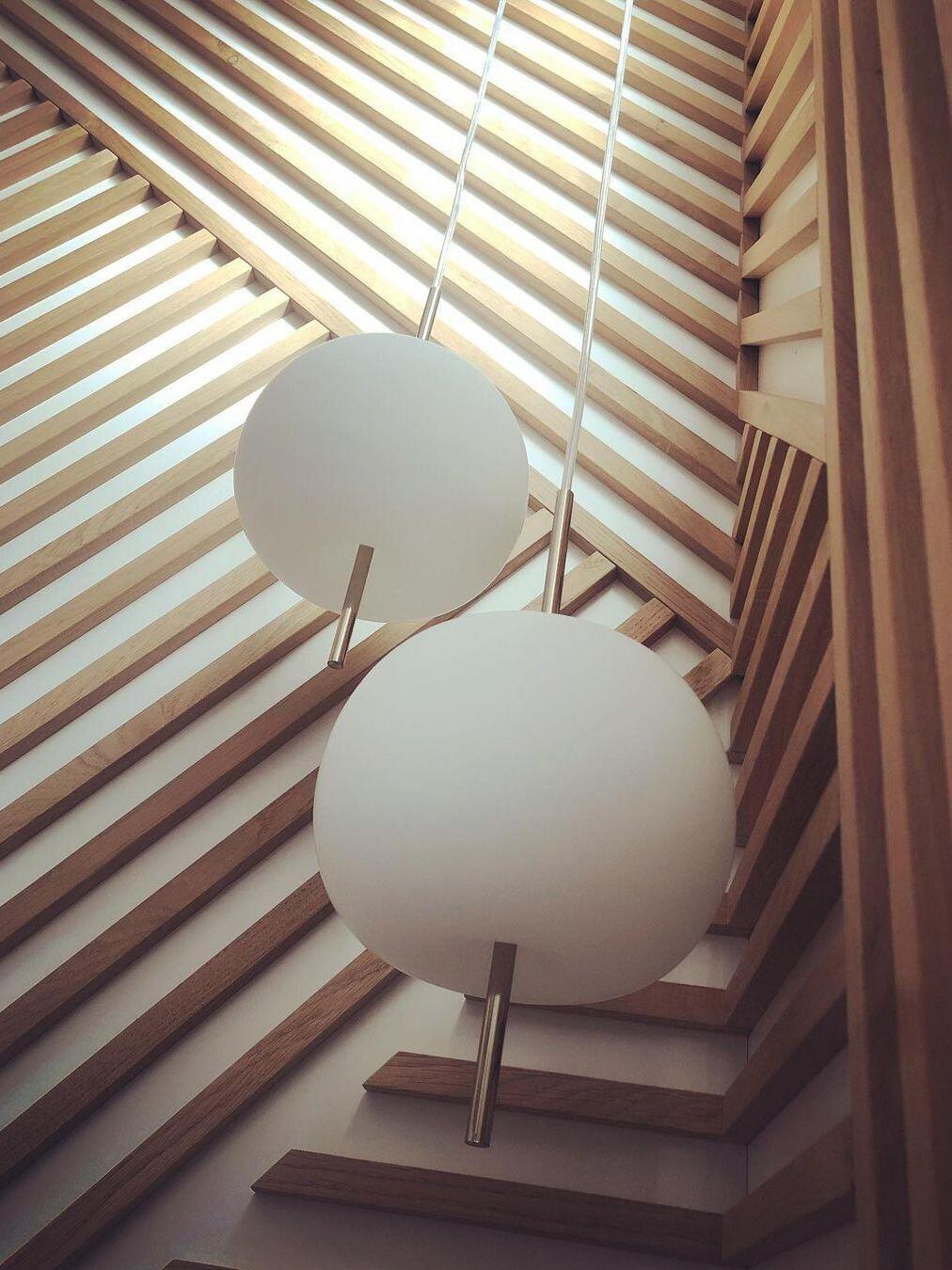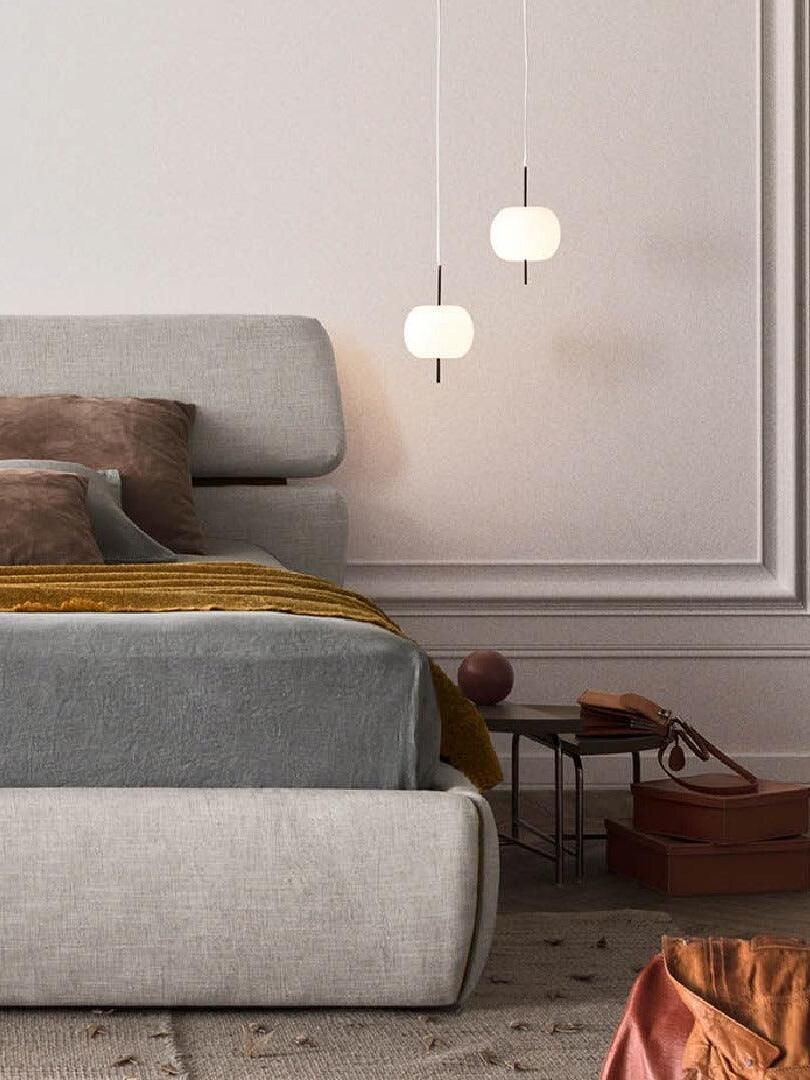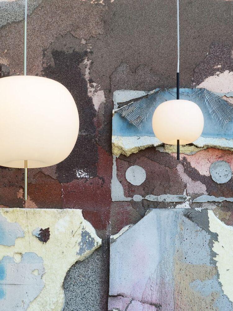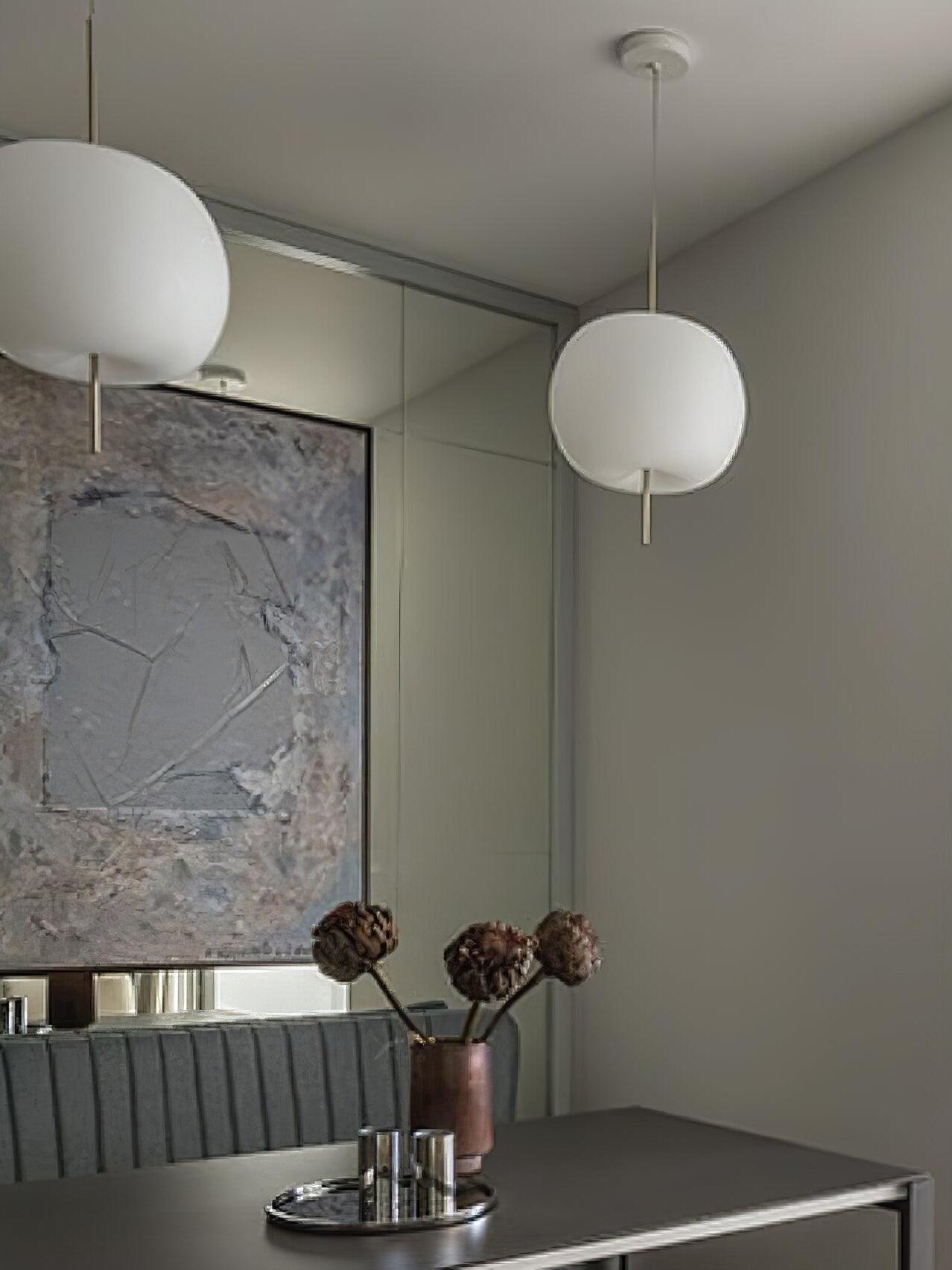 KUSHI, as its name suggests, is a very unique pendant light designed with inspiration from the Japanese "kushi". The design, which looks like an apple on a skewer, is a tribute to "food" and "Made in Italy". The shade part is made of two layers of blown glass and has a white color.