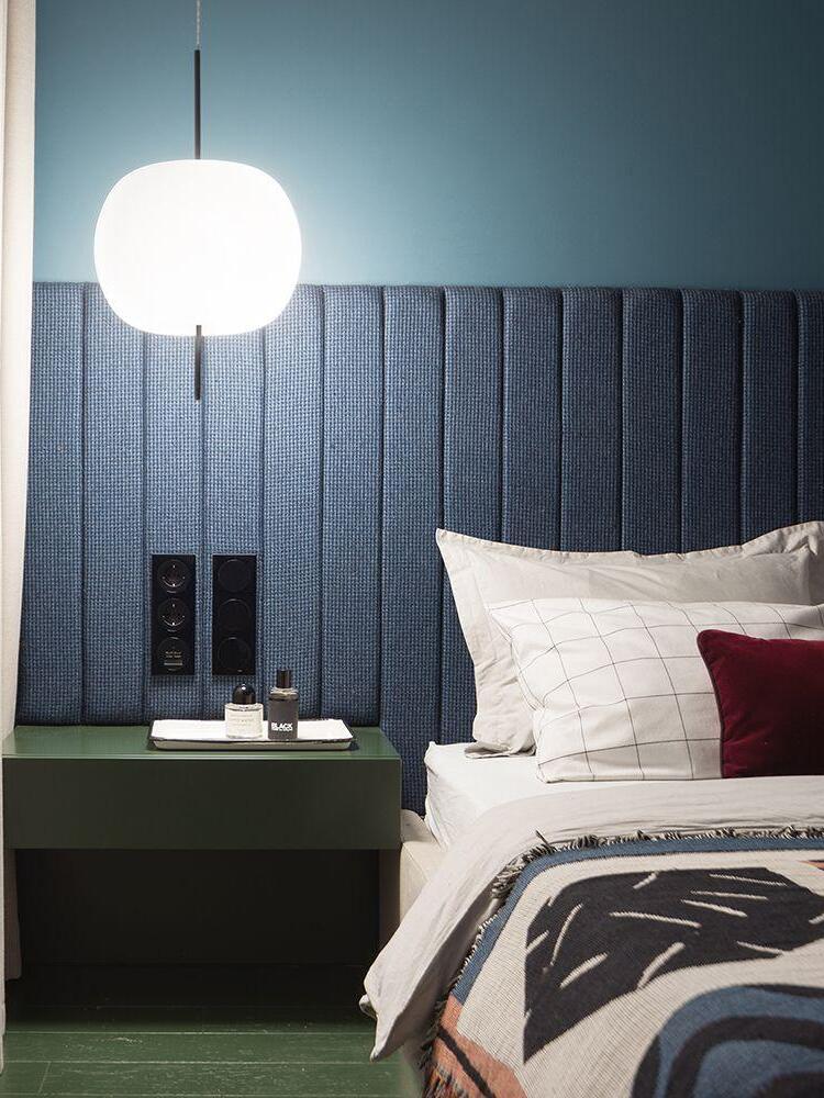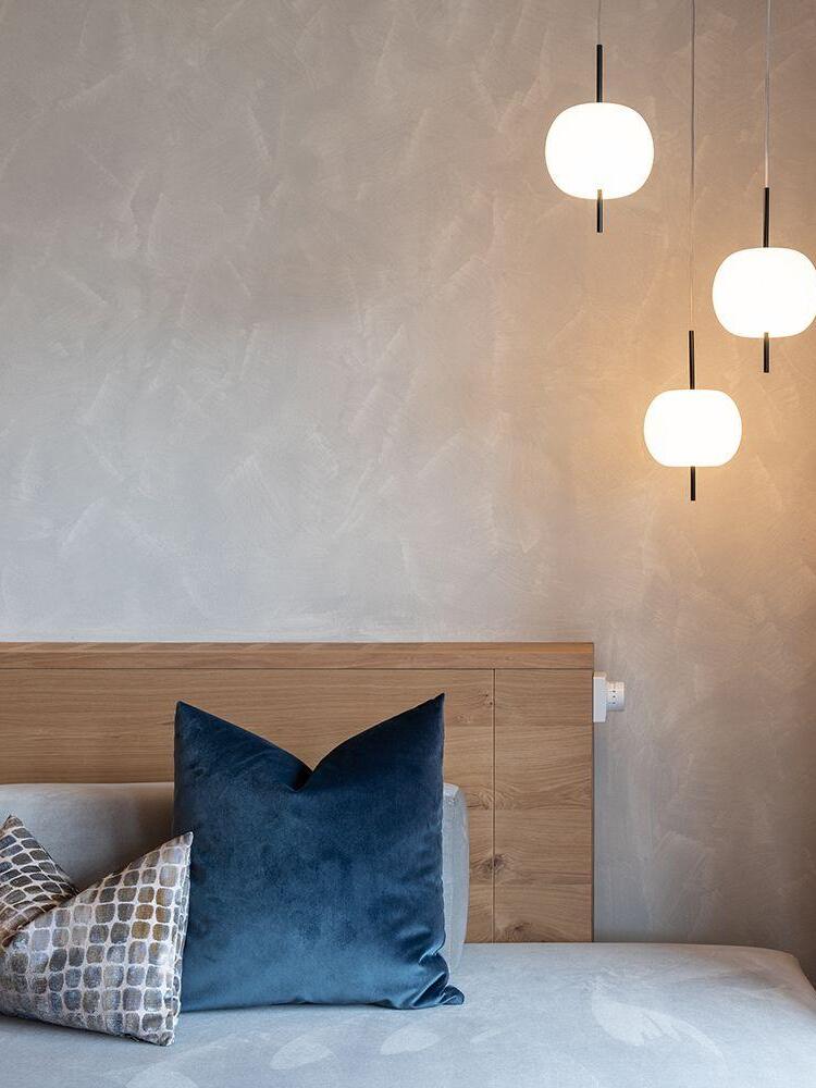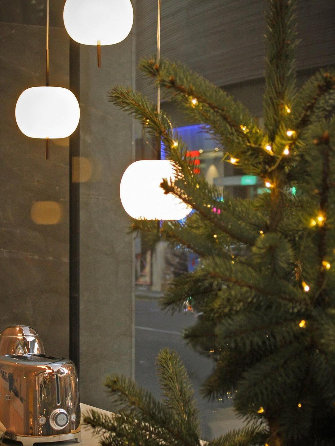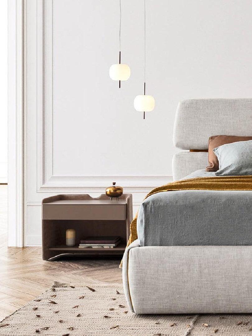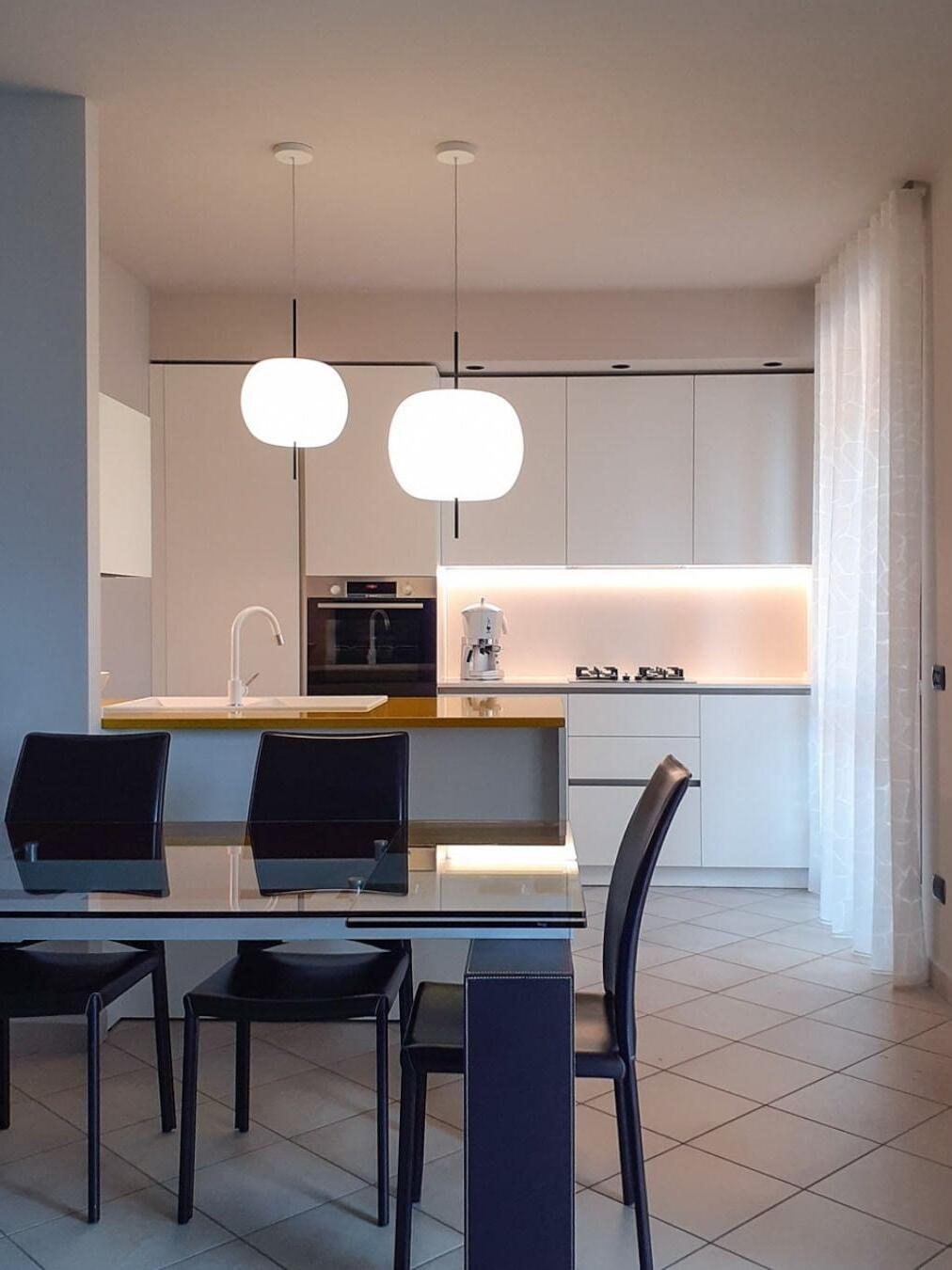 KUSHI, as its name suggests, is a very unique pendant light designed with inspiration from the Japanese "kushi". The design, which looks like an apple on a skewer, is a tribute to "food" and "Made in Italy". The shade part is made of two layers of blown glass and has a white color.