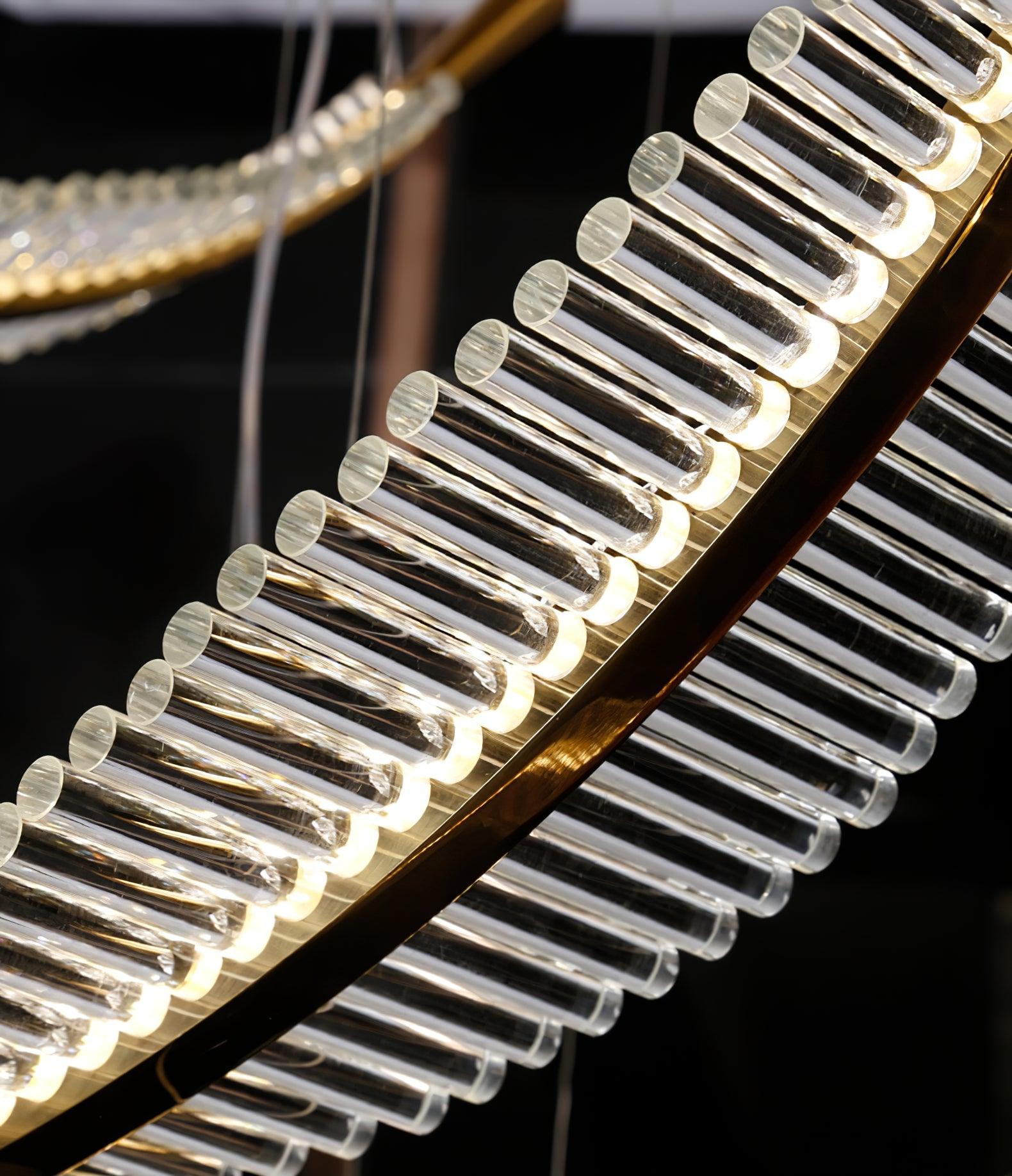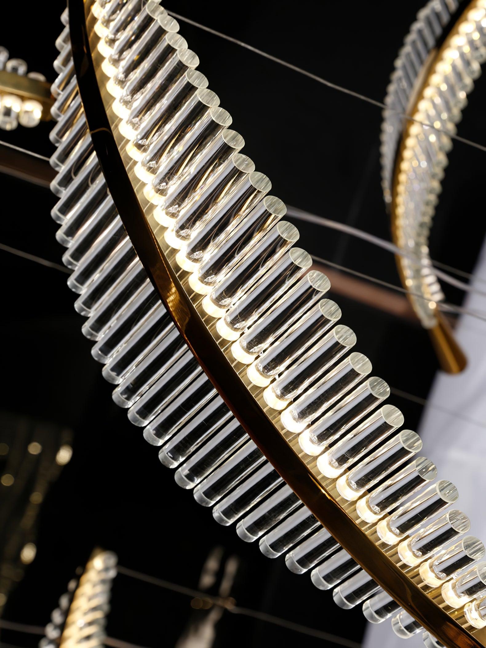 Italian artistry and elegance, embodied. The Leaf LED Chandelier is an expertly handmade display of striking acrylic leaves secured to a powder coated metal frame with Gold finials. As light pours through, every intricate detail is highlighted, creating a luxurious appeal that gorgeously complements the ambient illumination. This chandelier deserves to be placed in a prominent space like a dining room or large foyer.