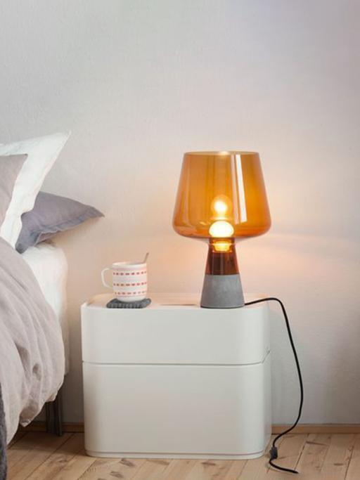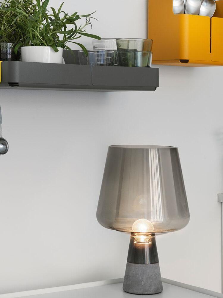 Leimu was inspired by modern architecture, specifically the combination of concrete and glass. Designed to mimic a flame, Leimu is a striking balance between sensitivity and strength. The streamlined design features a delicate mouthblown glass shade and a solid, concrete base. Achieving the right balance between concrete and glass required the best experts at the Iittala Glass Factory. Smooth to the touch, the handmade Leimu lamp reflects a soft, gentle light that warms any interior. Grey adds cool sophistication.