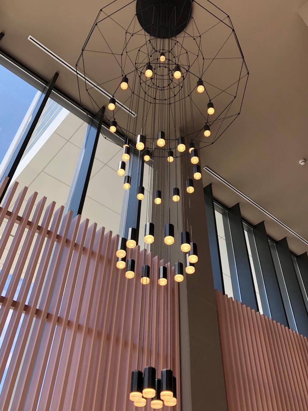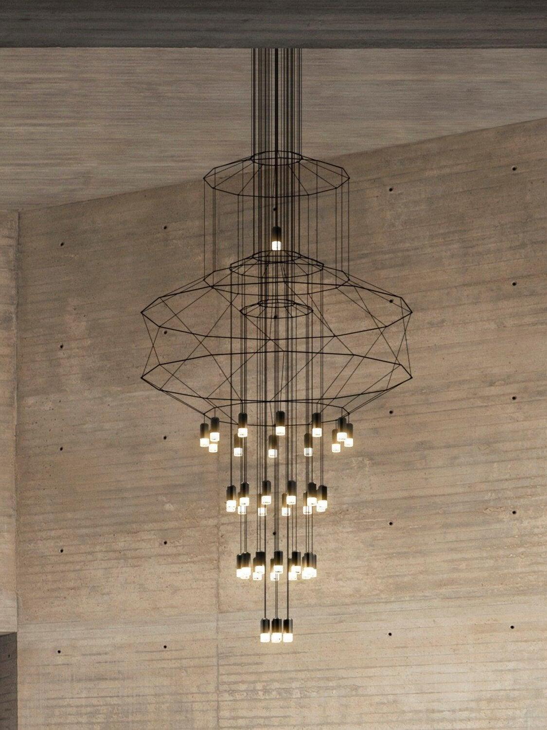 The Industrial Metal Lines Multi-head Chandelier embodies the raw beauty of the urban landscape. Its industrial design, characterized by metal lines and geometric shapes, exudes an edgy yet refined aesthetic. This captivating luminaire adds an element of intrigue to both modern loft spaces and contemporary industrial interiors.