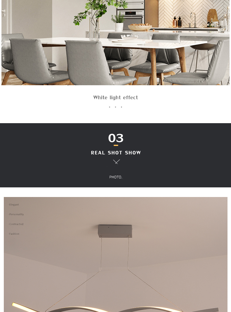 - The modern linear pendant light is made of metal and acrylic. And the surface color is uniform. It has good anti-corrosion and anti-rust effects. And it is acryliclampshade, which can emit soft and uniform light. It is bright and comfortable.
