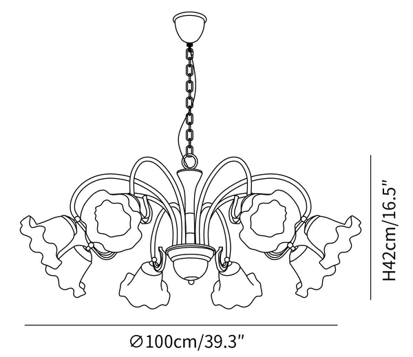 8 Heads Size: Dia 100cm x H 42cm / ∅ 39.3″ x H 16.5″