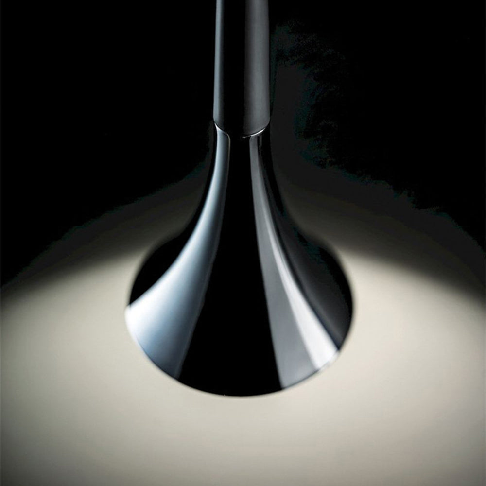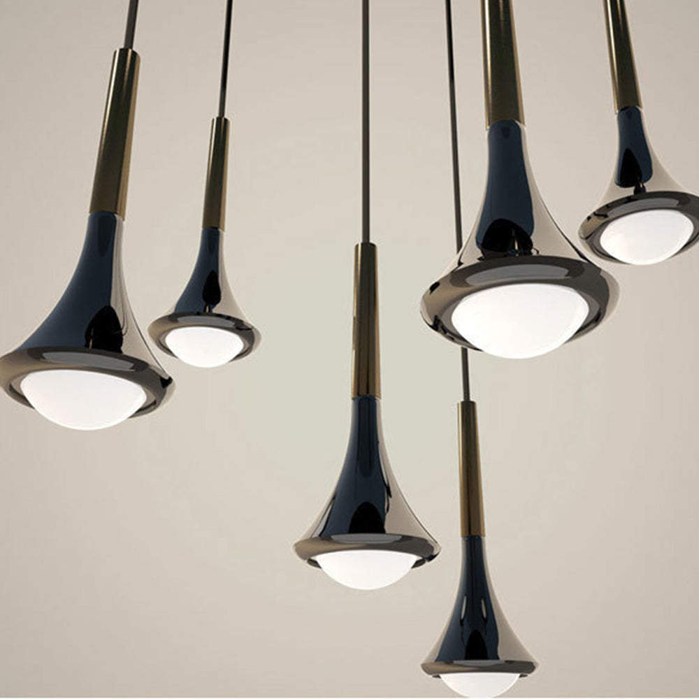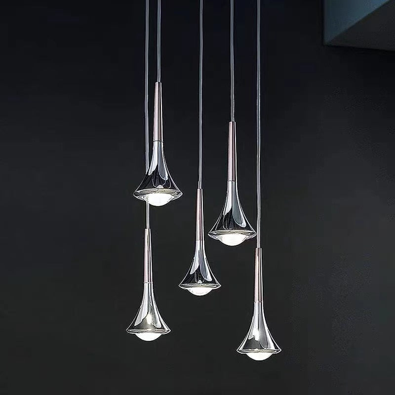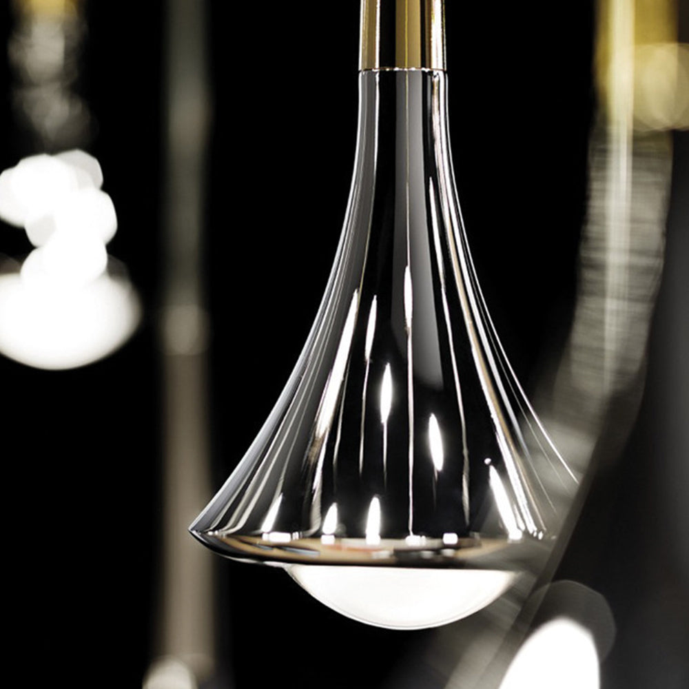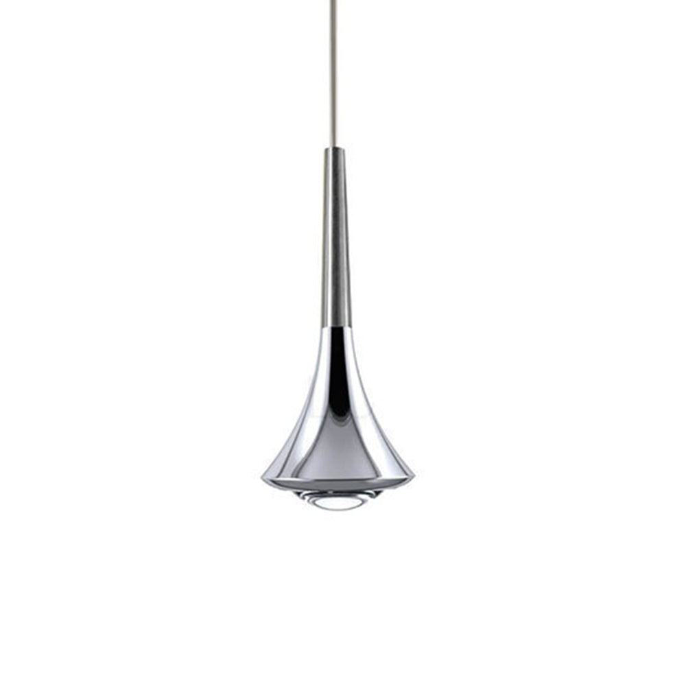 The chrome diffuser is tapered off to the top into a slender stem. At the base of each shade is the rounded, glass diffuser that conceals the led light source. When illuminated this decorative pendant light casts direct downward light.