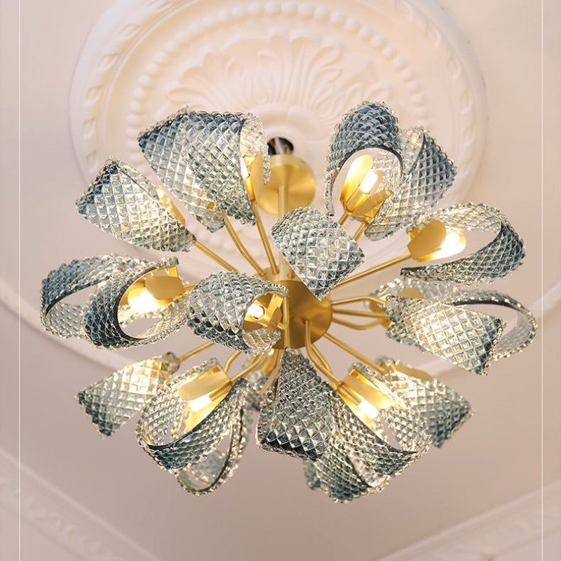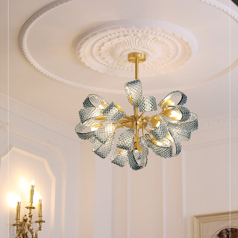 Hailie Vintage Art Deco Blue Glass Chandelier Living Room