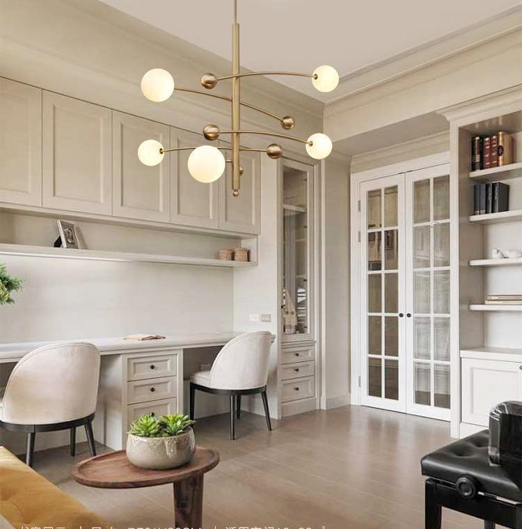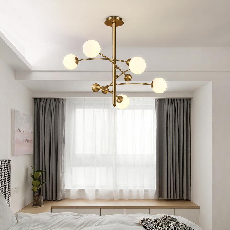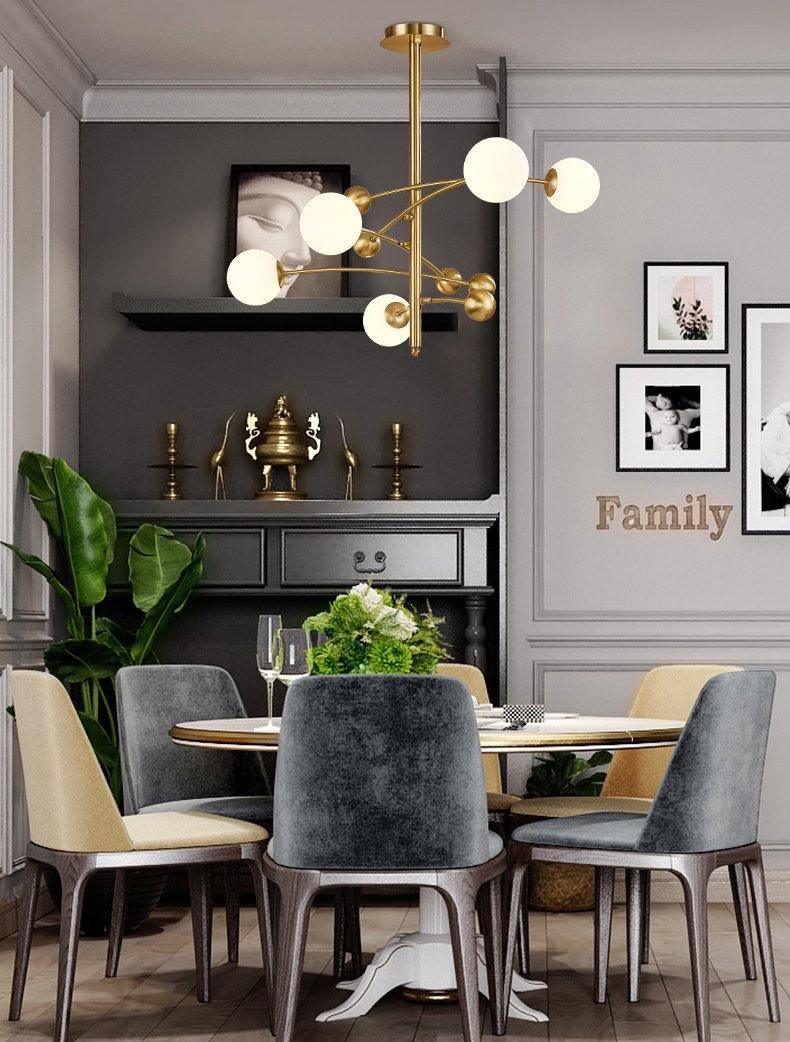 The chandelier is an elegant ensemble composed of some frosted glass bulbs attached to a solid metal lamp ring. Its design elements are clearly structured. The lightweight chandelier is an excellent representative of minimalist design and can produce visual impact.