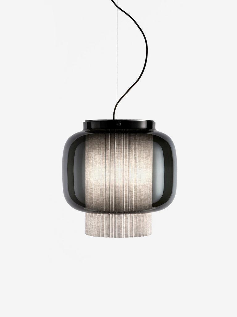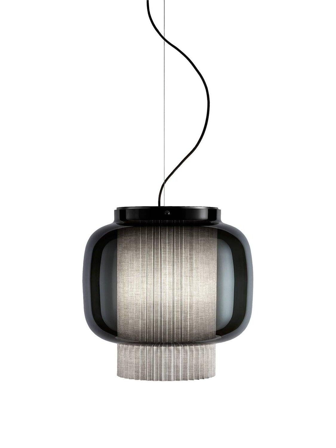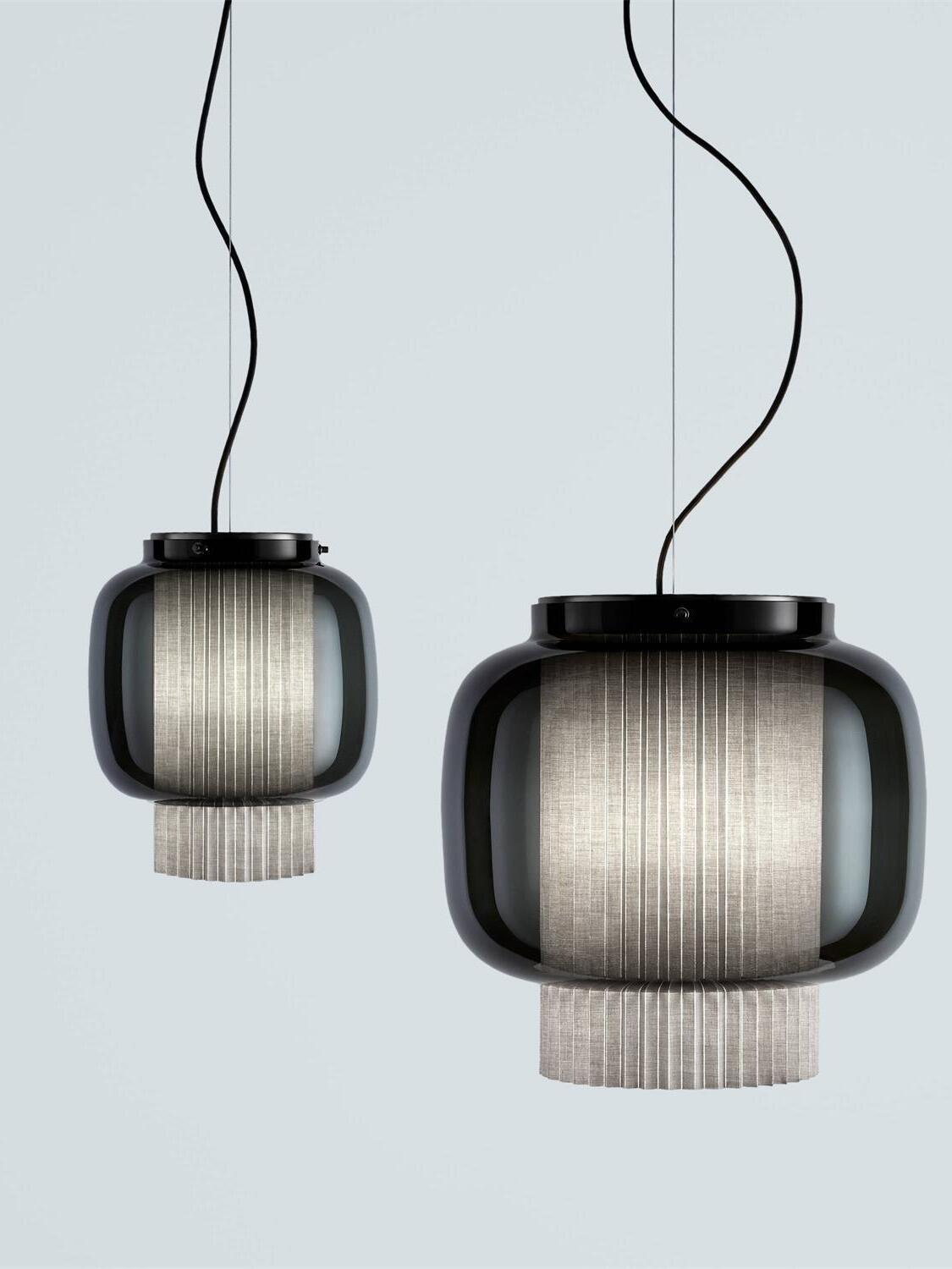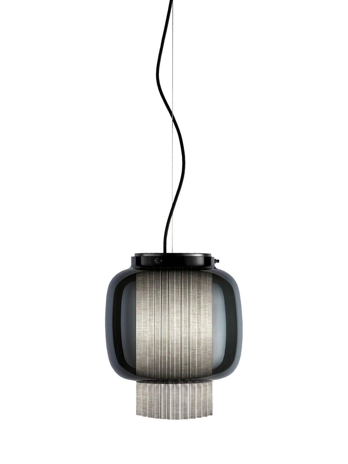 An incredibly elegant combination of artisanal blown glass and a plissé textile diffuser. Its name comes from Spanish "Mantón de Manila". It's a traditional silk shawl commonly used by flamenco dancers.