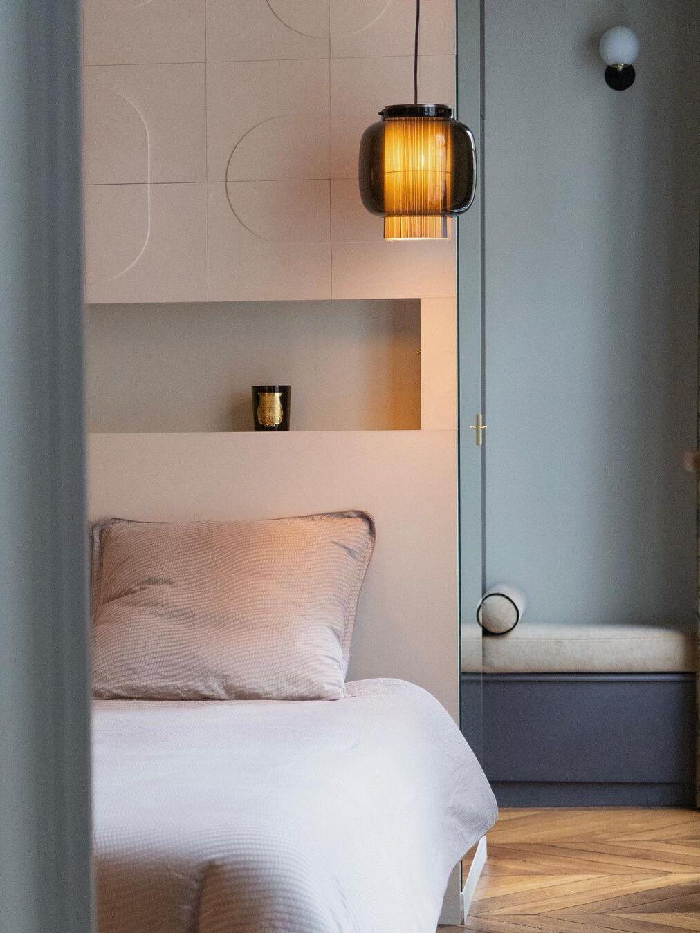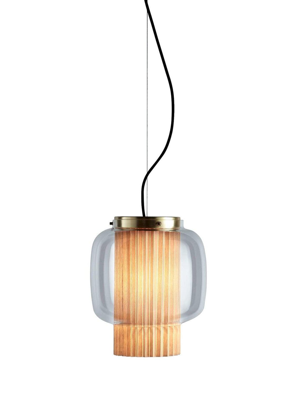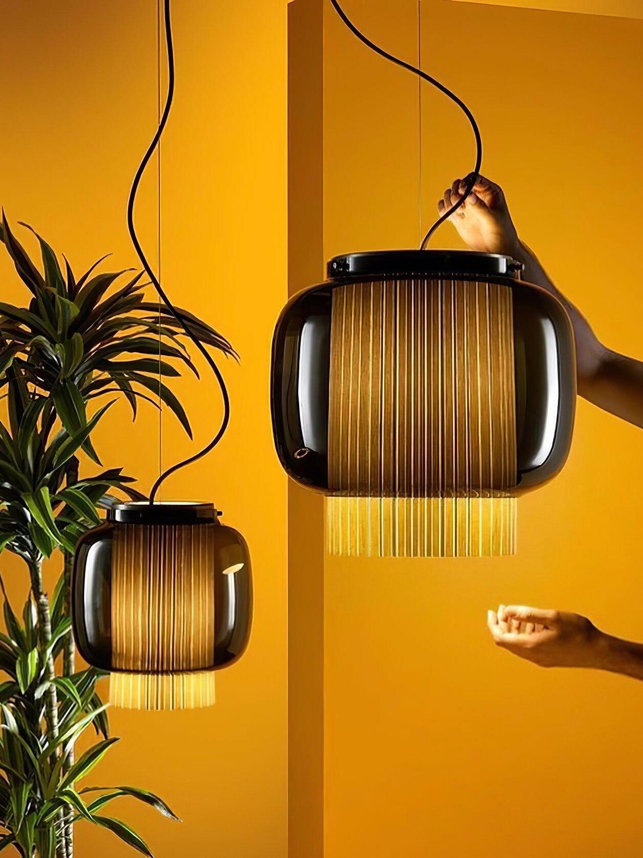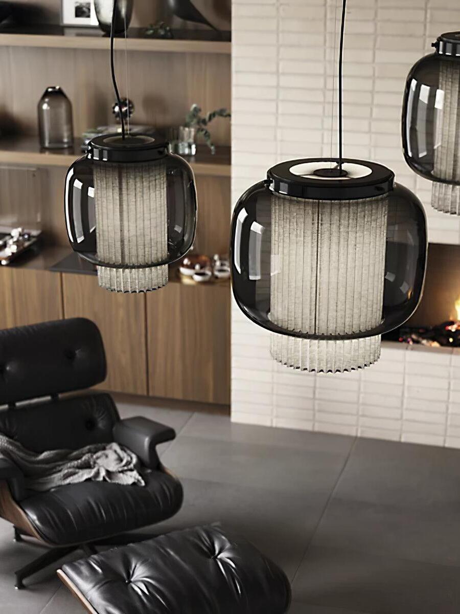 An incredibly elegant combination of artisanal blown glass and a plissé textile diffuser. Its name comes from Spanish "Mantón de Manila". It's a traditional silk shawl commonly used by flamenco dancers.