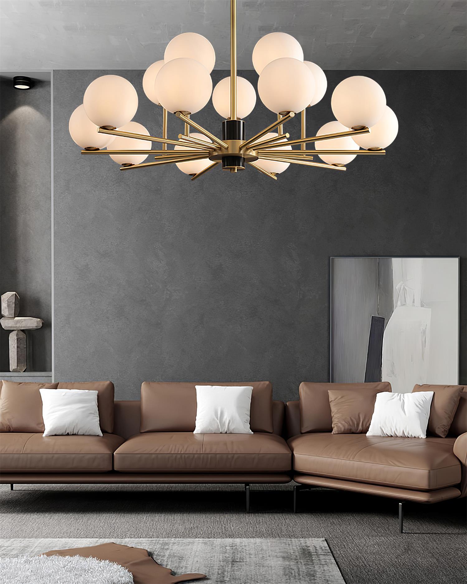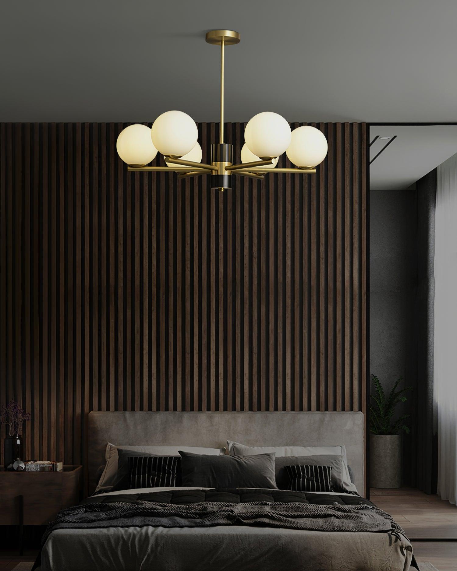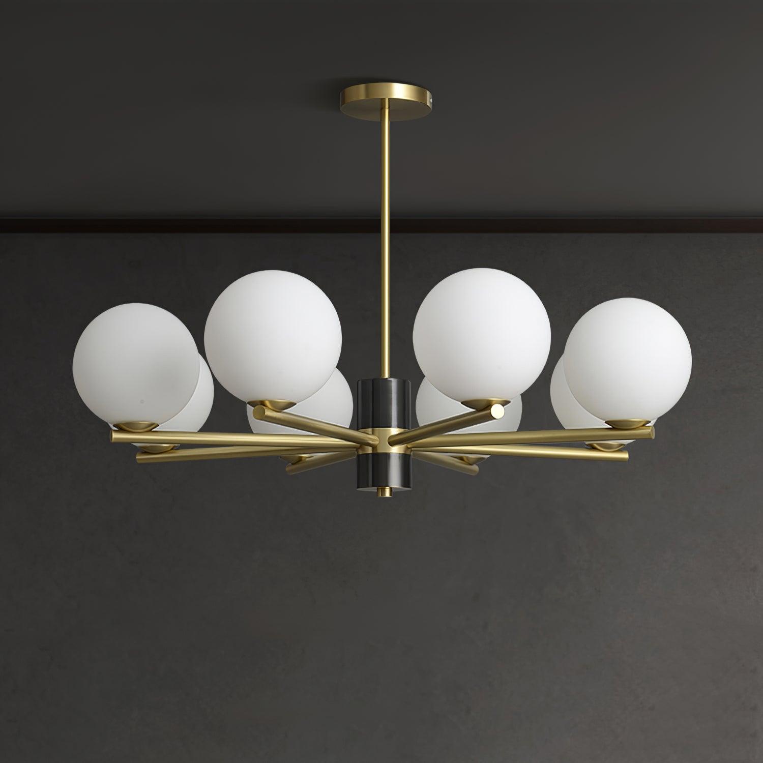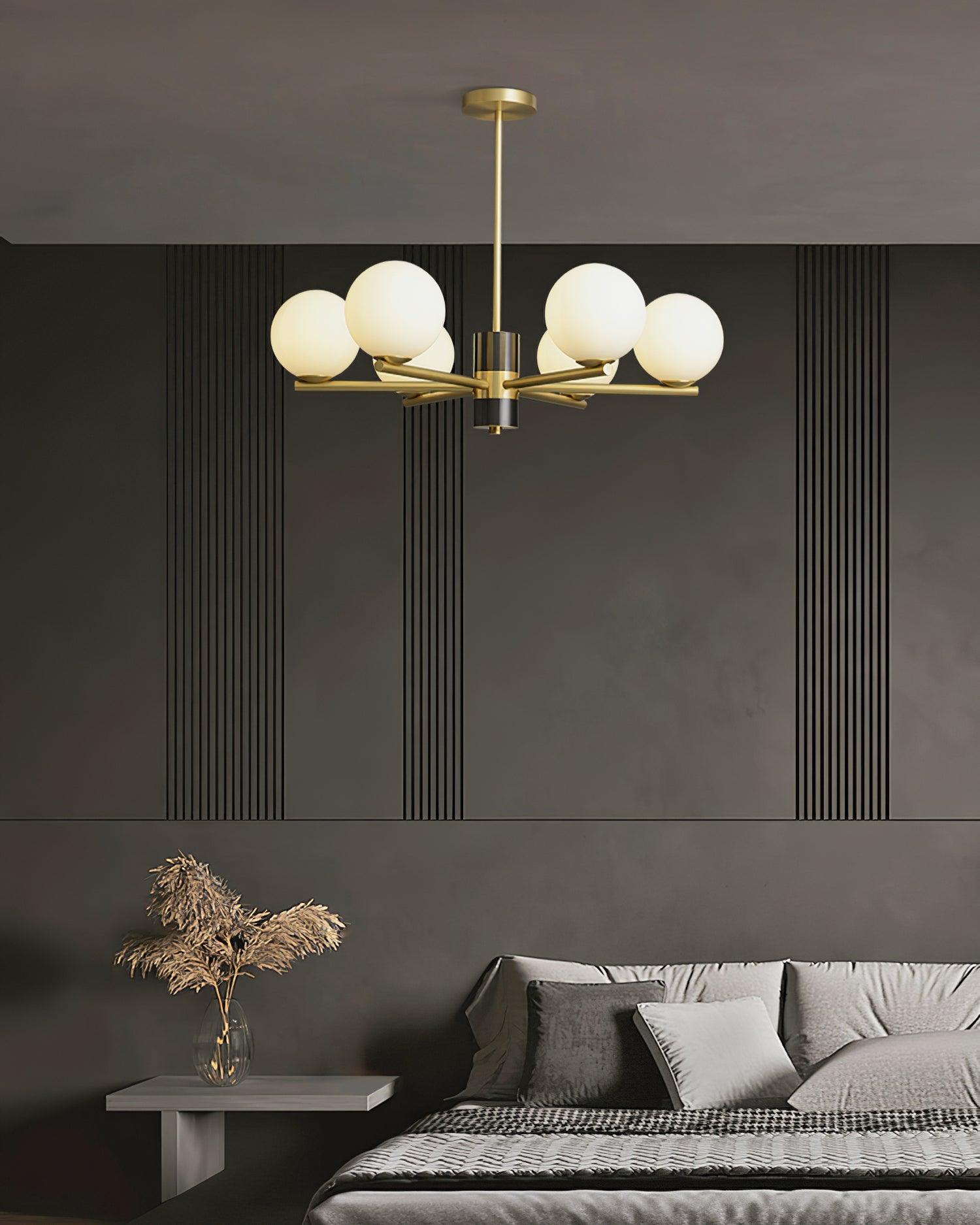 The Marais Chandelier provides a gentle, ambient light and creates a tranquil atmosphere. Its white glass spheres hang gracefully, giving it an elegant and refined look that adds a touch of minimalism to any home. Enjoy its calming presence and effervescent beauty.