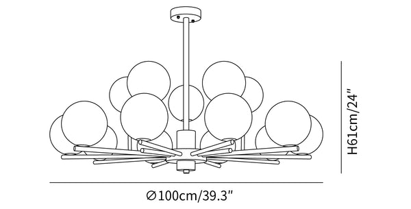 15 Heads Size: Dia 100cm x H 61cm / ∅ 39.3″ x H 24″