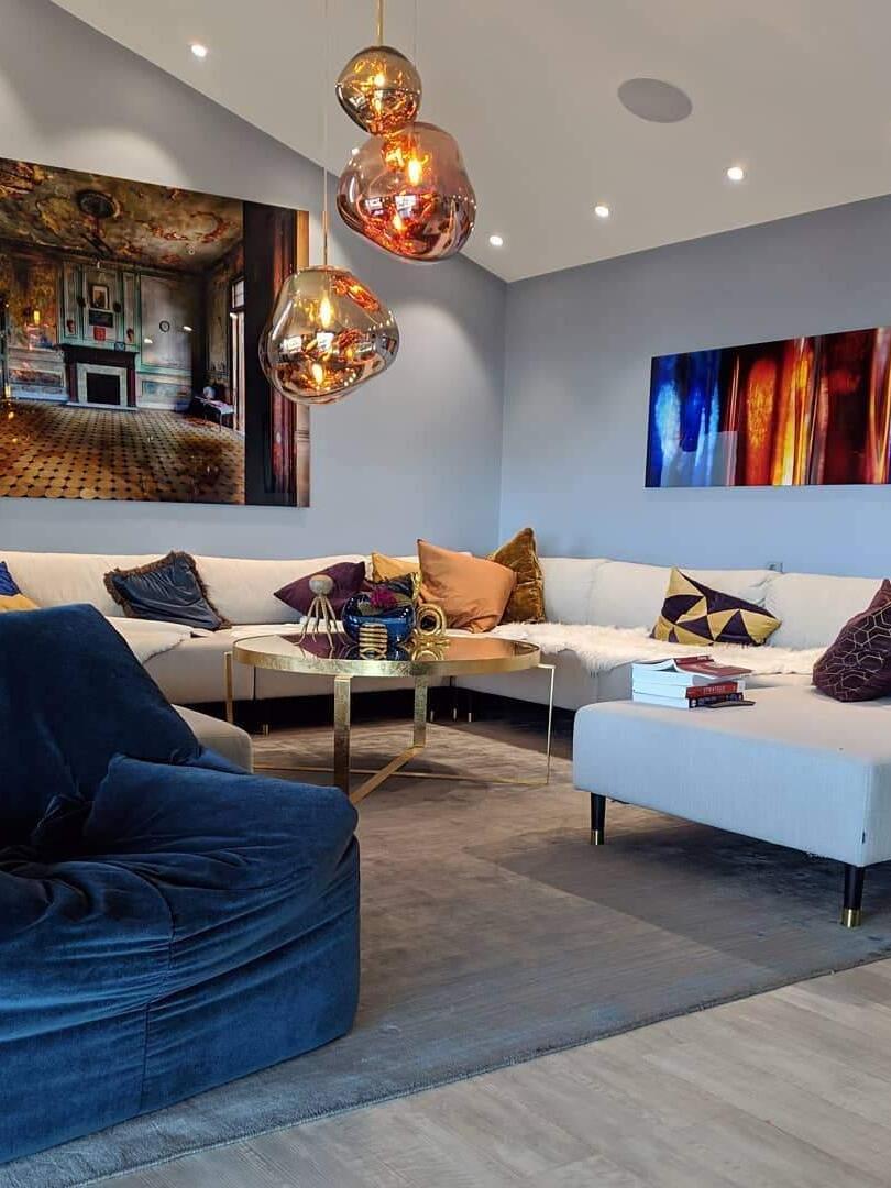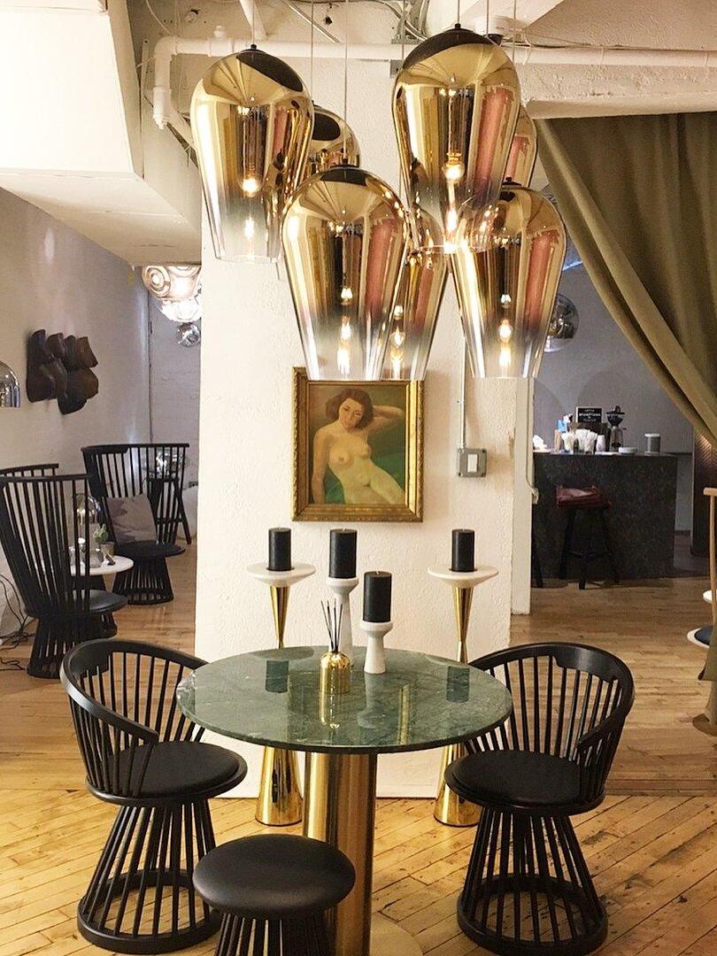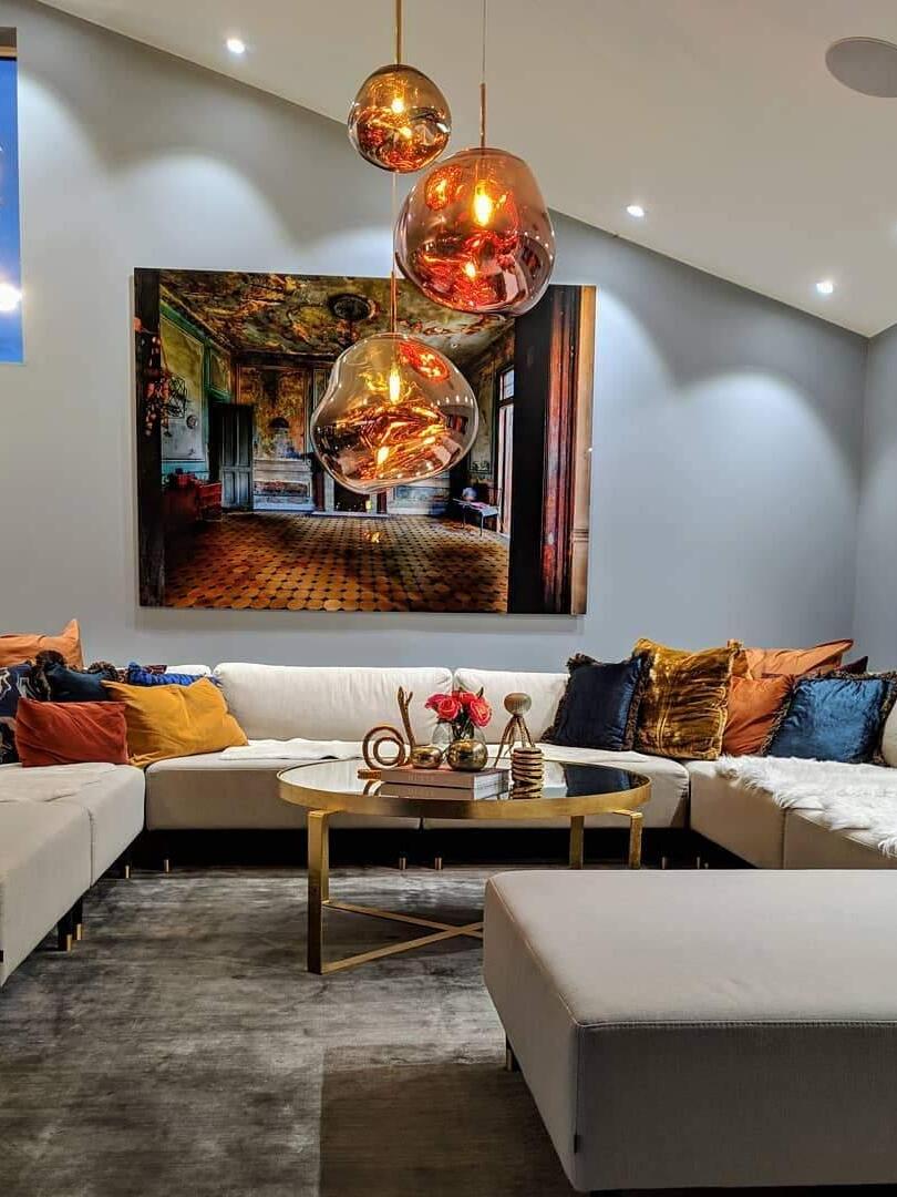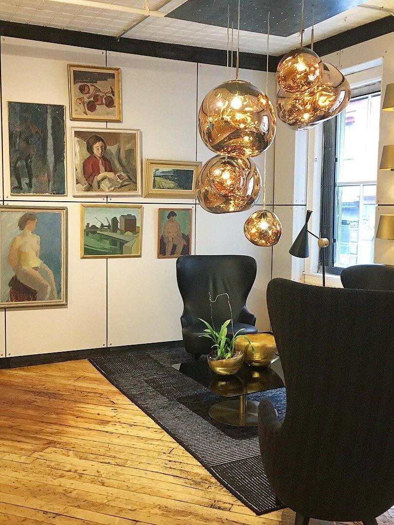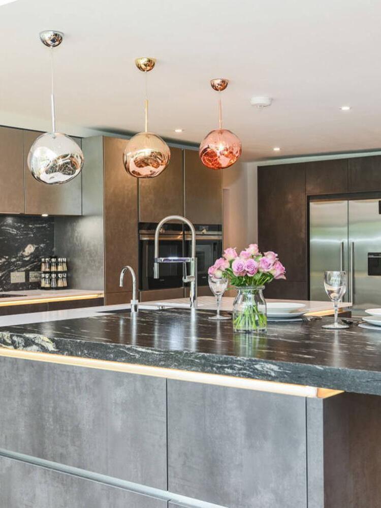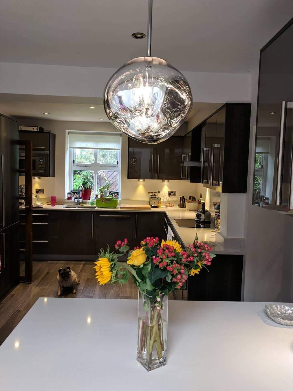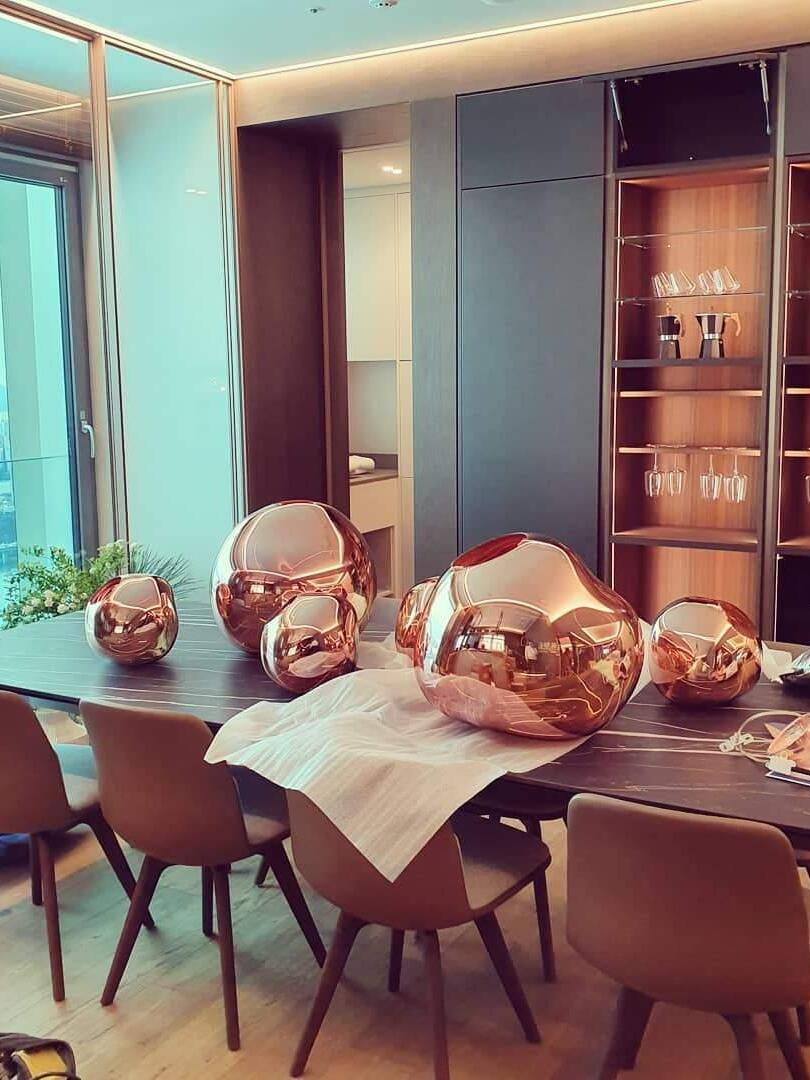Melt is a beautifully distorted pendant light in a modern Copper finish and matching ceiling rose. Emitting an attractive, mildly hallucinogenic light, this ceiling light creates a mesmerizing melting hot-blown glass effect when on and a mirror-finish effect when off. it emits an attractive, mildly hallucinogenic light. Melt floor lamps are available in copper, chrome and gold.