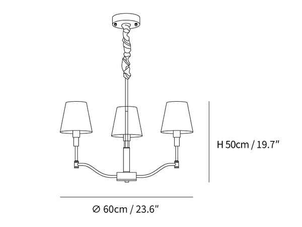 3 Heads Size: Dia 60cm x H 50cm / ∅ 23.6″ x H 19.7″
