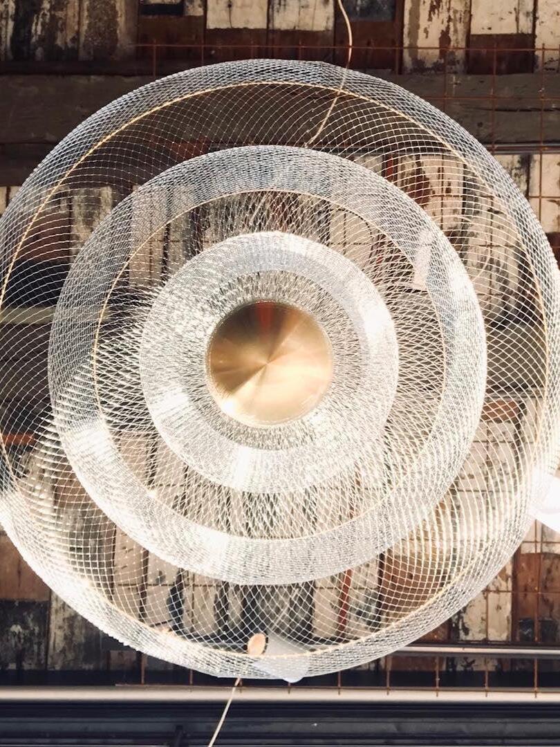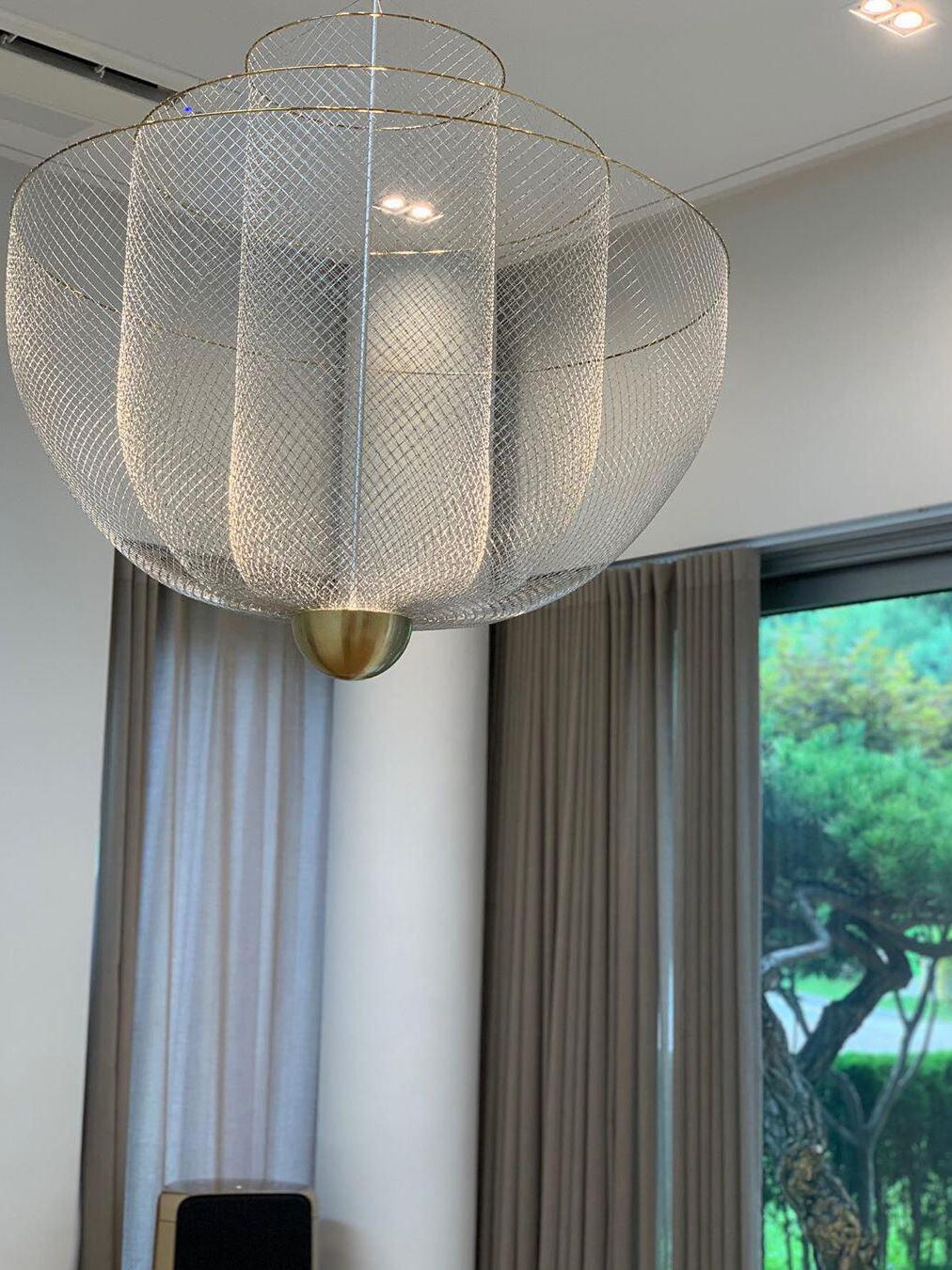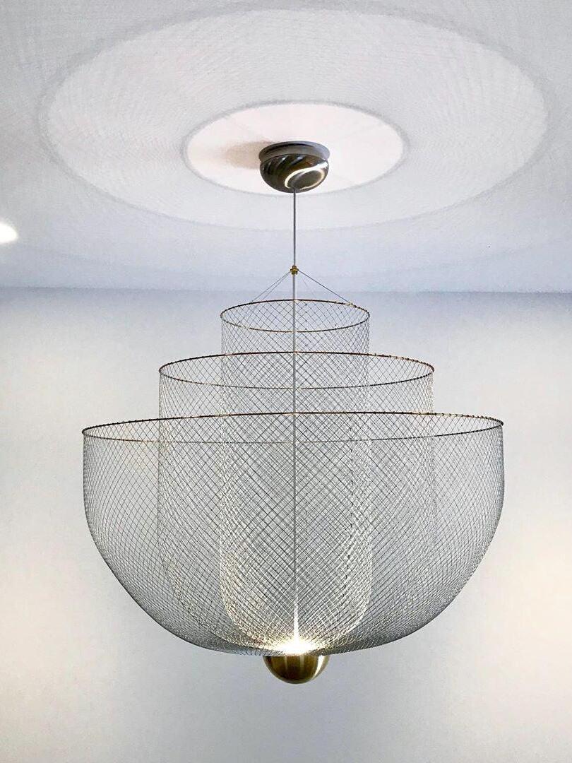 By re-examining these materials, he comes to new aesthetic qualities and applications of the materials. The beautifully designed Meshmatics Hanging lamp is a perfect example of this; this is namely made of metal wire. a machine and tools. With his own invented equipment, with the majestic Meshmatics Hanging lamp as a result.