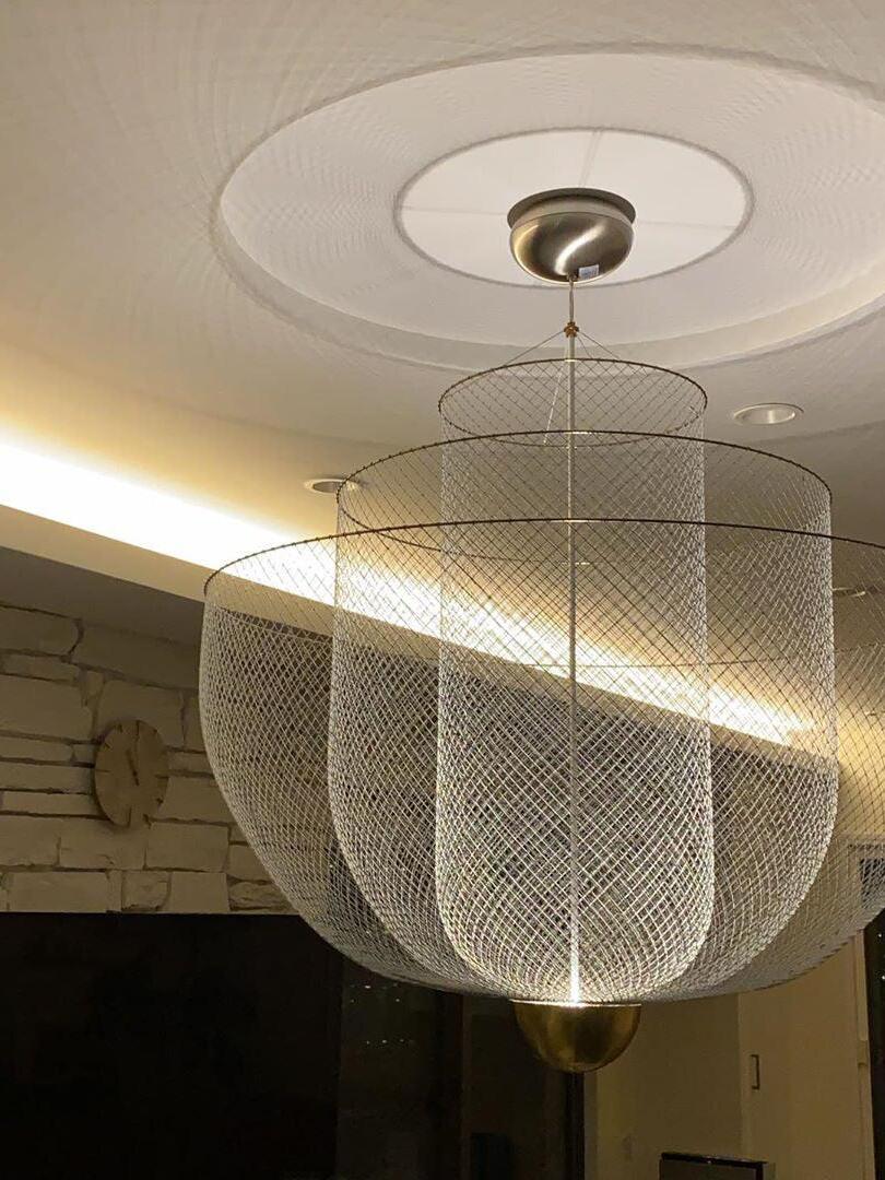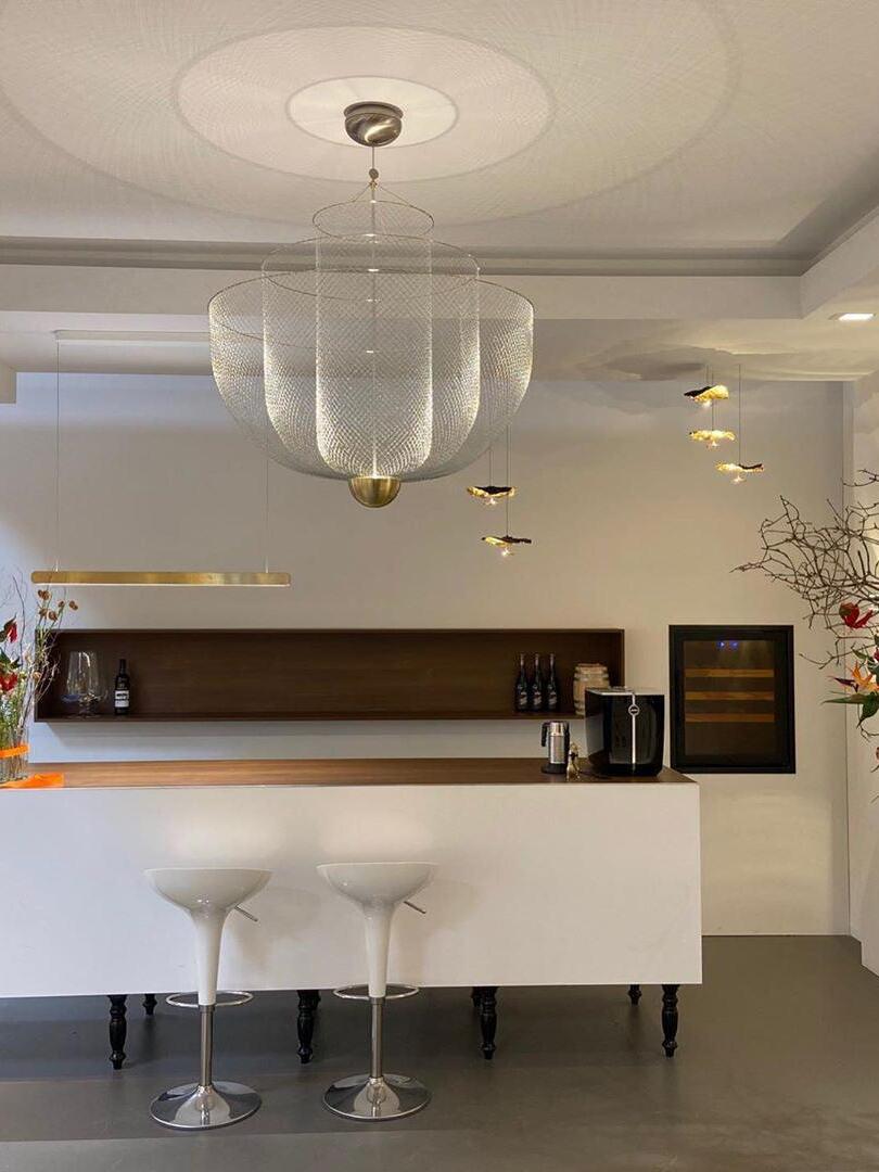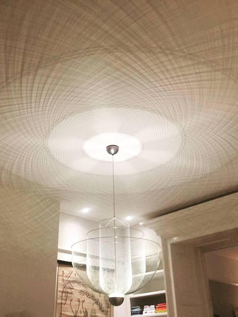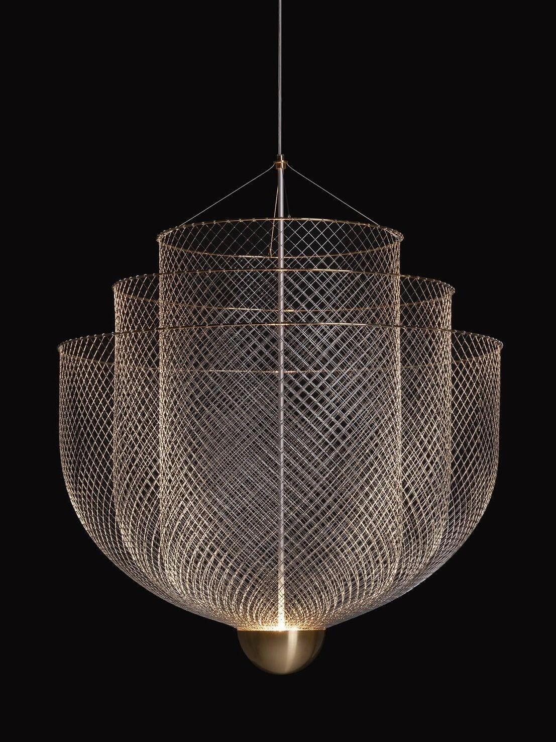 By re-examining these materials, he comes to new aesthetic qualities and applications of the materials. The beautifully designed Meshmatics Hanging lamp is a perfect example of this; this is namely made of metal wire. a machine and tools. With his own invented equipment, with the majestic Meshmatics Hanging lamp as a result.