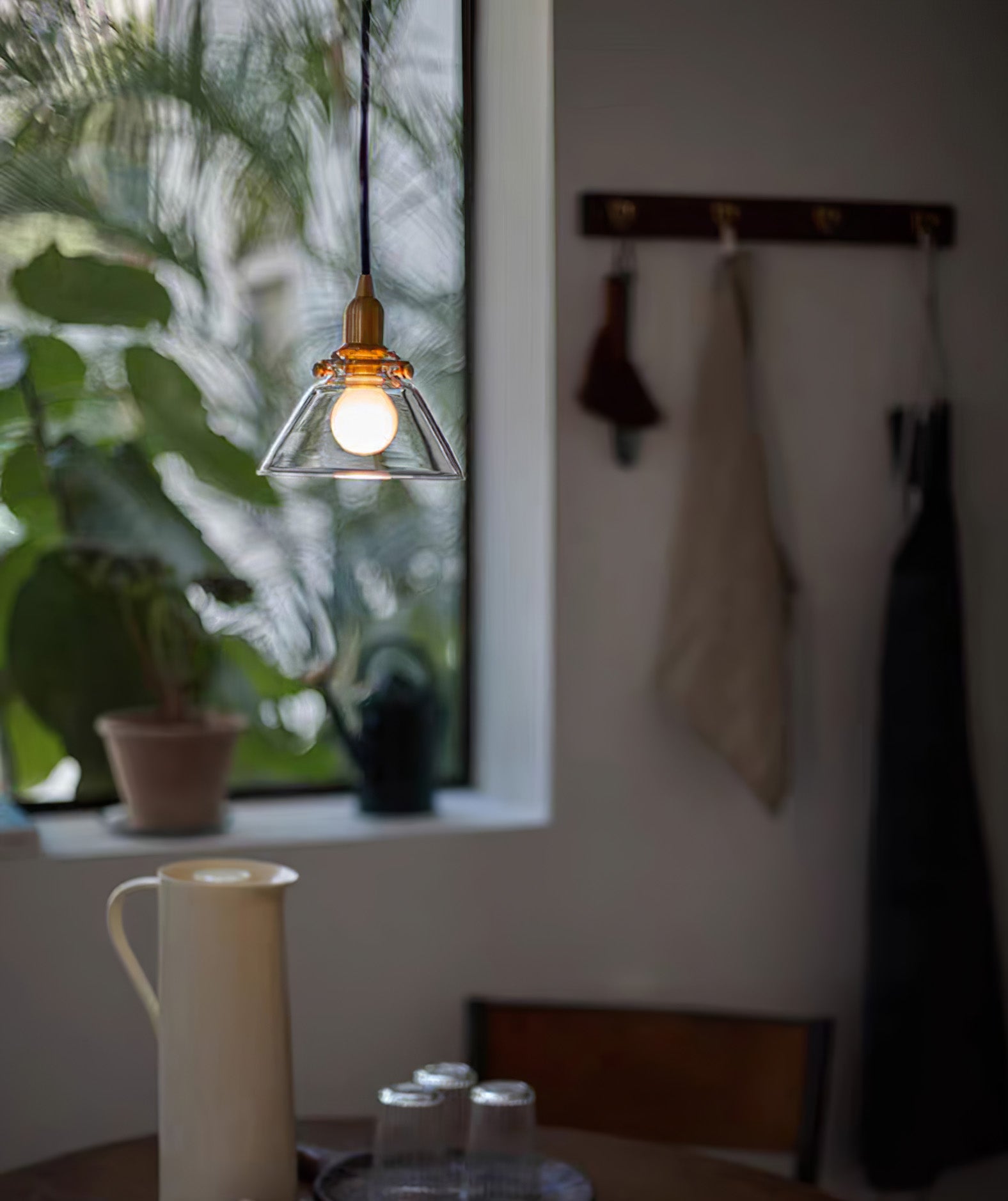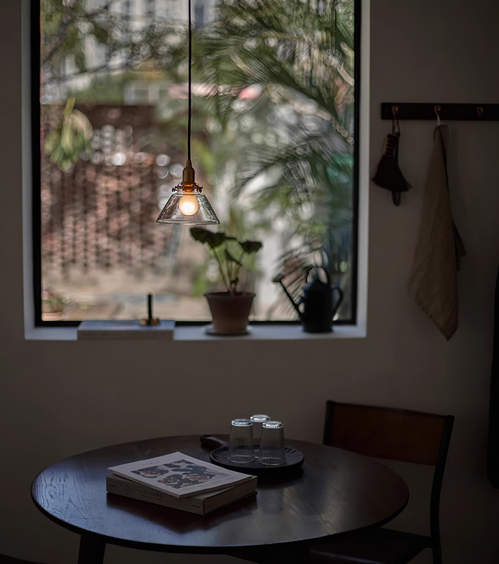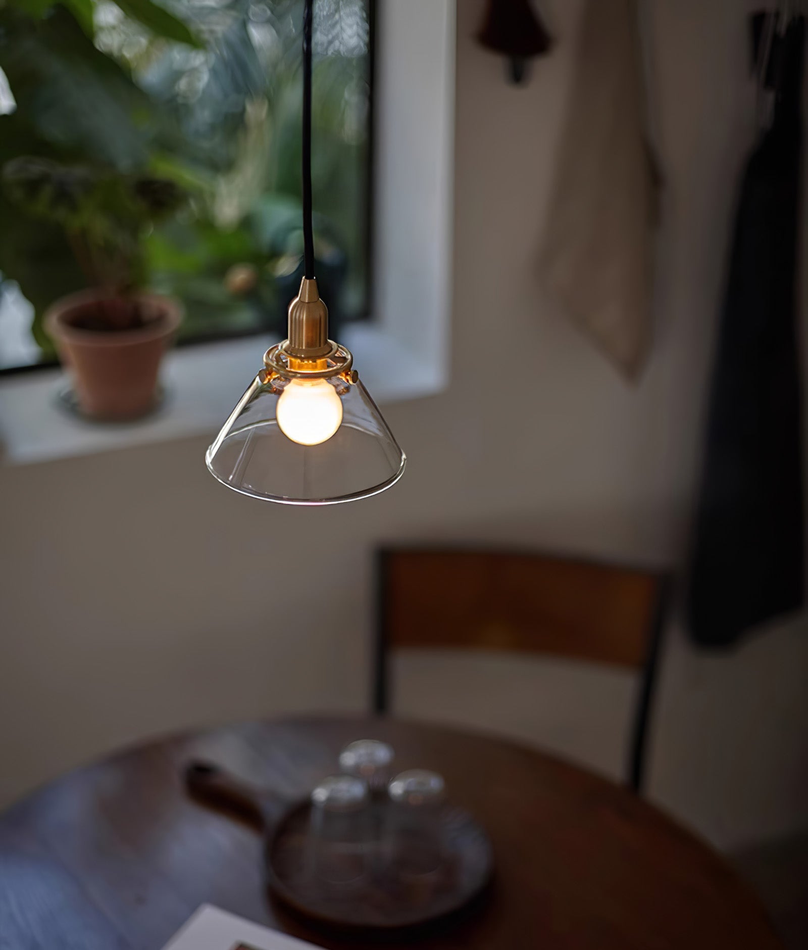 This Minimalist Cone Shaped Glass Pendant Lamp presents a perfect combination of elegance and modernity with its simple design style and exquisite craftsmanship. Its unique conical glass lampshade creates a soft and layered lighting effect under the reflection of light. The use of glass material allows the light to be evenly distributed throughout the space, creating a warm but not dazzling atmosphere. It is suitable for a variety of indoor spaces such as living rooms, dining rooms, and bedrooms.