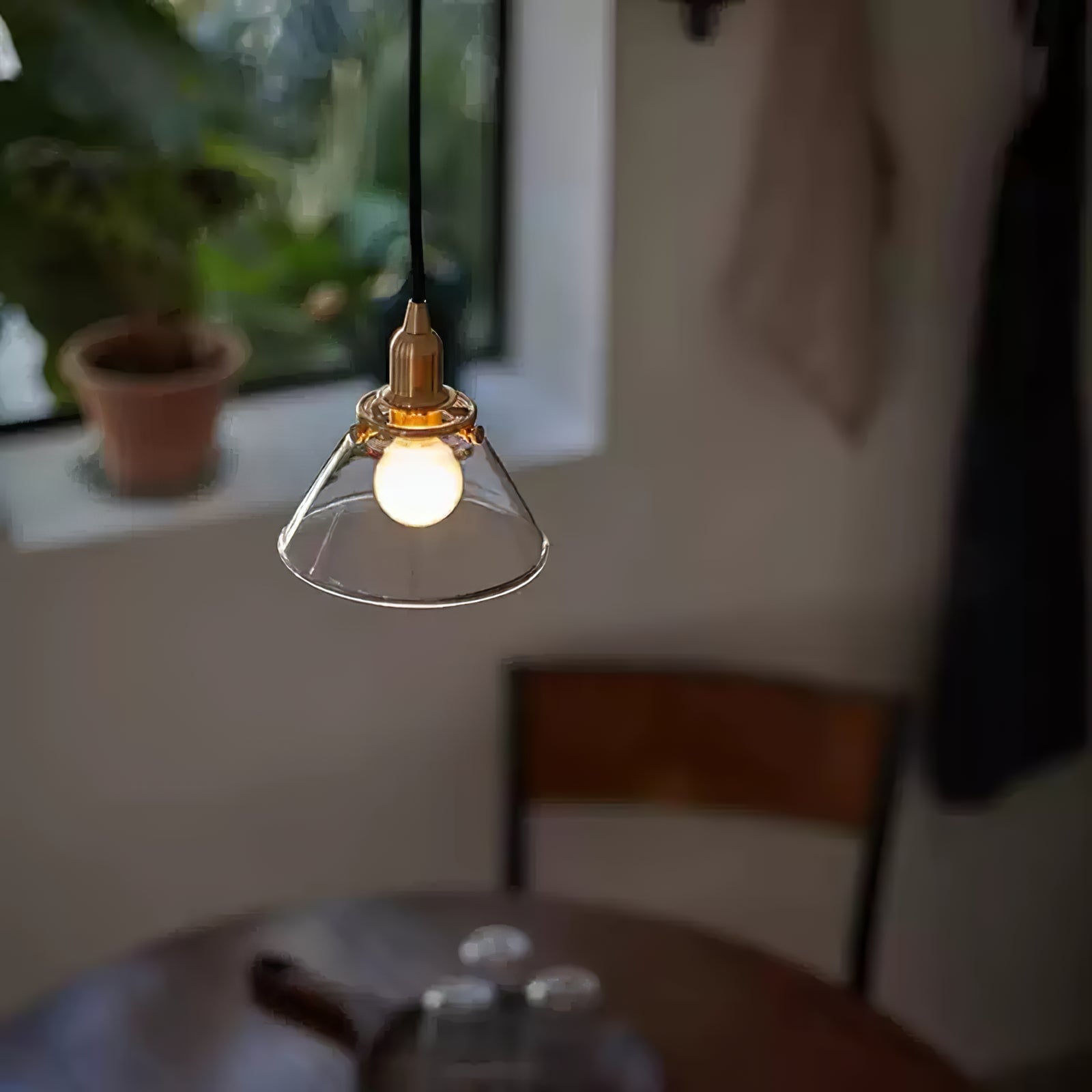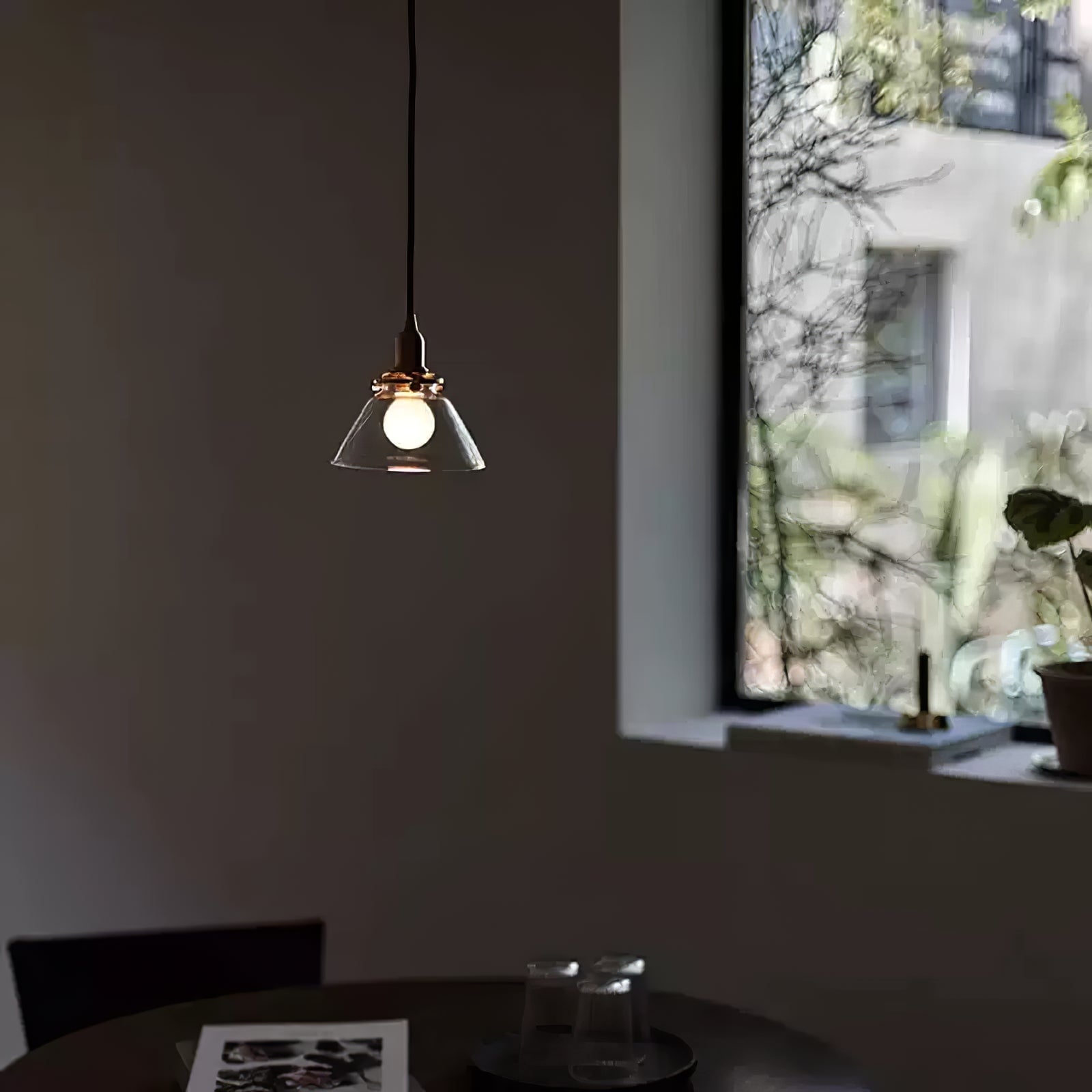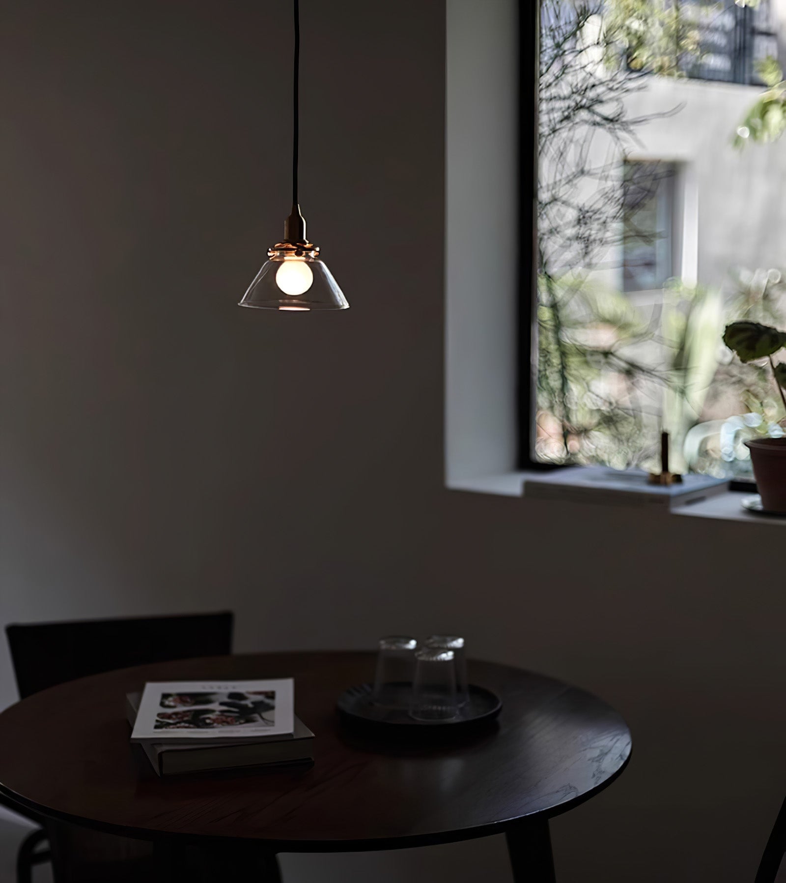 This Minimalist Cone Shaped Glass Pendant Lamp presents a perfect combination of elegance and modernity with its simple design style and exquisite craftsmanship. Its unique conical glass lampshade creates a soft and layered lighting effect under the reflection of light. The use of glass material allows the light to be evenly distributed throughout the space, creating a warm but not dazzling atmosphere. It is suitable for a variety of indoor spaces such as living rooms, dining rooms, and bedrooms.